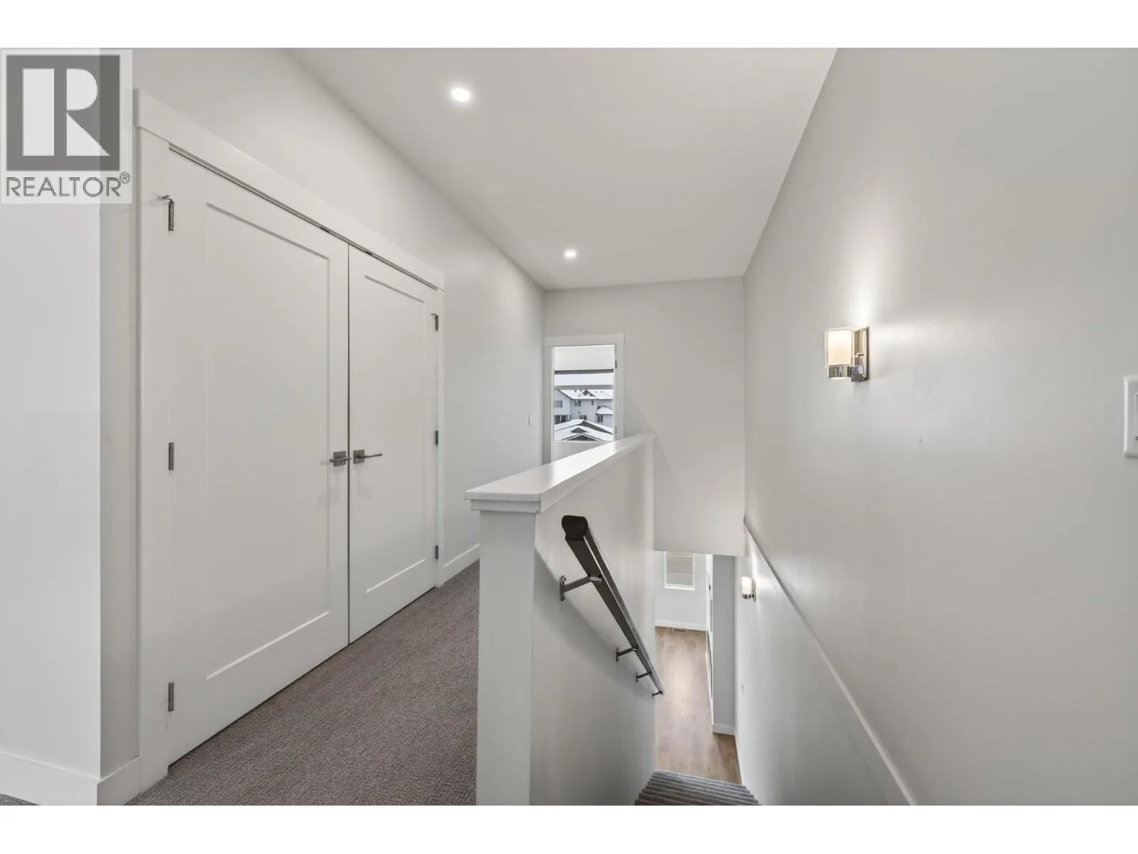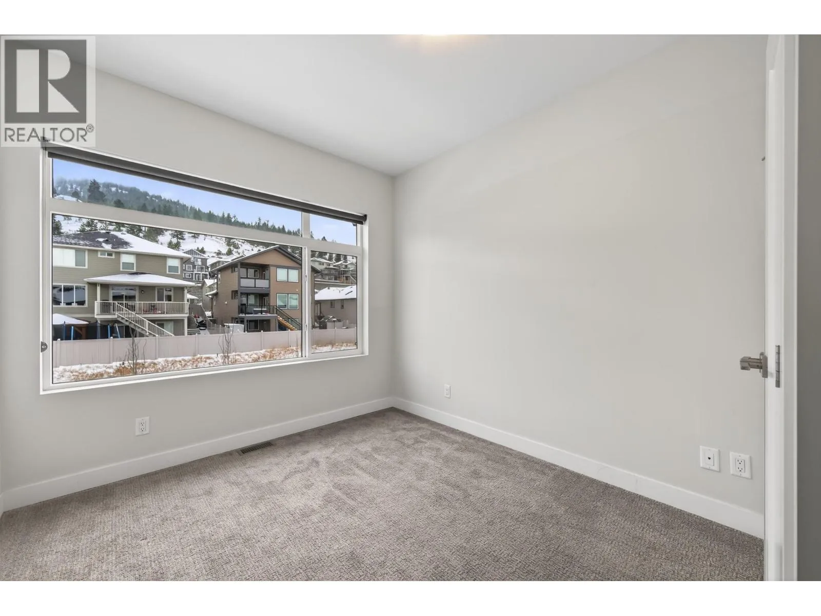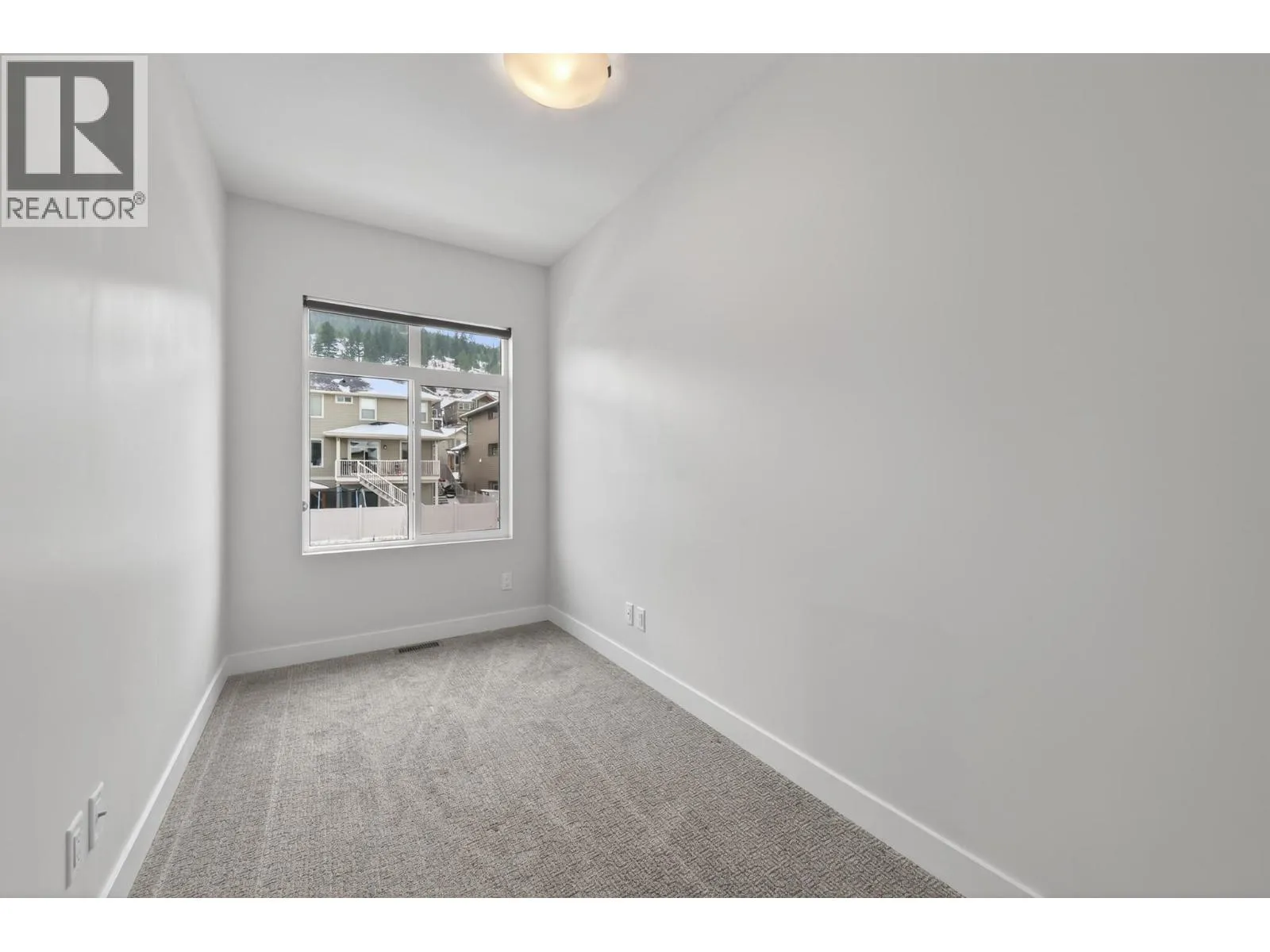Lovely Juniper Ridge three level townhome with 4 bedrooms, beautiful bright open living space and an oversized single garage. Enter this nearly new townhome and you will find a good sized main entry. This level consists of a bedroom with siliding glass doors to a patio and could be a home office, family room or additional bedroom. There is a storage/mud room space which then leads to the single oversized garage (16â1x21.2) with EV charging. To finish it off there is a 2 piece bathroom. Ascend to the main living space where you will find a great room open floor plan with modern kitchen featuring stone counters, modern appliances including a gas stove, a dining room which leads to a large south facing deck with BBQ hook up and living room with huge picture window and electric fireplace. There is a 2 piece bathroom on this level. The top level includes 3 bedrooms, the primary bedroom has a nice sized ensuite with double sinks and custom walk in closet with built in organizers. There is laundry on the top floor with linen storage and an additional 4 piece bathroom to compliment the 2 additional bedrooms. Bonus 2 outside parking spaces plus street parking 3+ parking total!! This complex itself is located steps to hiking trails, the Juniper Bike Ranch, playground and park, dog park and community market. It is a great area for families, downsize or first timers! There is something here for the whole family. Quick possession possible. (id:27476)