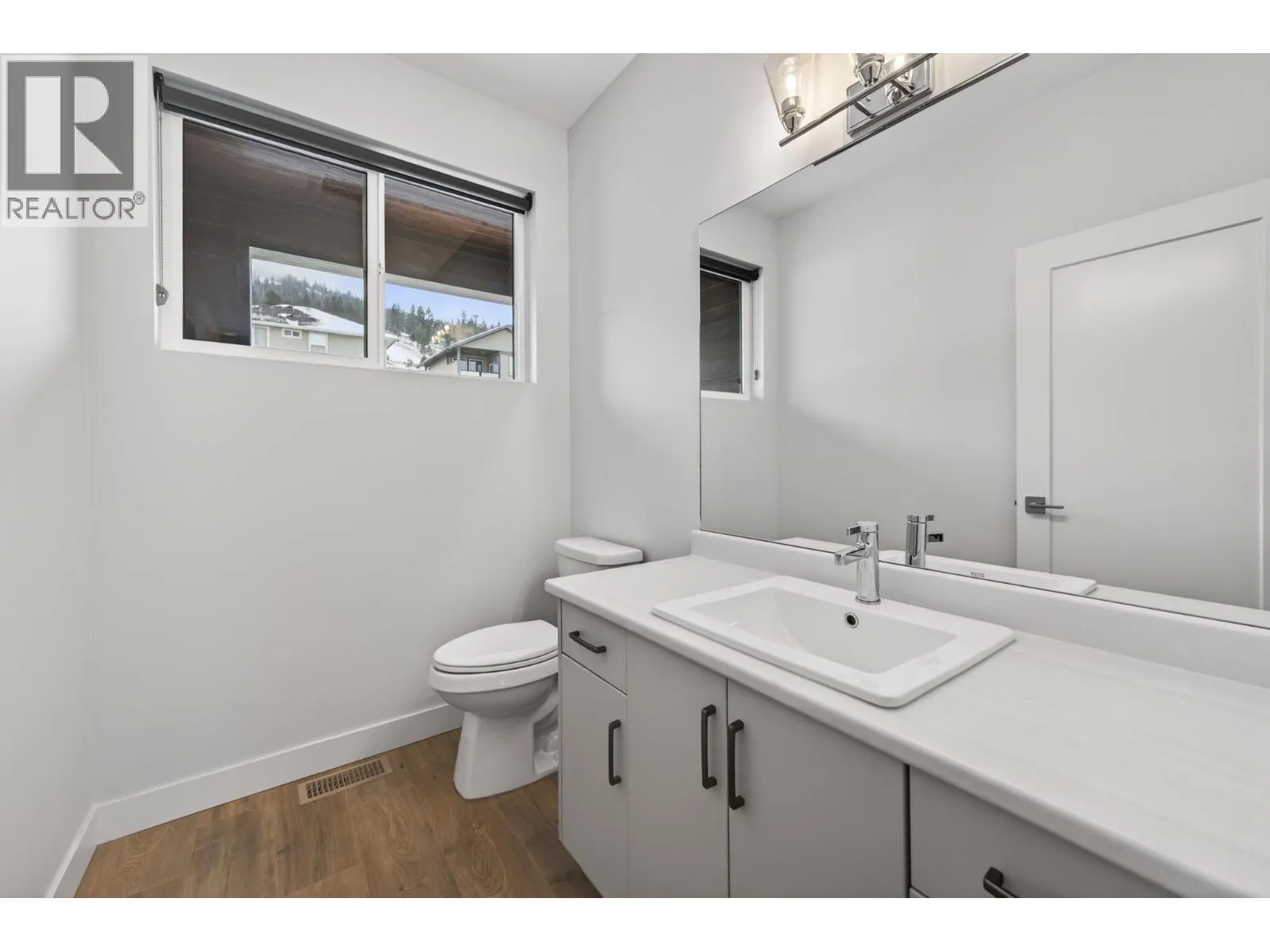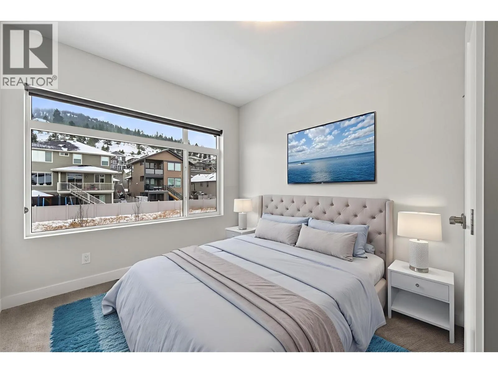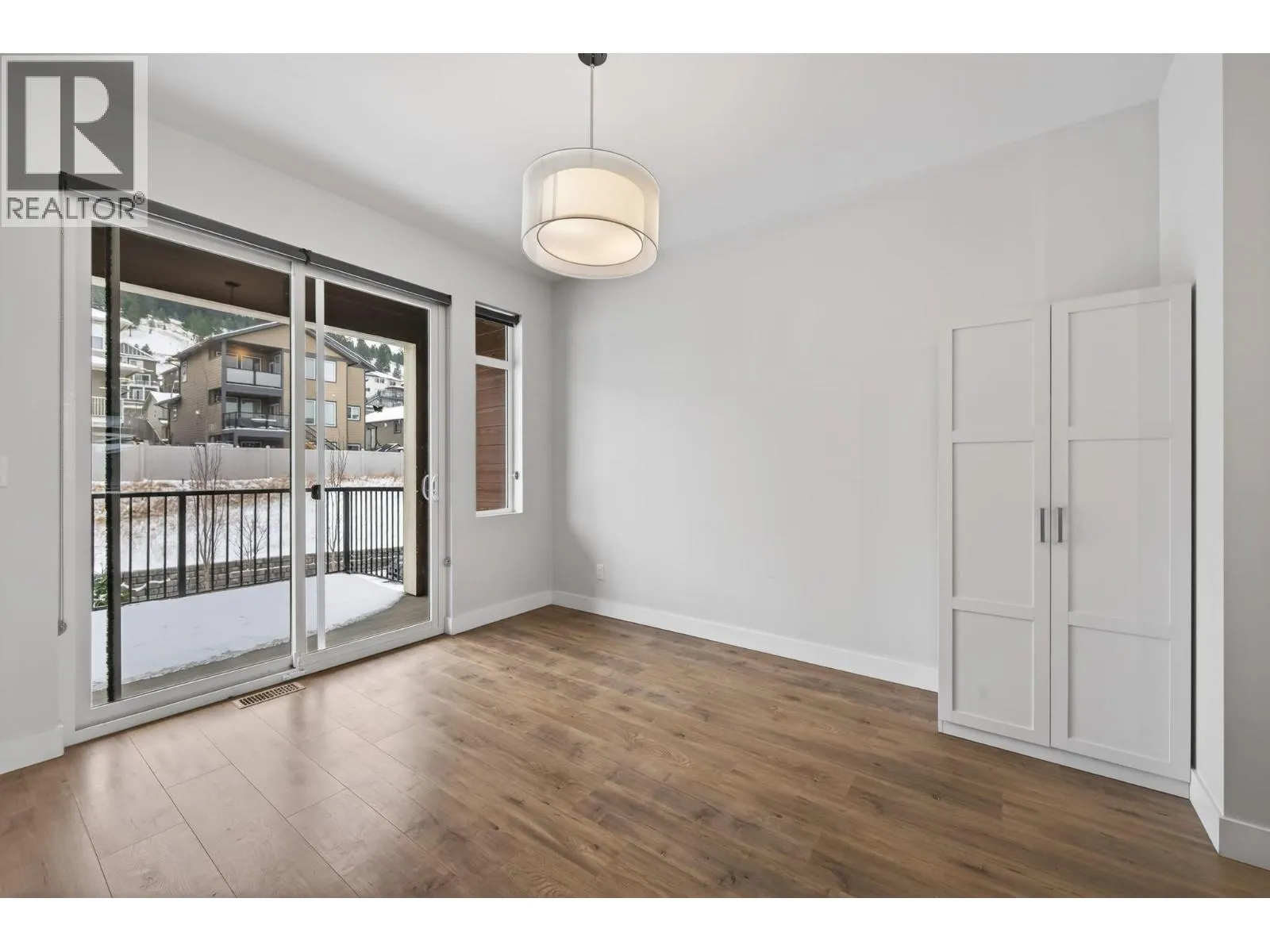 Lovely Juniper Ridge three level townhome with 4 bedrooms, beautiful bright open living space and an oversized single garage. Enter this nearly new townhome and you will find a good sized main entry. This level consists of a bedroom with siliding glass doors to a patio and could be a home office, family room or additional bedroom. There is a storage/mud room space which then leads to the single oversized garage (16â1x21.2) with EV charging. To finish it off there is a 2 piece bathroom. Ascend to the main living space where you will find a great room open floor plan with modern kitchen featuring stone counters, modern appliances including a gas stove, a dining room which leads to a large south facing deck with BBQ hook up and living room with huge picture window and electric fireplace. There is a 2 piece bathroom on this level. The top level includes 3 bedrooms, the primary bedroom has a nice sized ensuite with double sinks and custom walk in closet with built in organizers. There is laundry on the top floor with linen storage and an additional 4 piece bathroom to compliment the 2 additional bedrooms. Bonus 2 outside parking spaces plus street parking 3+ parking total!! This complex itself is located steps to hiking trails, the Juniper Bike Ranch, playground and park, dog park and community market. It is a great area for families, downsize or first timers! There is something here for the whole family. Quick possession possible. (id:27476)