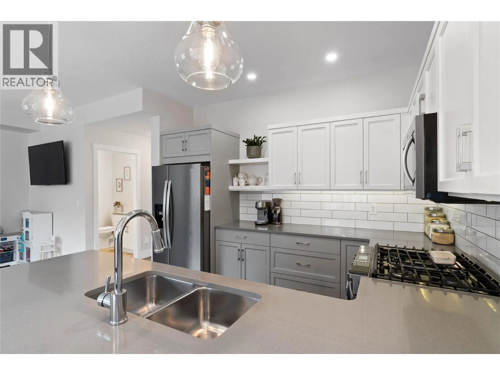 Exceptional value in this 2020 built single family home located on a bare land strata lot in the desirable Orchards Walk in Valleyview. The main floor offers comfortable and functional living space, while the upper level features three spacious bedrooms, two full bathrooms, and a conveniently located laundry room. This home is offered at an attractive price point with a monthly bare land strata fee of $230.60. The strata fee includes front and back yard maintenance, professional management, common insurance, snow removal, water, sewer, and garbage services, allowing for convenient and low maintenance living. The current owners selected several premium upgrades throughout the home, including an upgraded appliance package with a gas range, quartz countertops in the kitchen and all bathrooms, and hardwood flooring on both the main and upper levels. Additional highlights include a custom closet organizer system in the primary bedroom and an upgraded 60 gallon hot water tank. Residents of Orchards Walk also contribute $22.50 per month toward the community recreation centre. This facility can be reserved for meetings or larger gatherings for an additional fee and features a full kitchen. The community center also offers shared amenities such as a fitness area, childrenâs play space, putting green, and picnic areas. Move in with confidence and save the GST on this beautiful home in the sought after Orchards Walk community. (id:27476)