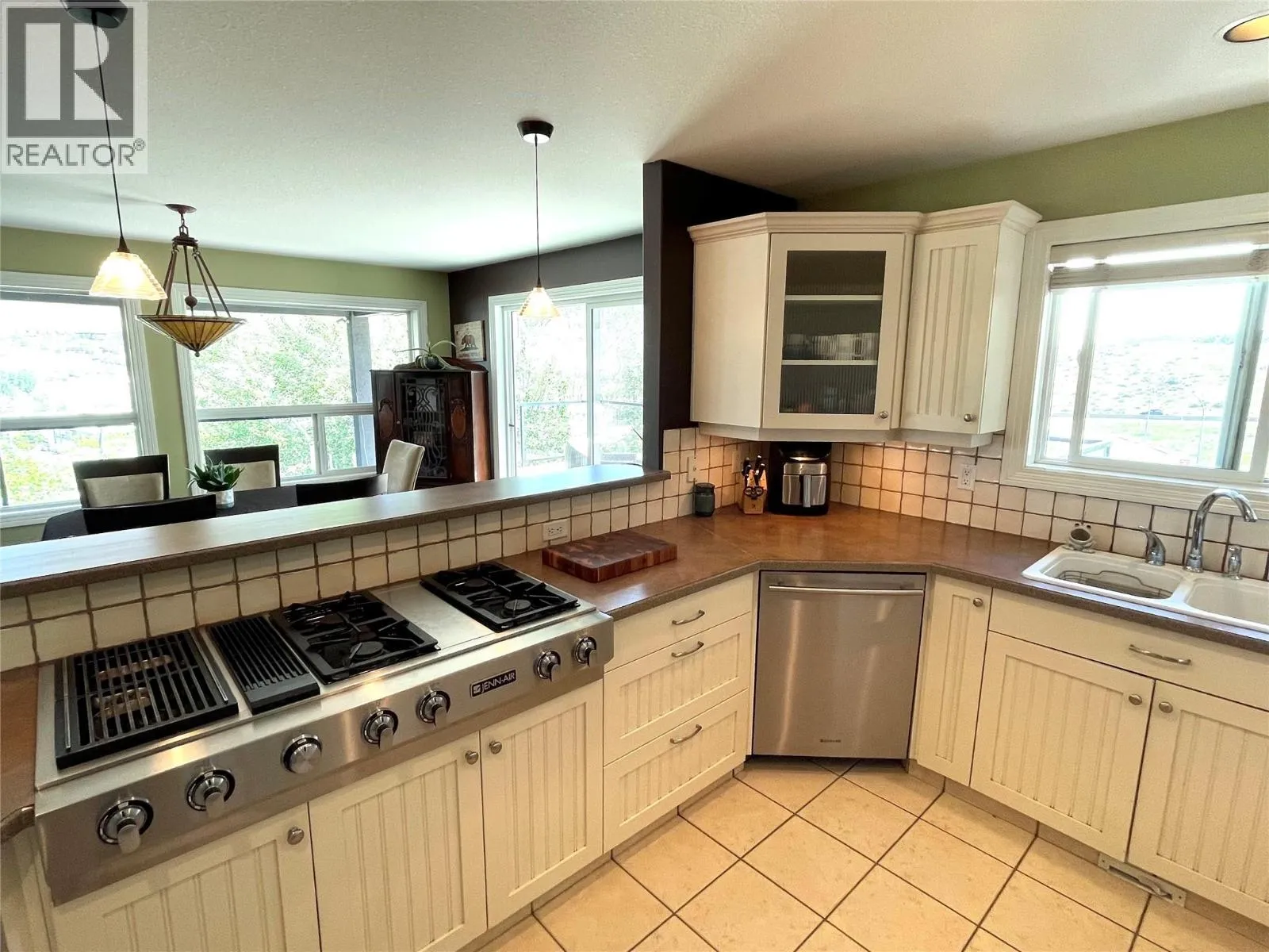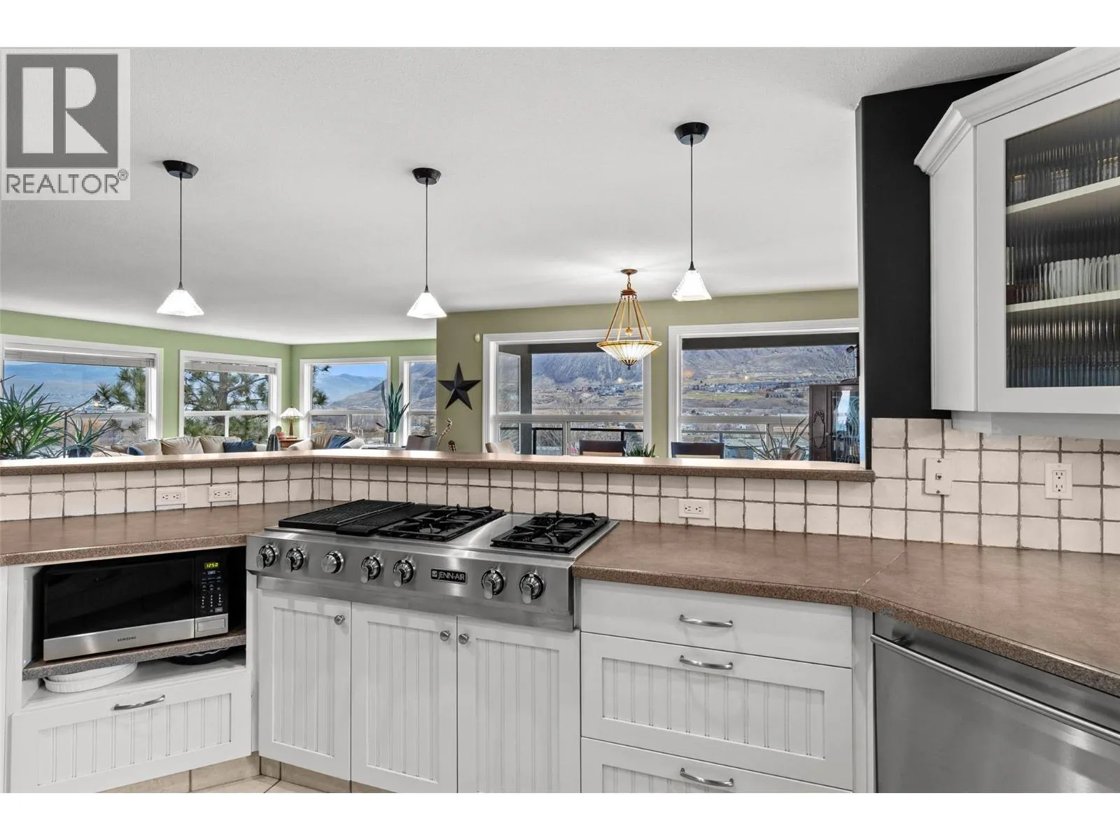 Perched at the end of one of the cityâs most desirable cul-de-sacs, this remarkable executive home surprises from the very first step inside. From the street it presents as a modest rancher, but beyond the front door unfolds a meticulously designed 3,900 sq.ft. custom residence set on a rare 0.33-acre downtown lot. Thoughtfully positioned to capture breathtaking 220-degree panoramic views of the South Thompson Valleyâfrom sunrise to sunsetâthe home is wrapped in floor-to-ceiling windows on both levels, bringing the landscape into every living space. Outdoor living is just as impressive with over 1,000 sq.ft. of covered and open deck space, complete with natural gas hookup, ideal for entertaining or relaxing while taking in the view. The main floor features a spacious primary bedroom with soaker jet tub, while the heart of the home is the Kitchen equipped with Jenn-Air appliances and a 6-burner gas range. Quality finishes include oak and tile flooring, high-efficiency furnace, central air, gas fireplace, wood stove, built-in vacuum, intercom, security system, and underground irrigation. Parking and workspace are exceptional with a street-level garage plus a rear high-bay heated shop exceeding 1,000 sq.ft. with parking potential for a fleet of vehicles and further development of this lot is possible A truly unique property combining estate-style privacy, incredible views, and quick possession available in a coveted downtown location. (id:27476)