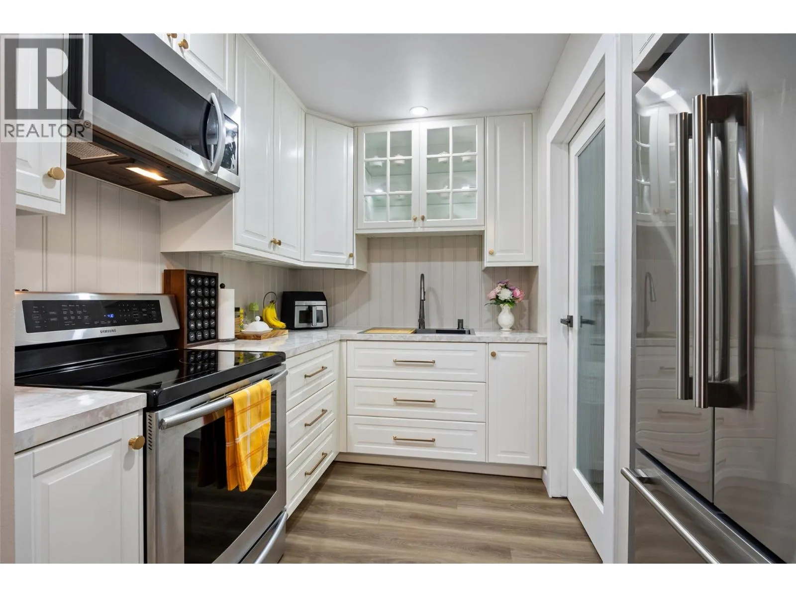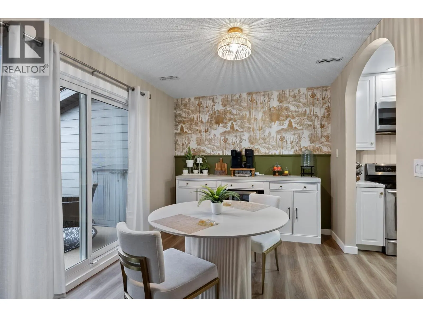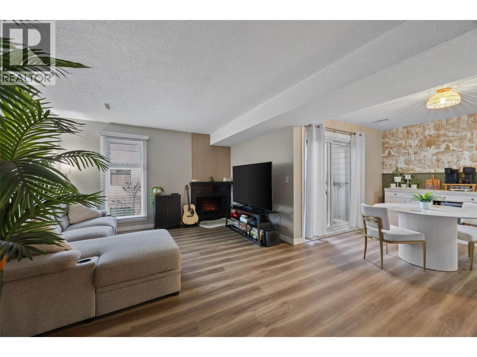 Beautifully updated, inside and out, 2-bed 1-bath end unit Aberdeen townhome located in the Aberdeen Ridge complex. Step inside to an inviting open-concept layout featuring brand-new flooring, a stunning new kitchen and an elegant coffee bar/dining space. The cozy living room features a wood-burning fireplace with stylish panelling and an electric fireplace insert for ambiance. The kitchen is equipped with all-new stainless steel appliances and new cabinetry. Off the kitchen is a large laundry/storage room with a new washer & dryer. Upstairs, you will find 2 generously sized bedrooms, the primary bedroom with two large closets, a storage room and an updated bathroom. The home benefits from TWO patios, one off the dining room, large enough for a patio dining/BBQ set, and one accessed from the primary bedroom, offering a cozy space to enjoy an evening beverage in peace. Externally, the strata has invested in significant upgrades in recent years, including new siding, energy-efficient windows, a new roof, sliding patio doors, and newer furnaces and AC (on the roof). Located in the highly desirable family-friendly Aberdeen, you're just minutes from schools, shopping at Aberdeen Mall, restaurants, parks, and easy access to highways. Whether you're a first-time buyer, downsizer, or investor, this meticulously maintained townhome is a rare find. 2 parking spaces included (12 & 14). 3D Matterport walkthrough available together with floor plans. Book your showing today! (id:27476)