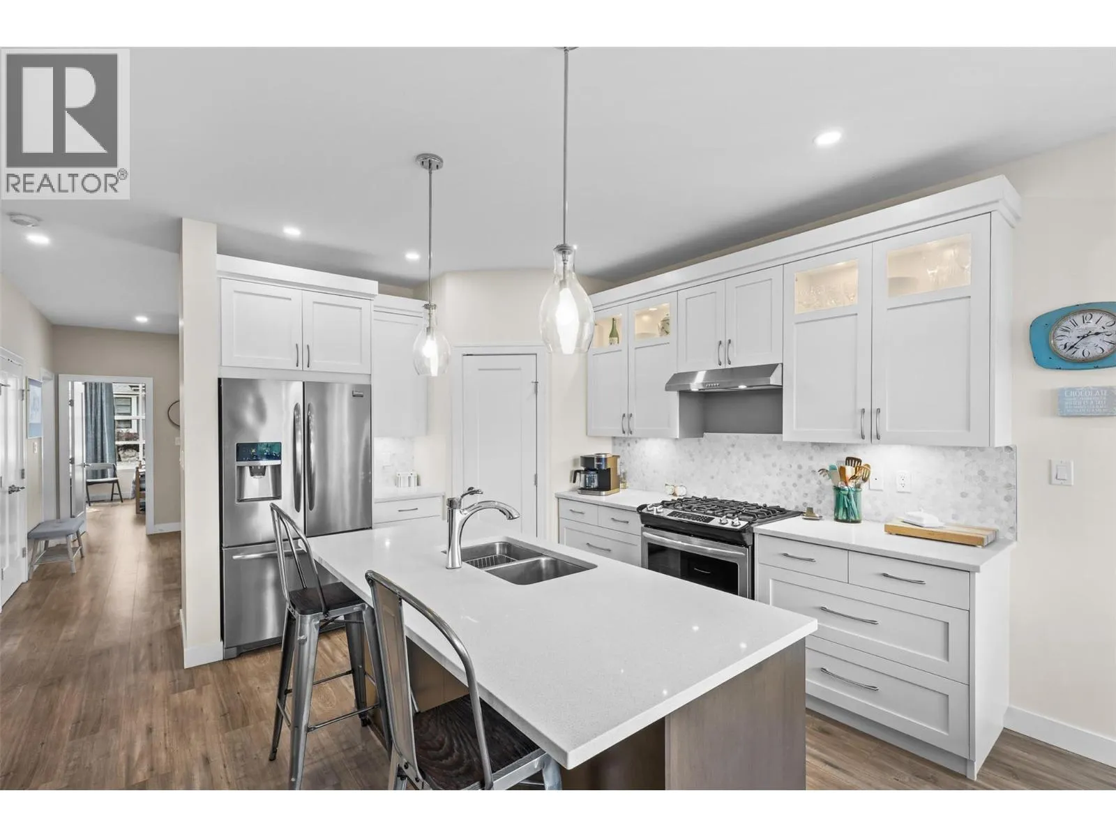 Excellent opportunity to own one of the best units in Sienna Ridge. Step inside the front door of this level-entry âC-Planâ rancher and you will find a wide entryway with plenty of room to come inside. Adjacent to the front door is another entryway with a mudroom/laundry rm off the garage. The main floor is open concept with large windows, 11ft ceilings, new floors (2025), & gorgeous kitchen. The kitchen features stone countertops, ample cupboard space, gas range, cupboard lighting, & a large island that is perfect for entertaining. Adjacent to the kitchen is a dining area with room to accommodate a large table & a living room with high-end gas fireplace feature. Off the dining room is a large covered deck with a great view. The primary bedroom suite has a large storage cabinet, walk-in closet, & spacious 4pc ensuite bathroom with tiled shower. Also on the main floor is an additional 4pc bathroom and a spacious second bedroom. Downstairs you will find a walk-out daylight basement. This level has recently been partially finished with a 3rd bedroom, and a beautiful 4pc bathroom. The additional unfinished space presents an easy opportunity to fully finish with a 4th bedroom, large rec room, and storage room or other configurations. Outside this home has a beautiful & private yard. There is beautiful landscaping & staircase to the yard for easy access. 2 car garage with large double driveway and visitor parking nearby. Low HOA fee of $212.68 + $250.55 lease payment amount. (id:27476)