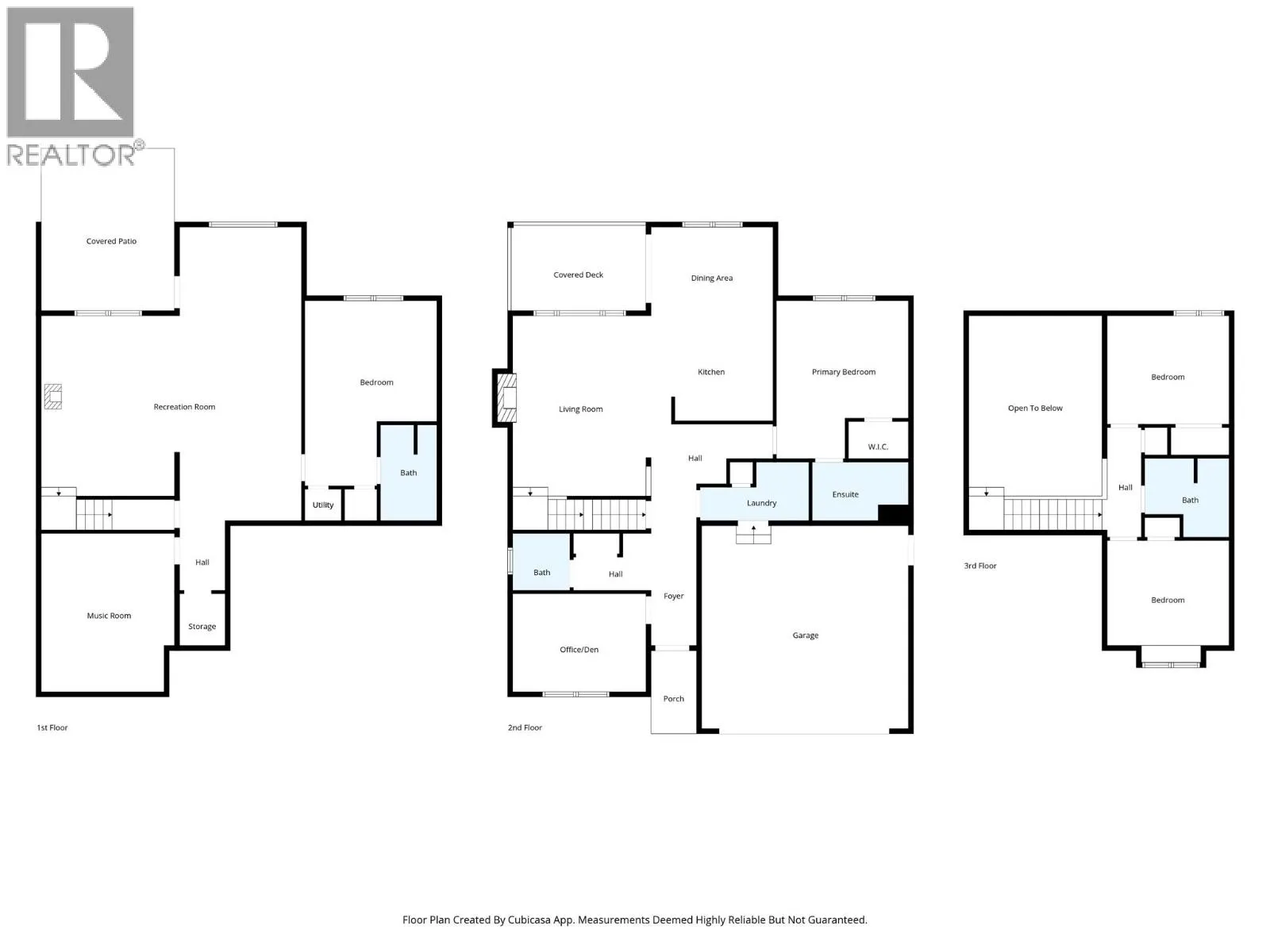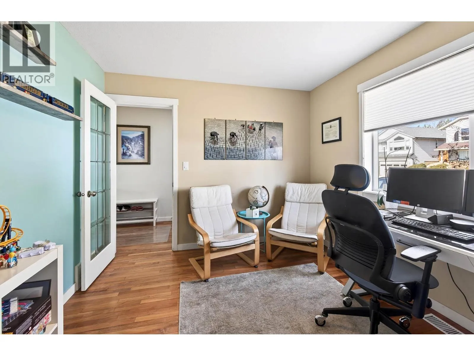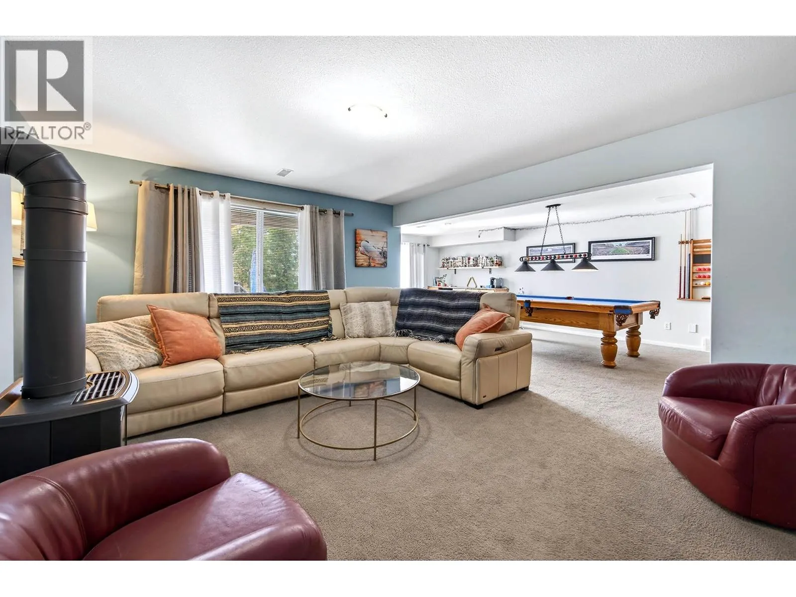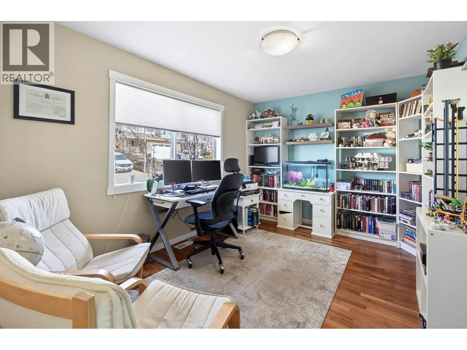This 3022 sq ft, 2 storey home with main floor living that would suit a growing family or executive style living. Close to schools, shopping and hiking. The main floor provides mbdrm, ensuite, walk in closet, laundry room, good sized office which could also be a bedroom if closet was added. Open living room with vaulted ceilings and cozy gas fireplace. Kitchen is open with an island workspace and a dining area that looks out over semi private yard and a distant view. Glass sliding door to rear covered sundeck that offers a gas bbq hookup. Laundry on the main. 2nd floor provides 2 spacious bdrms & 4 pc bath. Bsmt is bright with an L-shaped fam & rec room. Another bdrm down that has ensuite-style access to a 3pc bath is great for the independent teen or guests. One more finished room currently used for music room with storage. Under ground irrigation, A/C & mature landscaping 2 car garage with RV parking as well. Call to view (id:27476)