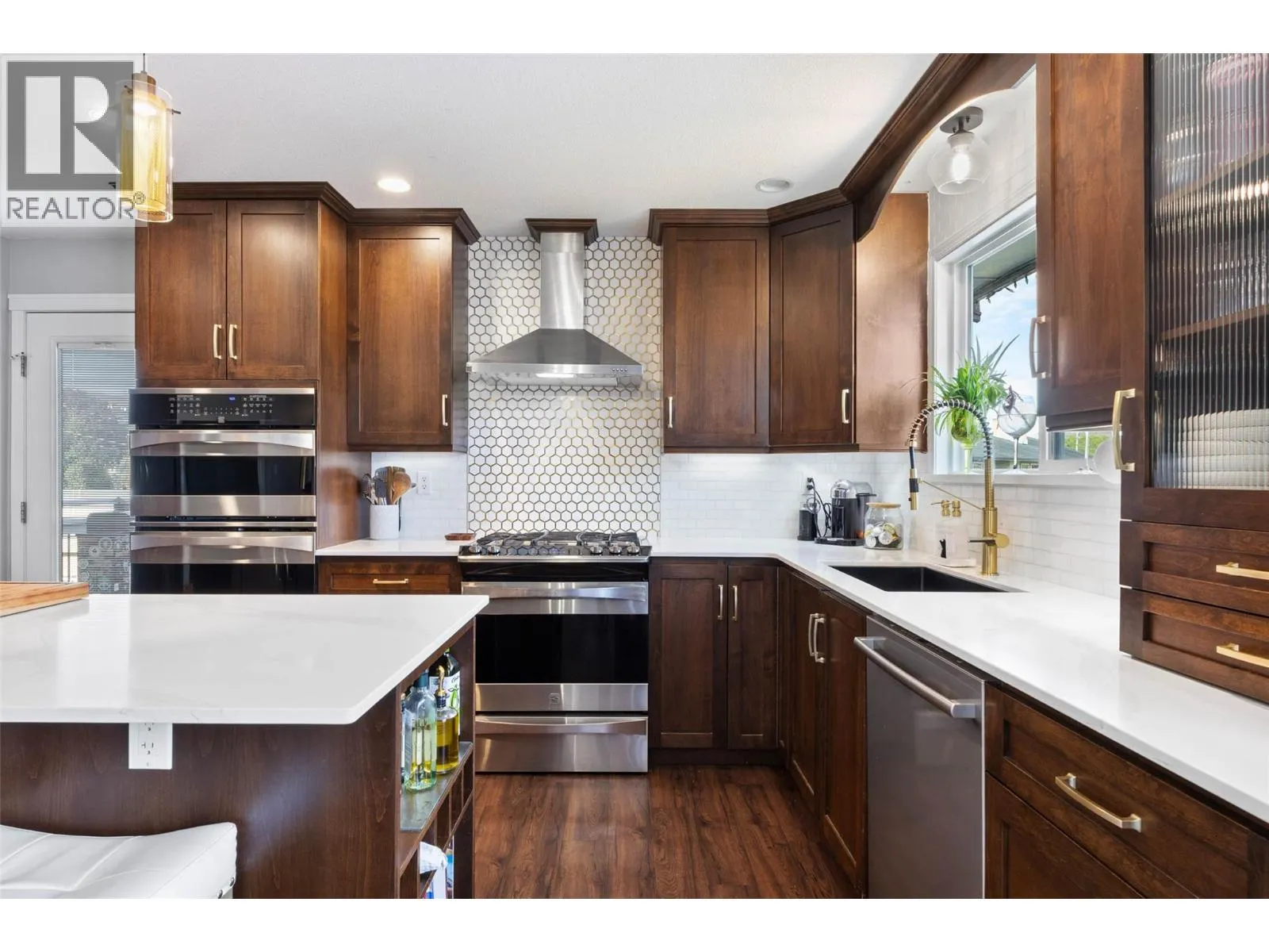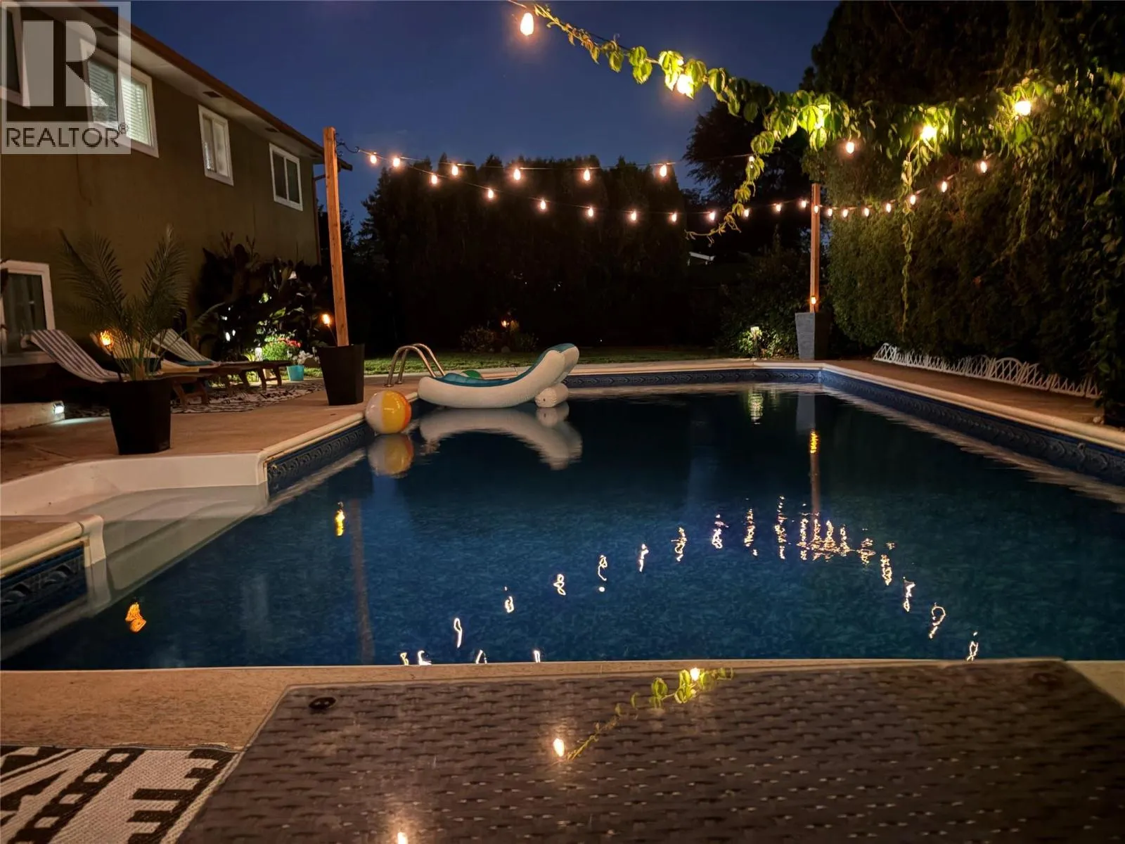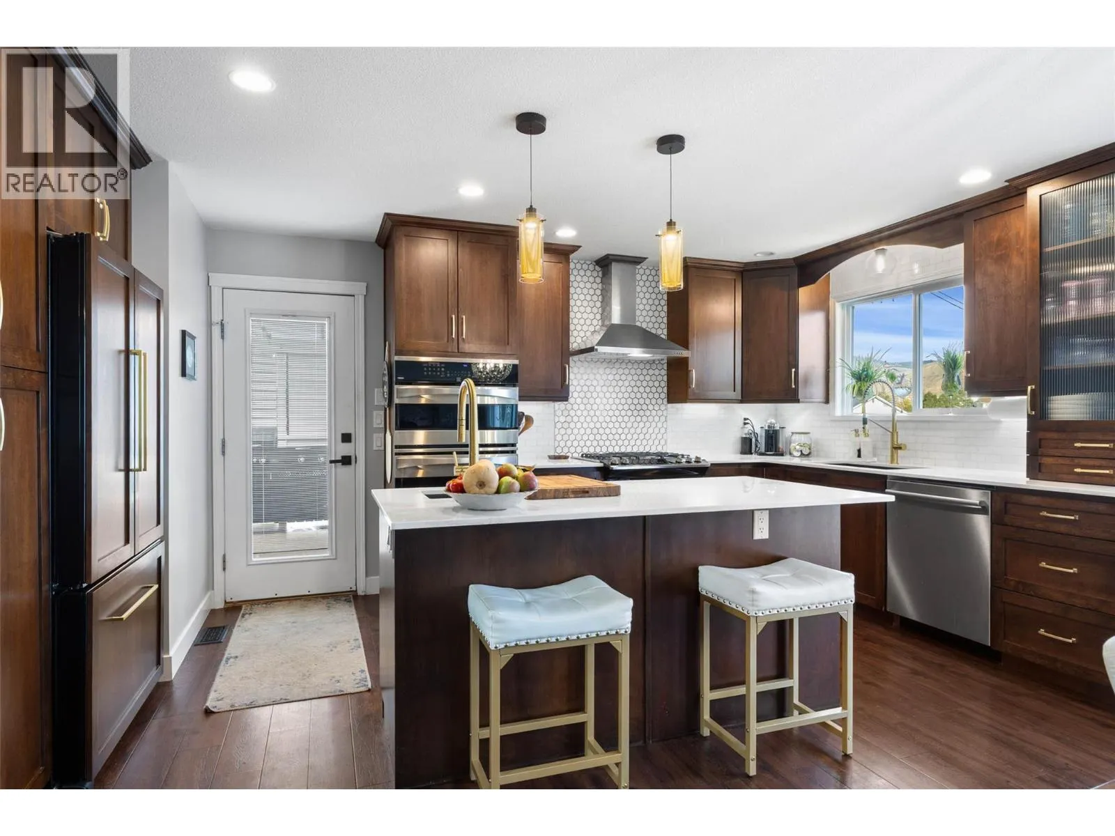 Tucked away on a quiet cul-de-sac, this beautifully updated 4 bedroom plus den and office basement-entry home offers the perfect blend of comfort, style, and functionality. The heart of the home is a stunning kitchen featuring a large island with eat-at bar and 2nd sink, stone countertops, custom paneled fridge, tiled backsplash, gas range, plus 2nd built in oven and convection microwave. Off the kitchen is access to a large deck with natural gas BBQ hookup and pergola with misters - perfect for summer entertaining. Flowing seamlessly from the kitchen is the dining area with 2nd access to the deck and leads to the bright living room complete with built-in cabinetry and a real wood fireplace for cozy winter evenings. Upstairs you'll find two spacious bedrooms, a versatile den, and a sleek 4-piece modern bathroom. The basement adds even more flexibility with a 2 bedrooms, office, 3-piece bathroom, generous rec room, and a well-equipped laundry room with utility sink and storage. Step outside to your private oasis: a heated inground pool, lush greenery, a grassy area for play, underground sprinklers and a handy shed. With ample parking and close proximity to all amenities, this home checks every box for comfortable family living and year-round enjoyment. Brand new HW tank installed January 2026. All meas approx (id:27476)