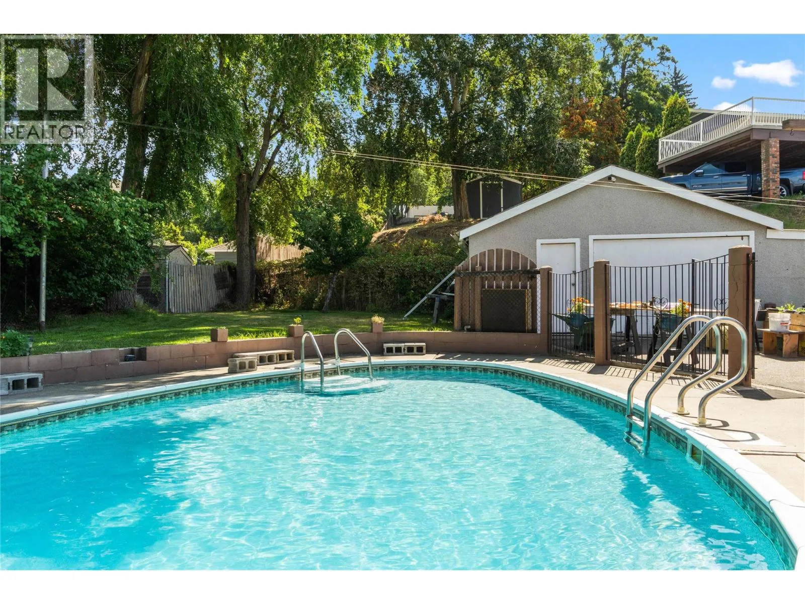 Welcome to your private oasis! This charming single-family home sits on a rare, flat 0.24-acre lotâoffering space, privacy, and incredible lifestyle potential. Step outside and discover a true entertainerâs dream: a beautifully maintained in-ground pool, expansive outdoor living areas, and a fully fenced yardâperfect for hosting gatherings, relaxing in the sun, or letting your dogs roam safely and freely. Inside, the home offers a warm and inviting atmosphere, highlighted by a cozy gas fireplace and an open, functional layout. The main floor features one exceptionally large bedroom, with the flexibility to easily convert it back into two bedrooms if desiredâideal for growing families or those needing extra space. Additional features include a durable metal roof, a detached workshop for hobbies or storage, and ample parking for vehicles, RVs, or guests. Whether you're entertaining, working on projects, or simply enjoying peaceful outdoor living, this property offers a unique combination of comfort, versatility, and spaceâall in one exceptional package. Donât miss your opportunity to own this versatile and inviting home! (id:27476)