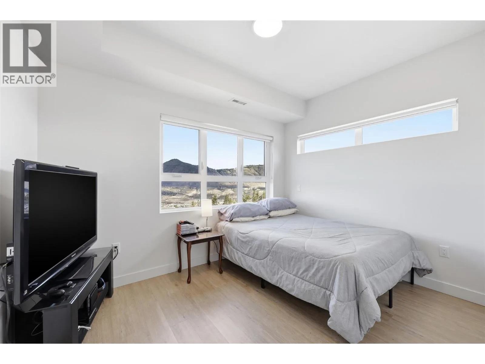 Million Dollar views from this almost brand new third floor unit. This exceptional third-floor end unit offers added privacy, breathtaking views, and outstanding functionality for comfortable ownership. Featuring 2 bedrooms and 2 bathrooms across 1,212 sq ft, the open-concept layout provides bright, modern living spaces designed for both everyday living and entertaining. Step outside to the generously sized patio, complete with a natural gas BBQ hookup â perfect for hosting and enjoying the stunning north and northwest views of Mt. Paul, the Kamloops Valley, and the surrounding hillsides. Inside, youâll find the stylish Kitchen, durable vinyl flooring, and a stainless steel appliances, creating a clean and contemporary aesthetic throughout. Q18 has a variety of exceptional amenities, including: Secure heated underground parking, Bike storage, Amenities room with pool table and lounge area, On-site gym with bathroom facilities, Rooftop patio with BBQ, seating, and panoramic views. Low strata fee $420 per month and not GST. Great location in Juniper with access to hiking and biking trails in a safe community. (id:27476)