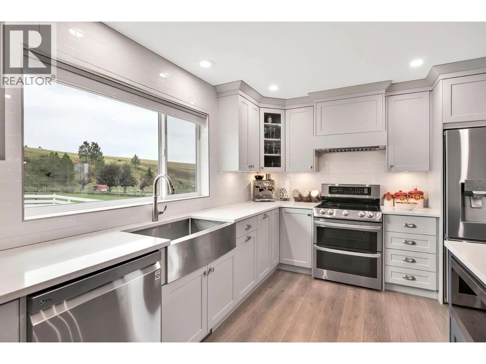 If youâve been searching for space, privacy, and a home thatâs already been beautifully updated, this is it. Set on just under 5 acres within Kamloops city limits, this property offers a peaceful setting without sacrificing convenience. The main floor has been completely refreshed with a bright, modern kitchen, quartz countertops, a large island, and warm engineered wood flooring throughout. With 3 bedrooms and 2 full bathrooms, itâs move-in ready for family living. Downstairs, the partially finished basement offers room to grow, with a rec room, bathroom rough-in, and future development potential. Step outside and enjoy the lifestyle this property offers with fenced paddocks, a spacious barn, loafing shed and room to ride, roam, or simply unwind. With city water supply, paved access, and zoning that may allow for a coach house, the possibilities here are wide open. A rare chance to enjoy acreage living just minutes from the heart of Kamloops. (id:27476)