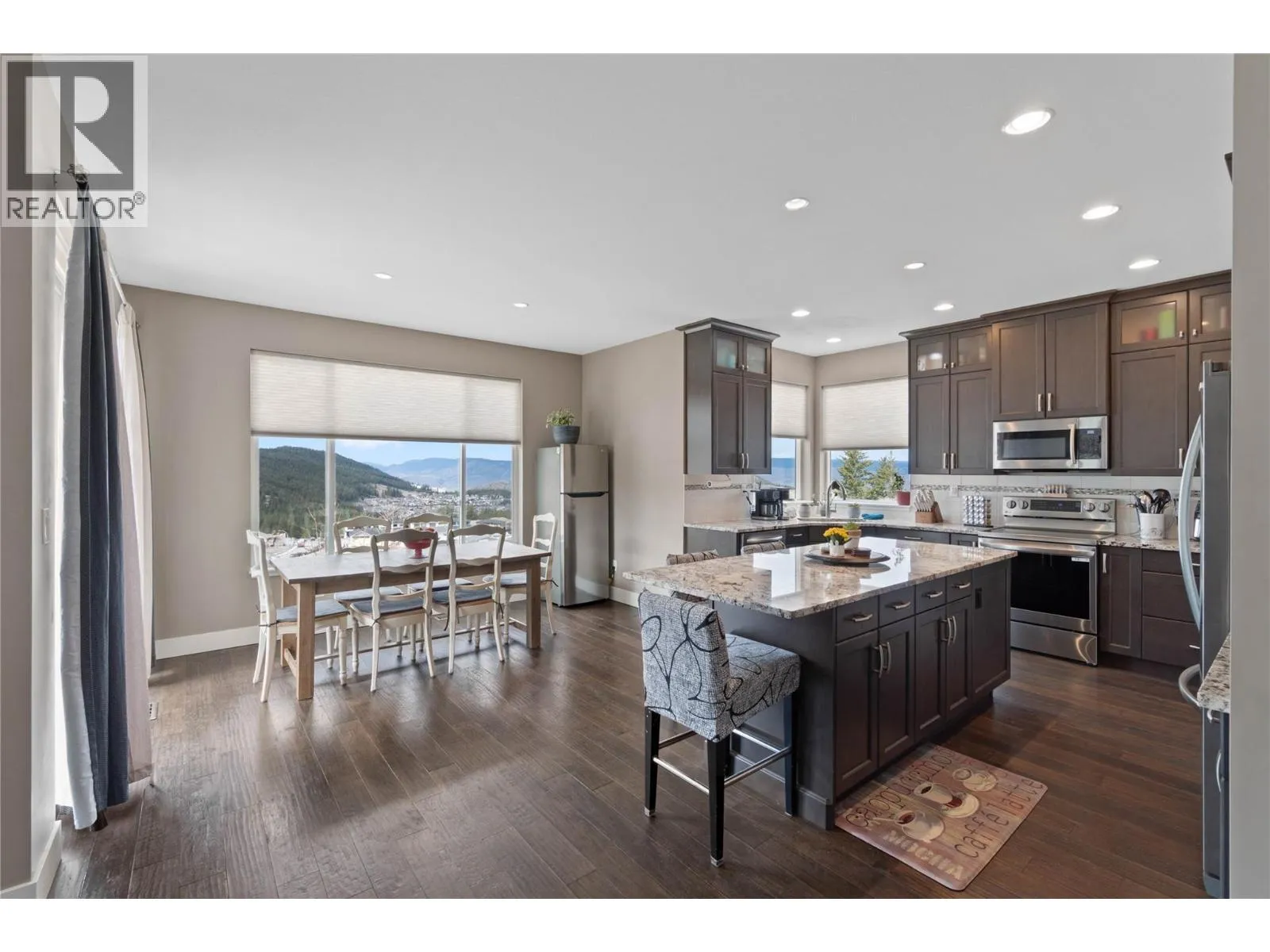 Nestled in the highly sought-after Aberdeen neighbourhood of Kamloops, this upscale executive home offers breathtaking panoramic views of the city, mountains, and river, while backing onto a peaceful wildlife corridor for added privacy and natural beauty. Designed with both comfort and style in mind, the open-concept main floor features soaring ceilings and a beautifully appointed custom kitchen complete with stainless steel appliances, granite countertops, a walk-in pantry, and convenient access to the mudroom off the garage, making everyday living effortless. Step out onto the large covered deck and take in the stunning views while enjoying your morning coffee or hosting evening BBQs. The fully fenced backyard backs onto the wildlife corridor, creating a serene outdoor setting with no direct rear neighbours. With 5 spacious bedrooms and 4 bathrooms, this home offers plenty of room for a growing family or guests. The primary suite is a true retreat, featuring a generous walk-in closet and a luxurious 5-piece ensuite with double sinks, a soaker tub, and a separate walk-in shower. The bright basement offers even more living space with a large rec room,2 bedroom full bathroom , full daylight, and a separate entrance, ideal for family or future suite potential. Additional highlights include RV parking and an oversized double garage. Located within walking distance to Pacific Way Elementary, this home combines luxury, functionality, privacy, and an unbeatable location. (id:27476)
