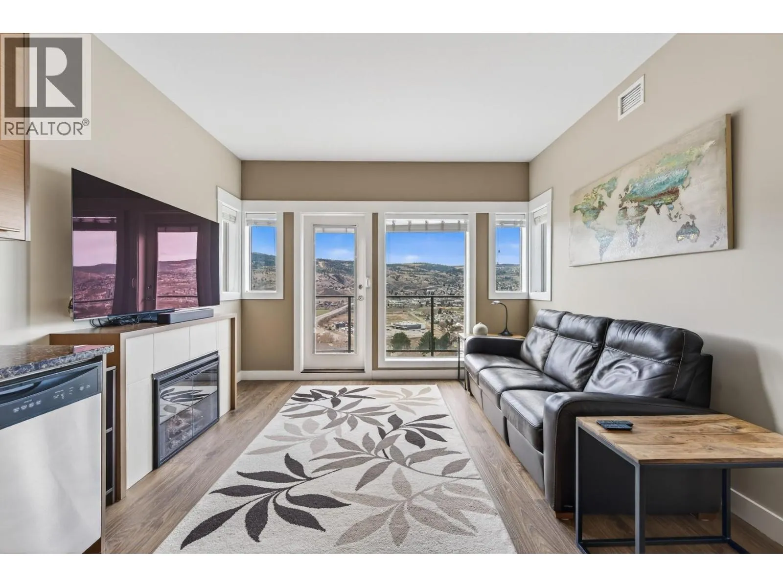 This location is unbeatable. Located in the Alamar building at Talasa, this top floor, south-facing unit captures breathtaking views of the city, mountains, and river. Sit back, relax, and take in the changing skies and city lights at night. Meticulously cared for, the condo features new high-quality vinyl plank flooring (2024) and fresh paint throughout, giving it a like-new feel. The kitchen offers an island with seating, granite countertops, S/S appliances, and cabinetry with undermount lighting. The living room is positioned to maximize the views and includes a comfortable electric fireplace. With two bedrooms plus a den, this layout is ideal and offers slightly more square footage than similar units. Two full bathrooms include a 4pc main and 3pc ensuite. A standout feature is the step-in closet in the primary. Enjoy a lock-and-go lifestyle with geothermal heating and cooling, 1 underground parking stall (#16), and 1 storage unit (#50). Steps to Sun Rivers Commons with Riverbrew Cafe, Wasabi Japanese, Pizza Hut, daycare and a pharmacy. View today! (id:27476)