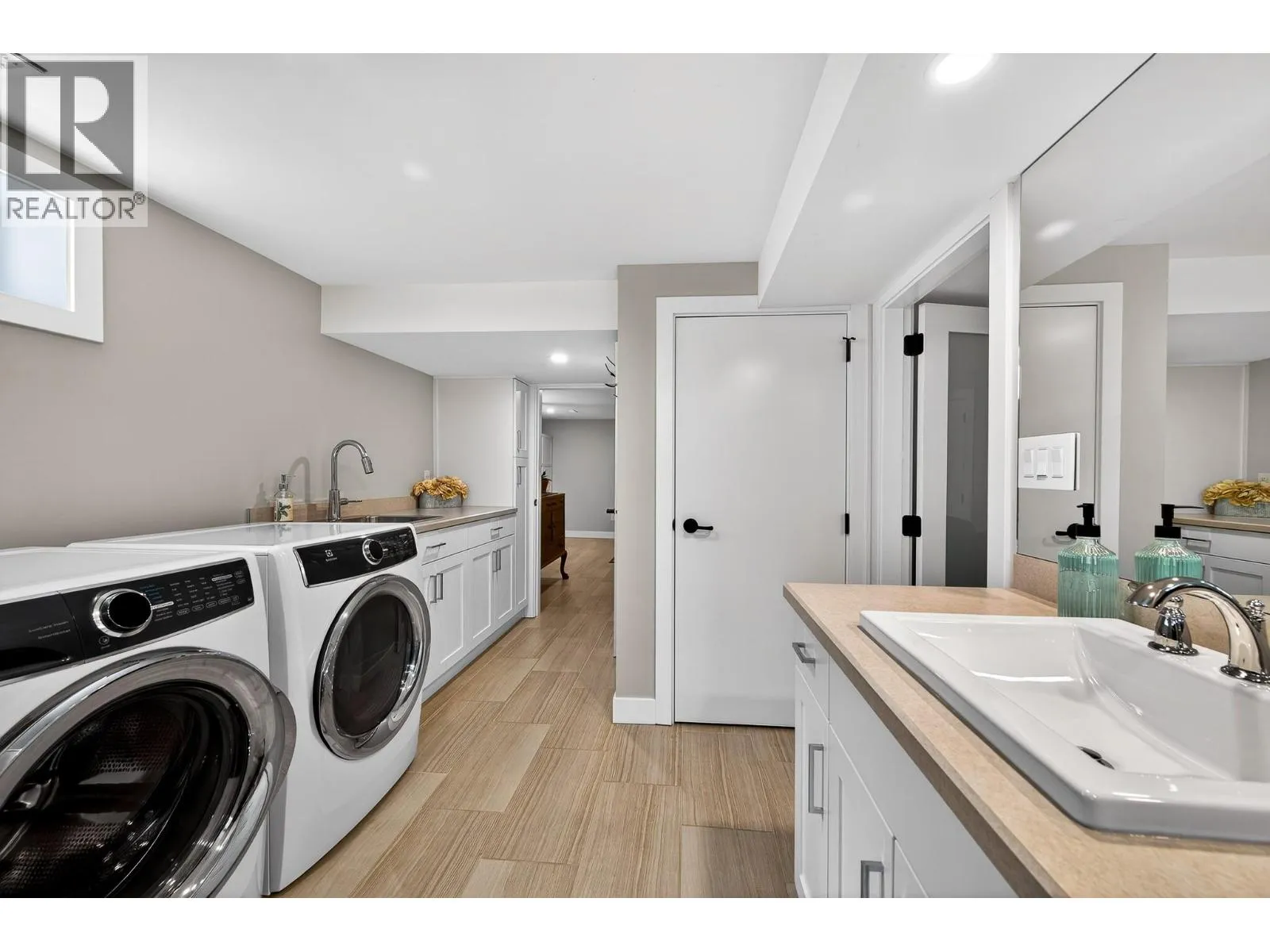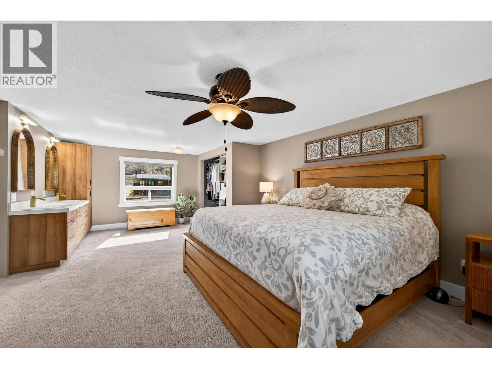 This desirable Valleyview 4-bedroom, 2-bath home offers nearly 2,000 sq. ft. of living space and features original hardwood flooring throughout the bright main floor, which includes a welcoming living room and a well-appointed kitchen with stainless steel appliances, ample storage, and a cozy dining nook with access to the fully fenced yard. The spacious primary bedroom provides double sinks for added convenience and abundance natural light with windows on either side of the room. Completing the main floor are two additional bedrooms and a 4-piece bathroom. The fully finished basement includes a large rec room with an electric fireplace and built-in storage, a generous laundry room with a 3-piece bathroom featuring a custom tiled shower and heated tile floors, plus a dedicated wine cellar. Outside, enjoy a beautifully landscaped backyard with a pergola-covered patio, terraced garden beds, raised boxes, and three storage sheds. Recent updates include a new roof, eavestroughs, doors, windows, siding, and exterior paint, along with a fenced deer-proof yard, underground sprinklers, upgraded electrical, and a 7-year-old furnace, hot water tank, and A/C. This move-in-ready home blends charm, comfort, and modern convenience in a fantastic location. All measurements approx. (id:27476)