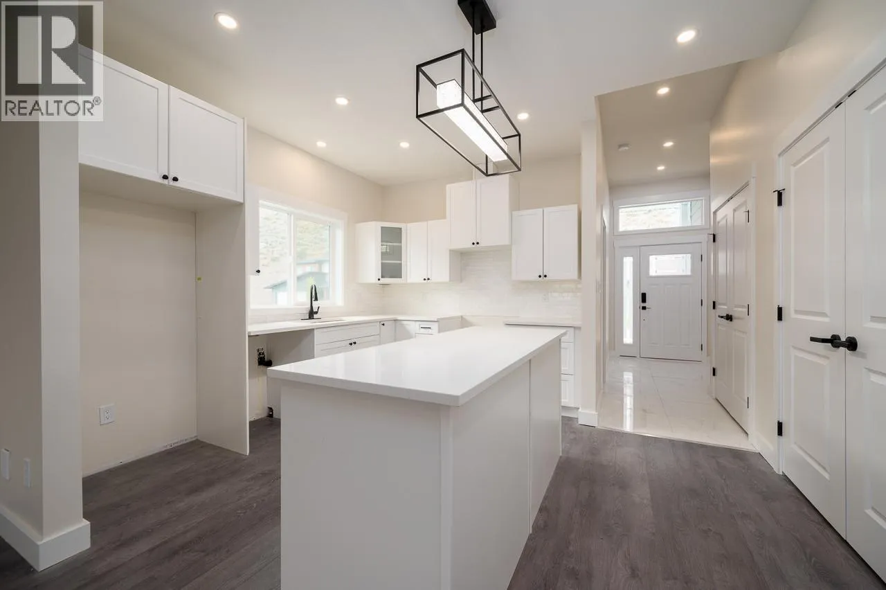 Welcome to Sunset Ridgeâone of the areaâs most sought-after bareland strata communitiesâperfect for families looking for space, comfort, and convenience. This beautifully designed home offers level entry living with wide hallways and an open-concept layout, ideal for all stages of life. The bright, modern kitchen is the heart of the home, featuring stainless steel appliances, white shaker cabinetry, quartz countertops, a large island, and a generous pantryâperfect for busy family mornings or entertaining guests. The living room flows seamlessly onto a covered deck, offering stunning mountain views and plenty of space for outdoor dining, BBQs, and relaxing evenings. The main floor hosts three well-sized bedrooms, including a spacious primary retreat with a walk-in closet and a private ensuite featuring a large walk-in shower. Convenient main floor laundry adds to the homeâs practical family-friendly design. Downstairs, the fully finished walk-out basement provides incredible flexibility with a 2-bedroom in-law suiteâideal for extended family, guests, or additional living space. Movie nights will be unforgettable in the dedicated home theatre room, complete with a suspended slab ceiling for added sound insulation. Outside, youâll find a double garage plus additional driveway parking for two vehiclesâperfect for growing families or visitors. (id:27476)