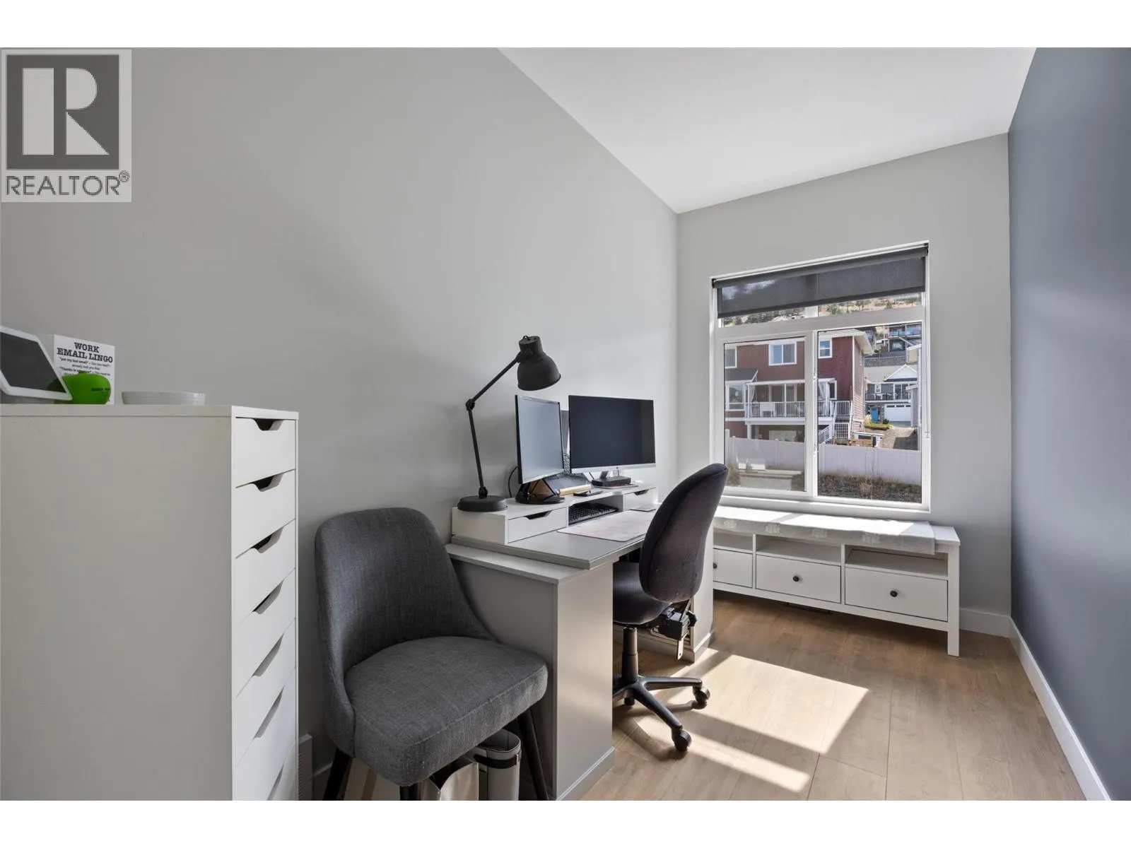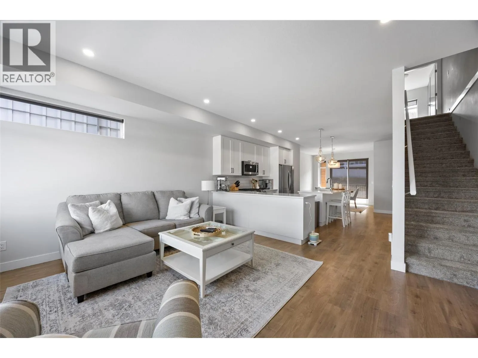 Welcome to this bright & airy, pristine 3 bedroom & den, 4 bathroom end unit townhome in The Ridge at Juniper West - an excellent choice with so much space and versatility! The open concept main living area flows seamlessly with an abundance of natural light and a beautiful modern kitchen featuring cabinetry to the ceiling, an island with seating for four, quartz countertops and stainless steel appliances including a gas range. New laminate flooring has been installed throughout the upper floor - aesthetically pleasing with smooth transition from room to room. The primary bedroom offers upgraded features - a walk in closet with durable closet organizer and ensuite with two undermount sinks and quartz countertops. New carpet has been installed on the stairs, laminate in the lower level bedroom, recent painting done and stylish Fittes floor vents added. Parking isn't an issue here with an oversized garage, driveway, extra parking stall and street parking out front. With easy access to a dog park, children's playground and tons of hiking and biking trails nearby, this is a prime location! Central a/c, south facing covered deck, two pets allowed. (id:27476)