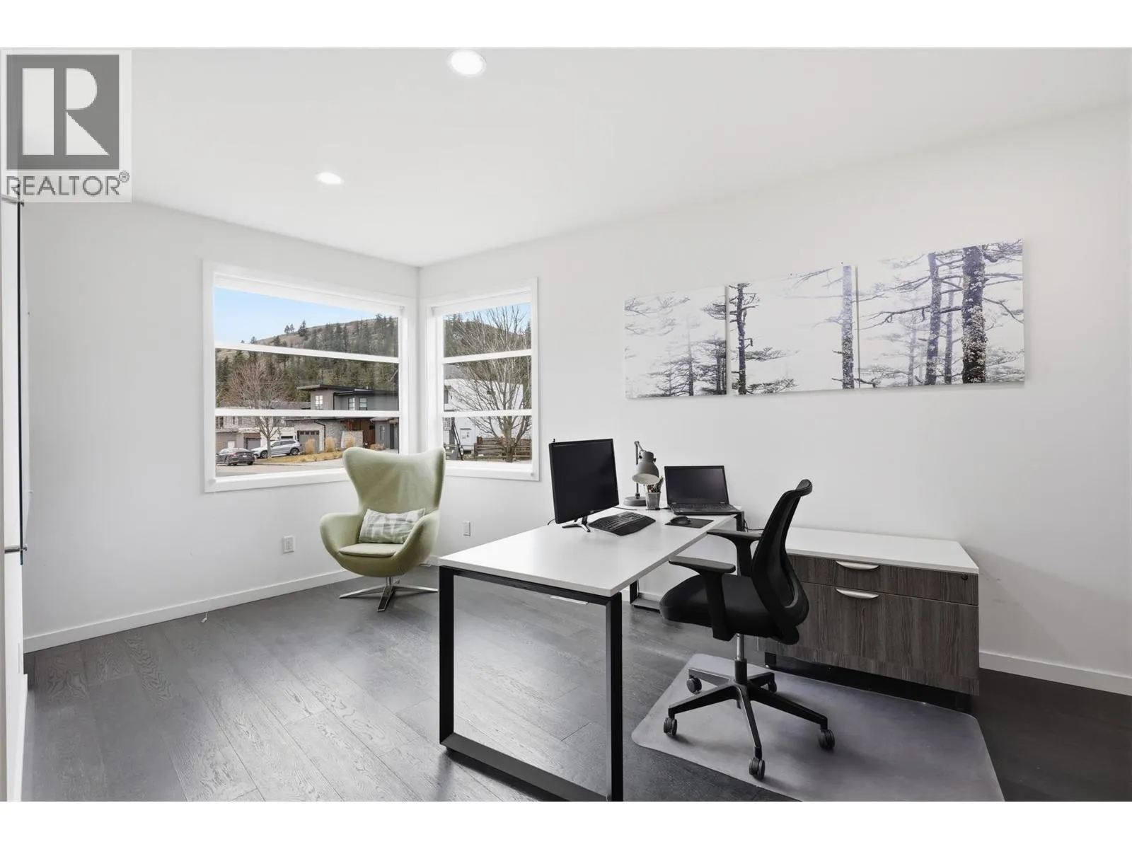 RARE FIND! A Modern Masterpiece and Perfect Family Home! STUNNING VIEWS! This beautiful and bright 4 bedroom, 4 bathroom custom built home offers over 4,700 sq. ft. of living space in the sought-after Hidden Trails Development. An award-winning home, designed by Motivo Design Group. Designed for flexibility, the home offers multiple living areas across each level, creating space that adapts to both everyday living and quiet retreat. A dedicated office provides a functional work-from-home setting. The main living area features an open concept layout, where a floating wood staircase creates natural separation between the living room and the kitchen and dining area. Large windows draw in natural light and frame the surrounding landscape, complemented by a natural gas fireplace. The primary suite is positioned to take in the views, featuring large windows, dual closets, and a 5-piece ensuite with a stand-alone tub and in-floor heating. The lower level includes a fourth bedroom, a bright recreation room, and a workshop currently used as a bike room with outdoor access. Outdoor living is designed for both relaxation and activity, featuring a bocce ball court, seating areas, a natural gas fire pit, and two decks including a private upper deck off the Media room. Located in Hidden Trails, this home offers a balance of privacy, access to nature, and major amenities. (id:27476)