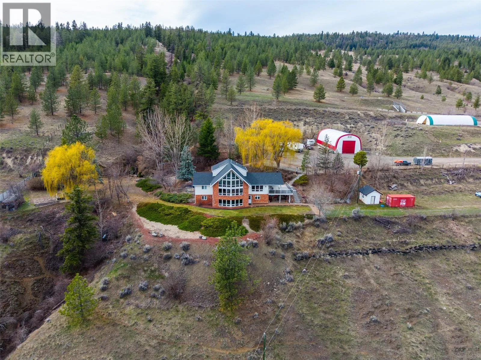 One-of-a-kind 20-acre property offering breathtaking 180 panoramic views of the North Thompson River - all while backing onto Noble Creek/Lac Du Bois Grasslands for ultimate privacy and nature - yet still within City of Kamloops Boundary. This impressive over 4,200+ sq.ft. home features 5 bedrooms plus a self-contained 1bdrm in-law suite with ground-level access - ideal for multi-generational living. The main living space showcases a dramatic vaulted ceiling with a stunning floor-to-ceiling window wall, filling the home with natural light and capturing incredible views from the kitchen, dining, and living areas. The open-concept kitchen offers a cooktop island and spacious eating area, while the secluded primary bedroom includes vaulted ceilings, dual walk-in closets, and a spa-like ensuite with a soaker tub. Outdoor living is equally exceptional with a beautiful backyard featuring a pond, firepit, perennials, and fruit shrubs, plus a fully fenced area with water access for pets. Property highlights include two Quonset buildings(84âx 32â) one with 19â height with automatic opener & 50amp power (new cover 2021) & Second one with 14â height, perfect for storing your toys. Additional features: ICF foundation for superior insulation, 200amp service, oversized septic system, City water, newer roof (2020), and hot water tank(2026). Only 2km to Westsyde shopping, schools, and The Dunes Golf Course. A rare opportunity to enjoy peaceful country living with city convenience. Must see! (id:27476)