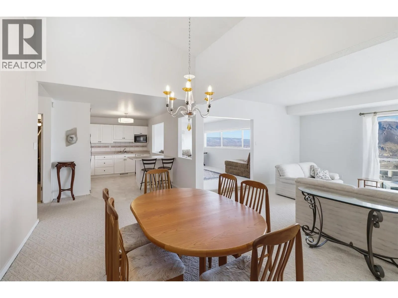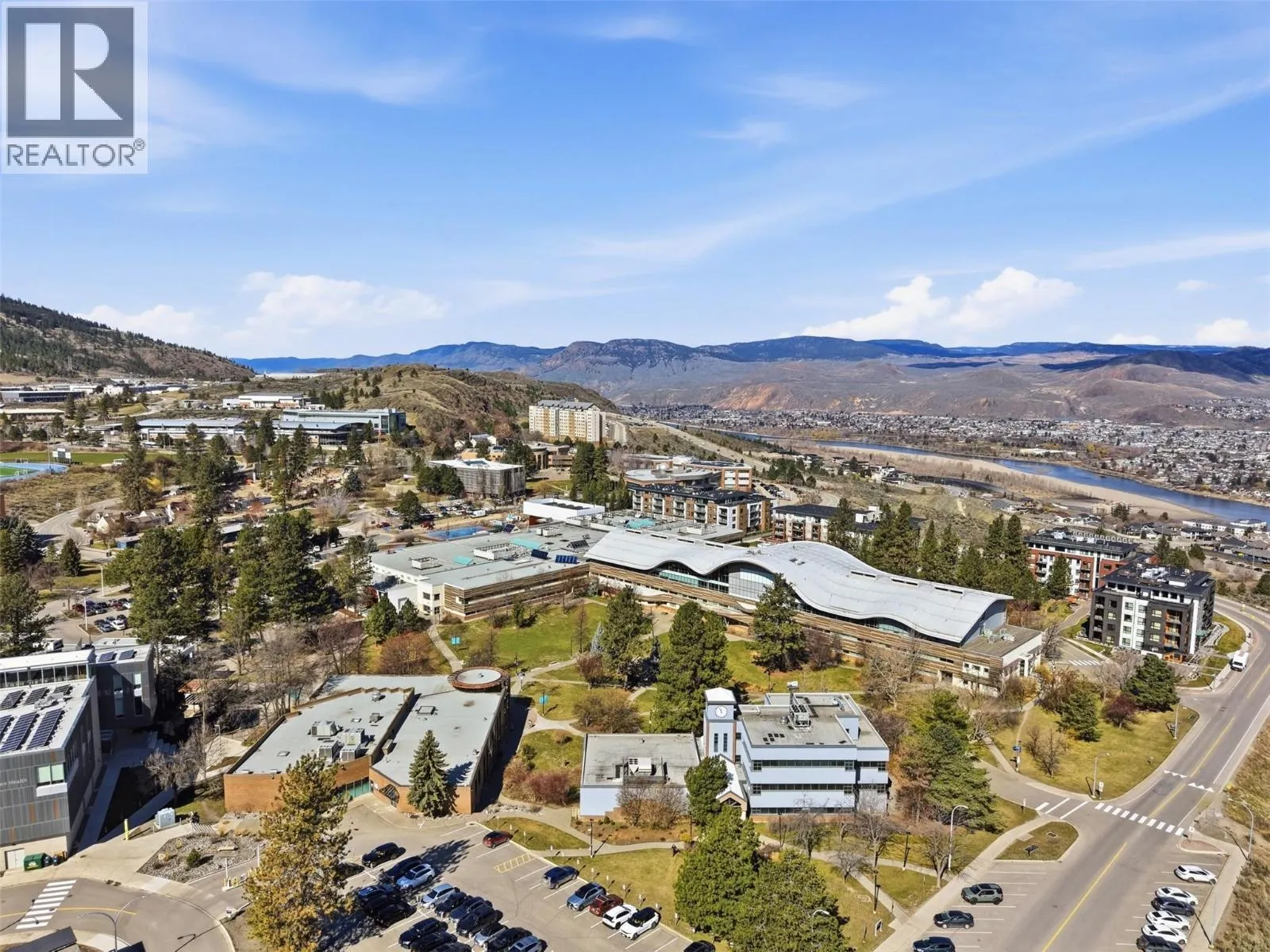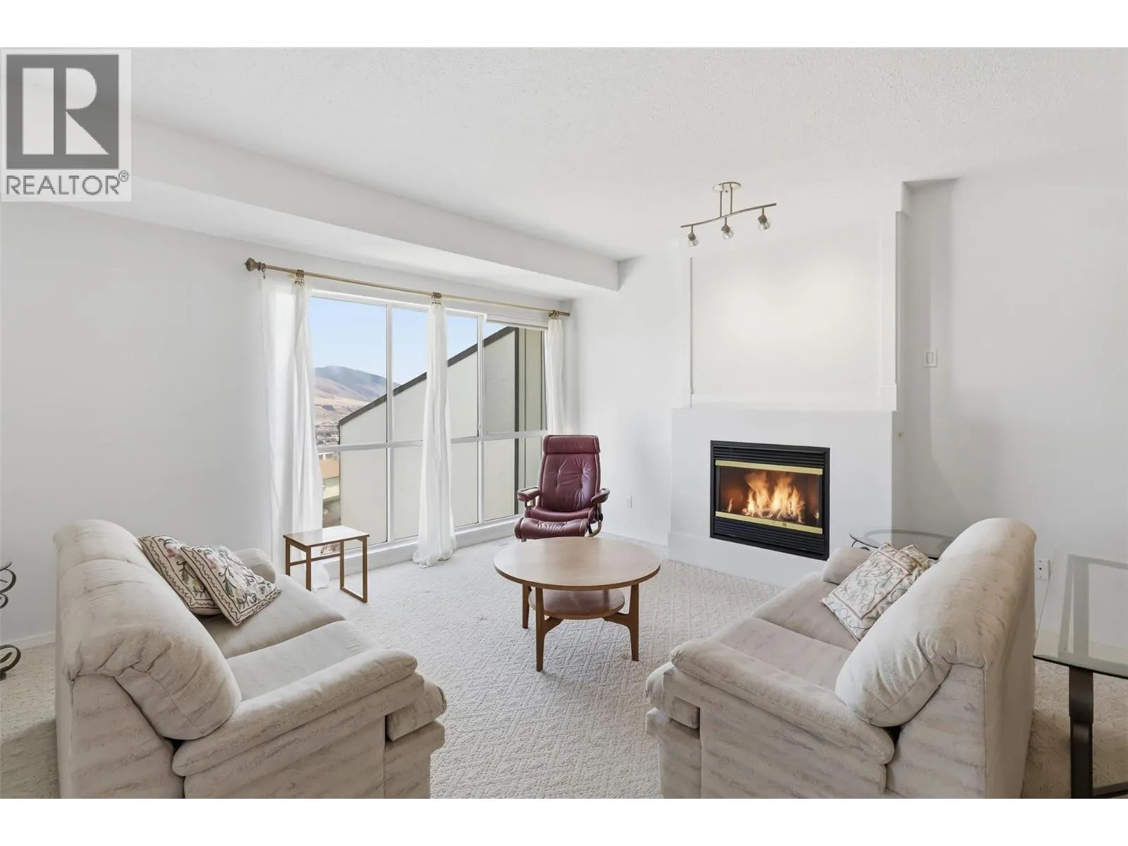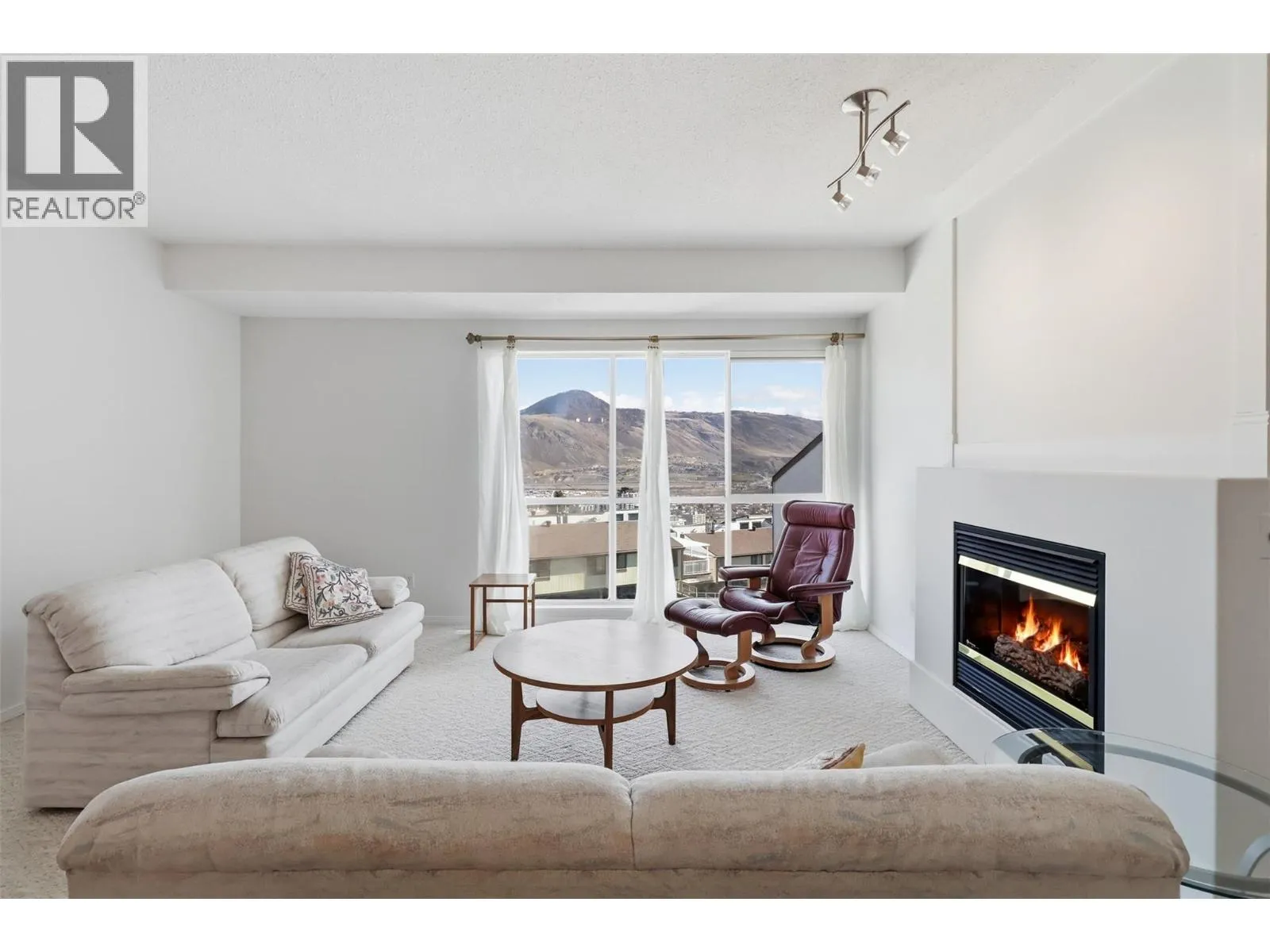 Perched on the top floor, this rare three-bedroom condo offers an elevated lifestyle defined by space, light, unforgettable views and of course lifestyle. Soaring 14-foot vaulted ceilings create an airy, open atmosphere, perfectly complemented by a modern layout designed for both comfort and entertaining. Expansive windows frame panoramic, breathtaking views of the city and surrounding mountainsâyour daily backdrop from sunrise to sunset. The open-concept living area w/ gas fire place flows seamlessly, making it easy to host, relax, or simply take in the scenery. Each bedroom provides flexibility for family, guests, or a home office, all while maintaining a sense of privacy and tranquility above it all. Large rear deck with upgraded aluminum roof. Step outside and enjoy the convenience of being just a walk to Thompson Rivers University, the hospital, and the vibrant heart of downtown. Cafes, restaurants, shops, and everyday amenities are all within easy reach, making this location ideal for students, professionals, and anyone seeking a connected, walkable lifestyle. Whether youâre starting your day with a coffee overlooking the mountains or winding down with city lights below, this rare unit offers a rare blend of style, convenience, and inspiring views. All measures approx buyer to verify if important - Measurements taken from Essentials Media digital floor plan. (id:27476)