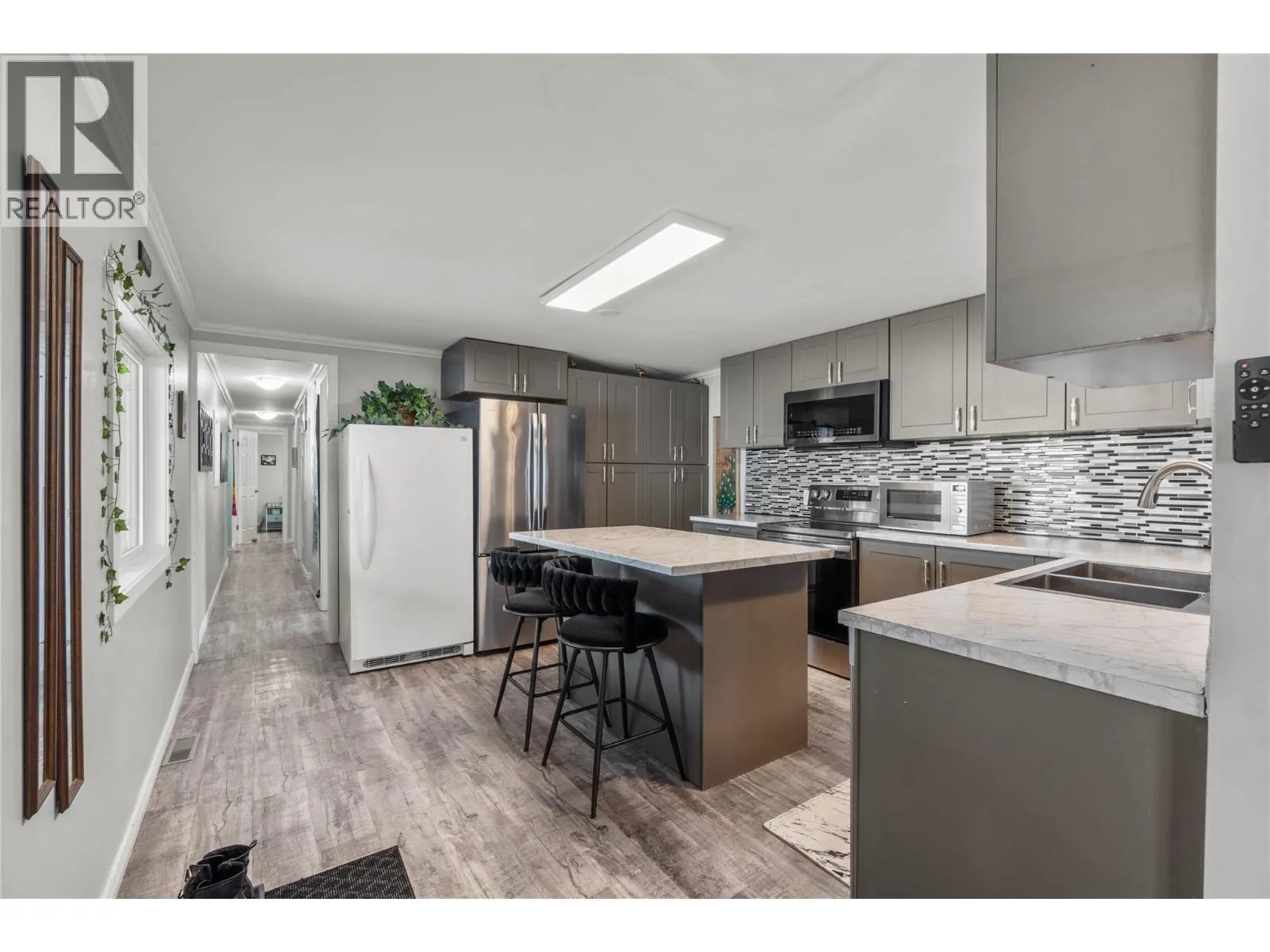 Welcome to this beautifully maintained single-wide mobile home, thoughtfully enhanced by a spacious addition and a large covered front deckâperfect for relaxing mornings or entertaining guests year-round. The private, fully fenced yard offers a safe and serene space for children and pets to play, while a convenient storage shed adds everyday practicality. With open parking for two vehicles, functionality meets ease right from the start. Inside, youâll find a bright and inviting living room featuring a charming bay window that fills the space with natural light. Modern upgrades shine throughout, including fresh paint and durable vinyl plank flooring, creating a clean and contemporary feel. The stunning kitchen is a true centerpieceâfully equipped with appliances (including an upright freezer), a wall of pantries for exceptional storage, and a large island with bar thatâs perfect for family gatherings or casual entertaining. This home offers three well-sized bedrooms and a spacious 5-piece main bathroom. The primary bedroom is a standout, boasting a luxurious 4-piece, ensuite for your own private retreat. Additional highlights include a dedicated laundry room with a stacking washer and dryer, plus convenient access to the yard. Major upgrades provide peace of mind, with newer roof, lights and furnace, plus a brand-new hot water tank and central air conditioner. Stylish, functional, and move-in ready. Seller is moving off shore so all furnishings and contents are negotiable. (id:27476)
