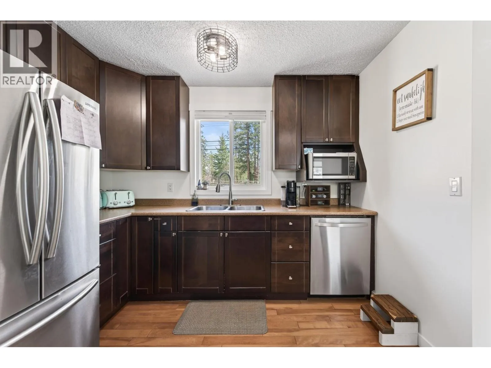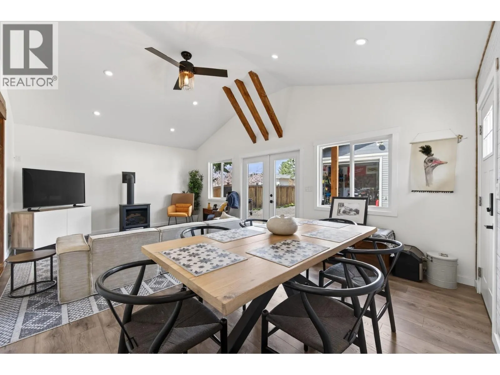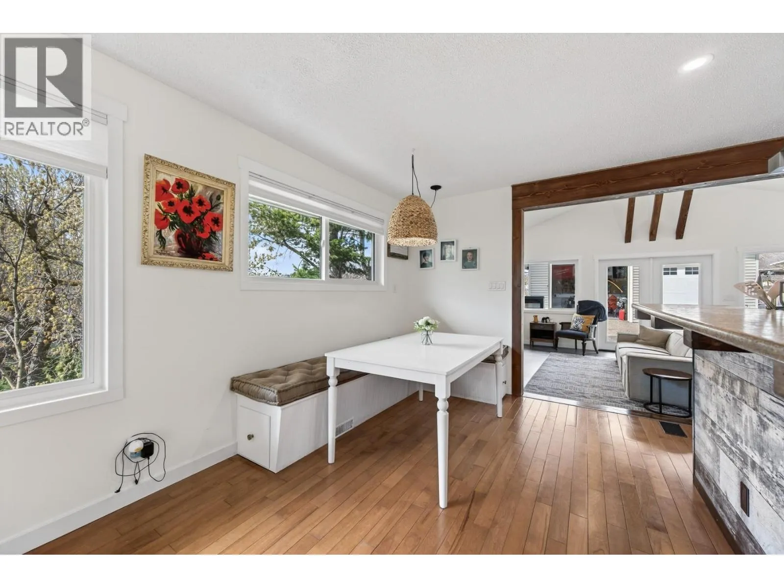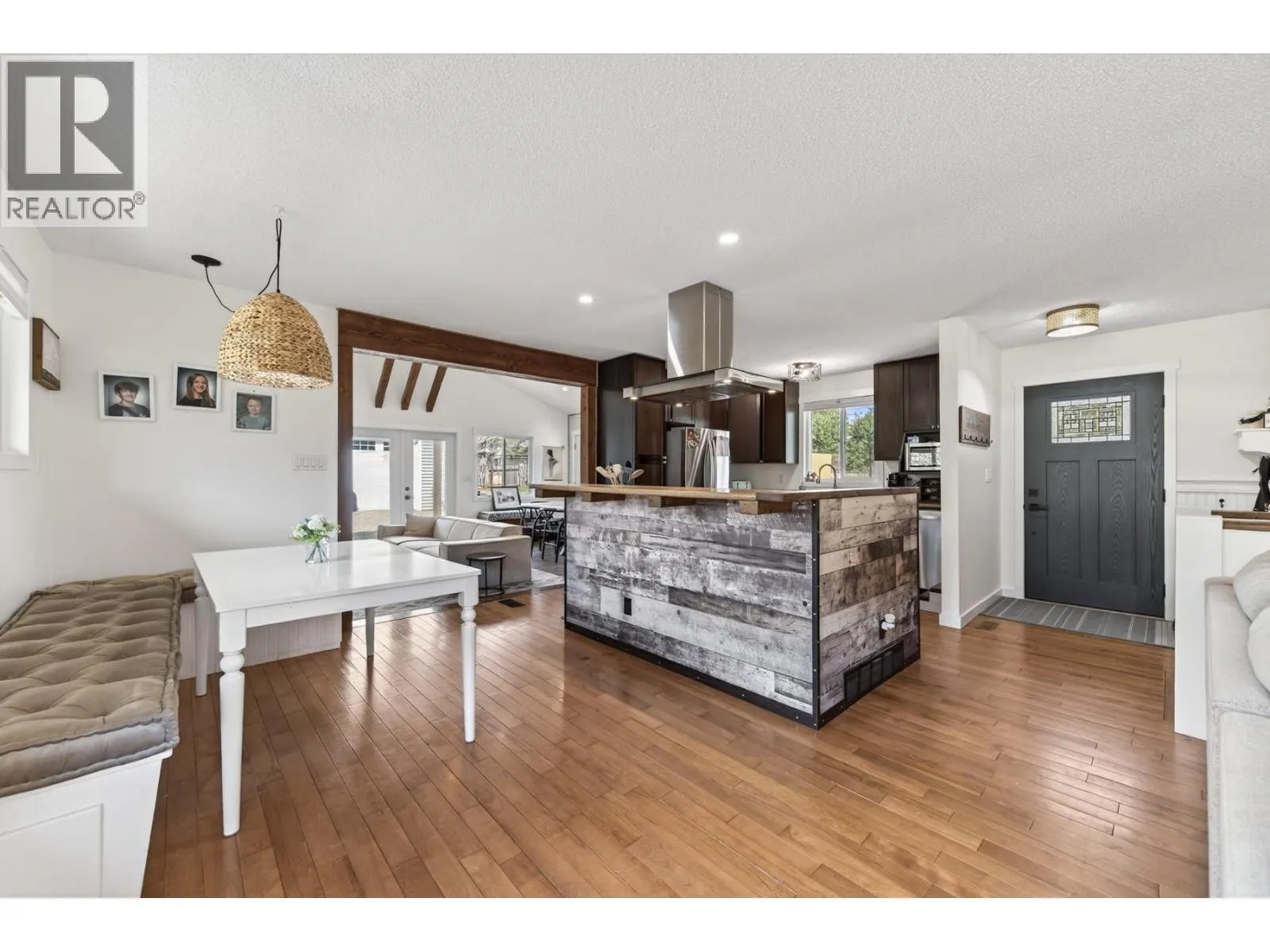 If you have been looking for a family home in Barnhartvale, stop scrolling. This one has the space, the character, the shop, and the yard that families out here never stop searching for. Four bedrooms across two levels on a flat quarter-acre corner lot. The main floor has 3 bedrooms and a wide open living area that honestly surprised me. The kitchen has a big island with a great rustic look to it, dark cabinetry, stainless range hood, and it flows right into the living and dining space framed by exposed timber posts and beams. It has that modern farmhouse feel without trying too hard. Then there is a bonus second living room with vaulted ceilings, decorative wood beams, a gas stove, and french doors that open straight out to the backyard. This is the kind of room where you put on a movie with the kids on a Saturday afternoon or sit by the stove with a coffee in January. It also gives you direct access to the yard and the detached shop. The walkout basement has a 4th bedroom, a big rec room, a hobby or games room, and its own separate entrance with parking. The suite potential is real if you ever want rental income or space for extended family. The shop is 24 by 26, heated, fully finished inside and out. The yard is flat, fenced, and way bigger than what you normally get. A pergola, a garden shed, and enough open space left over for a pool. Central A/C, all new windows and doors, 200 amp electrical, short walk to the Elementary and the bus stop. 15 min to Downtown (id:27476)