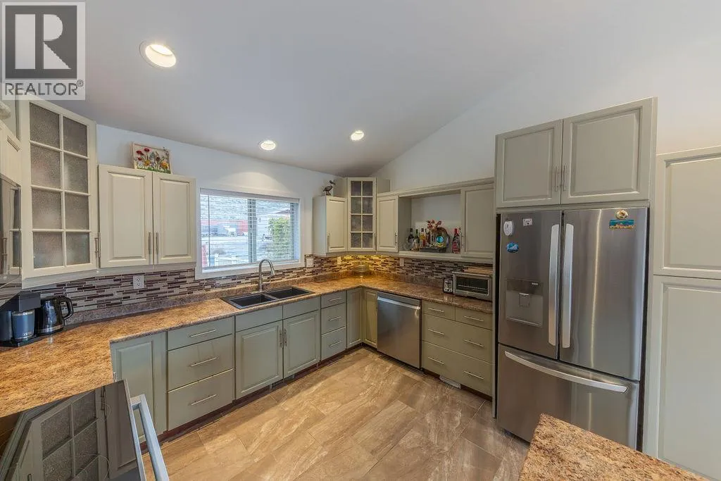 Welcome to Rivershore Golf Estates, where lifestyle and comfort come together in this thoughtfully designed home. This is one of those homes that just feels good the moment you walk in, set in a quiet, family-friendly community where the sense of community truly stands out. Inside, the main living space is bright and open with stunning 21-ft vaulted ceilings that bring in natural light all year. The updated kitchen features new appliances and flows seamlessly into the living area, perfect for both everyday life and hosting. The layout is incredibly flexible, with two primary bedrooms with ensuites and so many thoughtful extras like a built-in dog washing station! Downstairs offers 9-ft ceilings, an in-law kitchenette, 2 bedrooms and a full bathroom, ideal for extended family or multi-generational living. Comfort is covered with an individual geothermal heating and cooling system for efficient, low-cost year-round living. The garage is just as impressive with 10-ft ceilings, built-in storage, and a 240V outlet ready for an EV or tools. Outside, youâll love the no-maintenance yard, two storage sheds, and a 16-ft access gate off the main road, perfect for larger vehicles, projects, or future shop potential. Close to private walking trails and on a school bus route, this well-cared-for, one-owner home truly checks all the boxes.provides efficient year-round comfort at a low month expense. Garage features impressive 10-ft ceilings, built-in storage cupboards, and a 240V outlet ready for an electric vehicle or large tools. Outside, enjoy a spacious no maintenance yard with two storage sheds and a 16-ft access gate off the main road for larger vehicles or projects, plus potential to build a shop or garage (with city approval). This quiet neighbourhood also offers nearby walking trails and a school bus route. Reach out to book your showing of the immaculate well cared for one owner home. (id:27476)