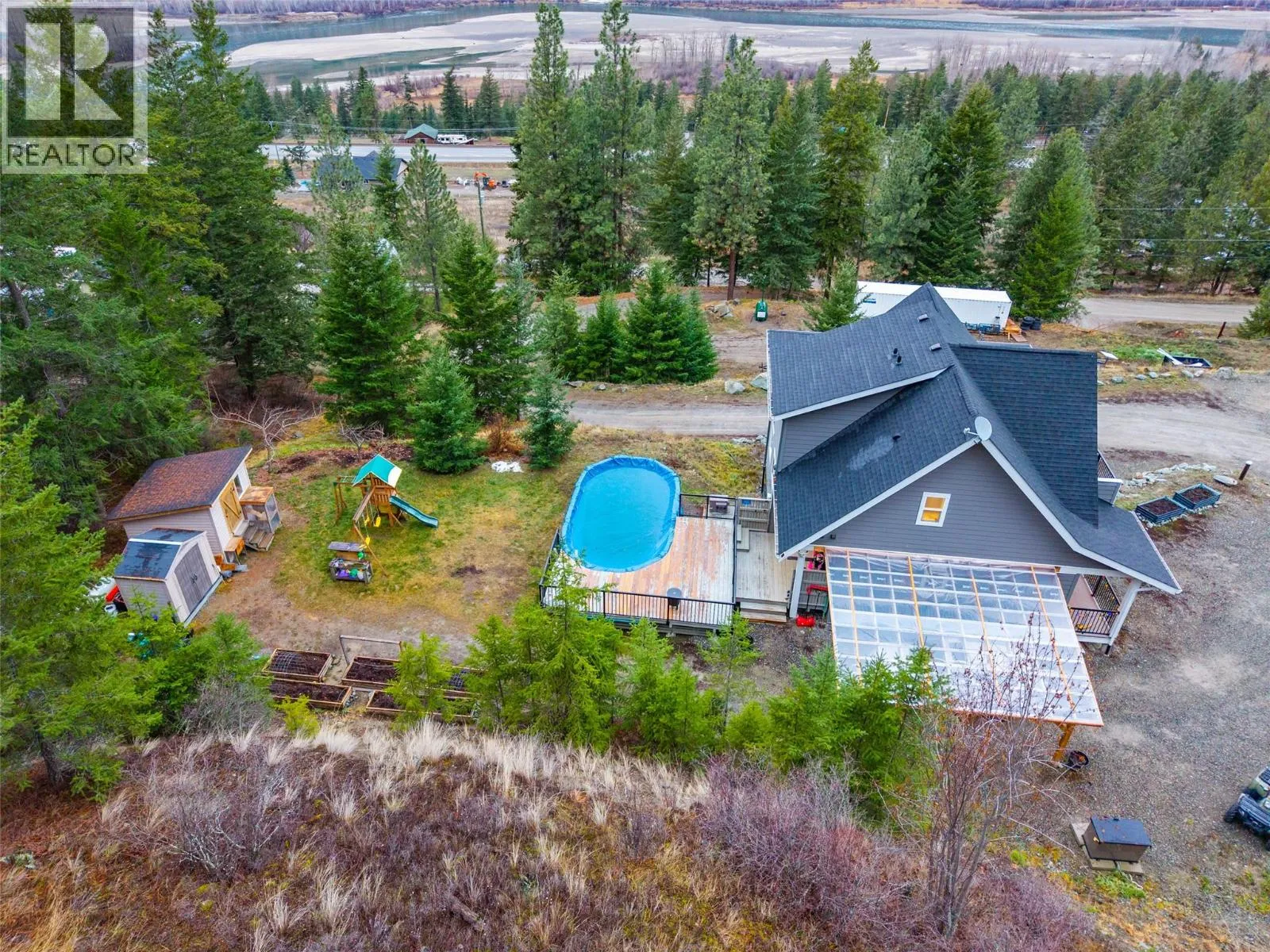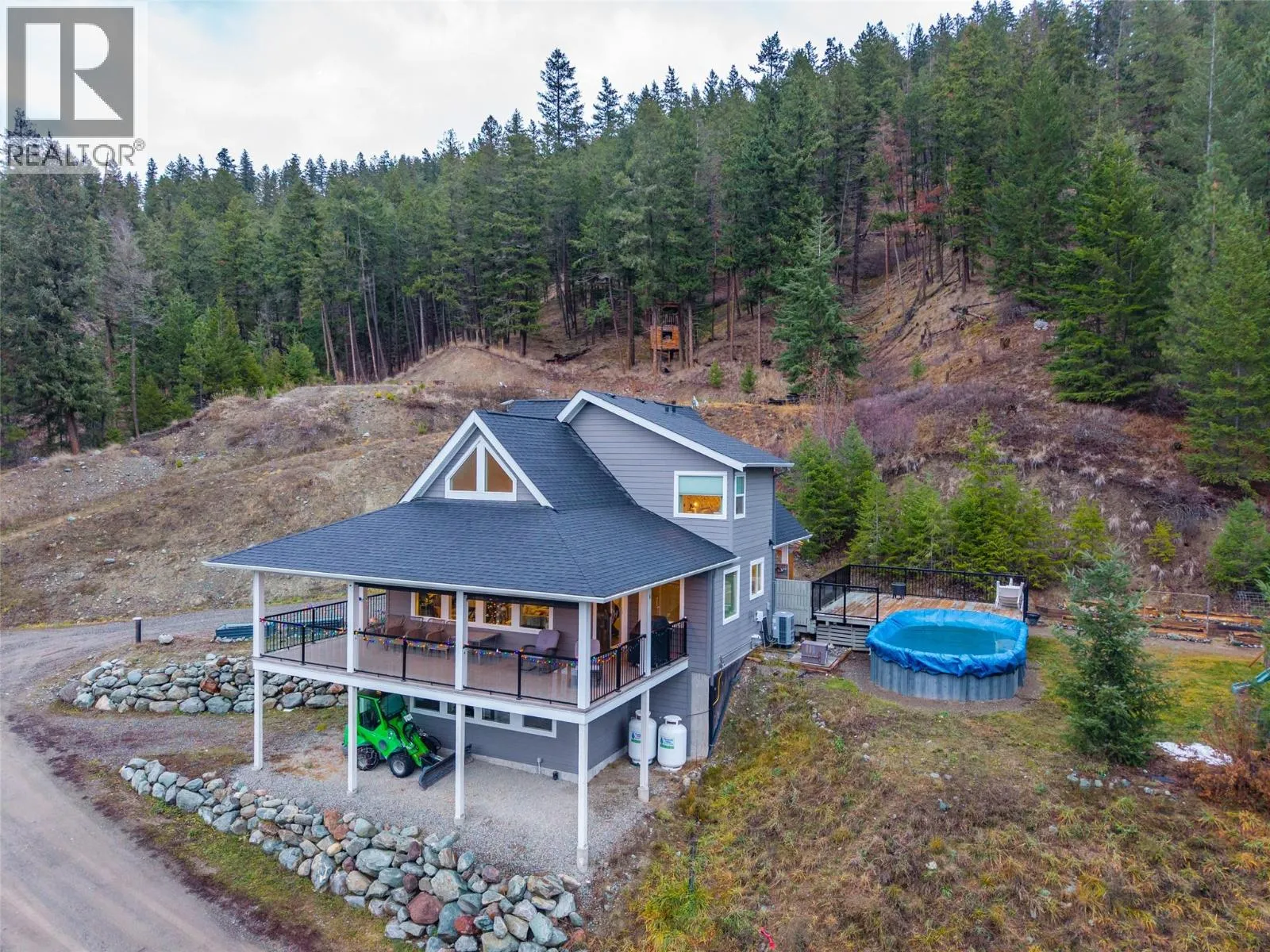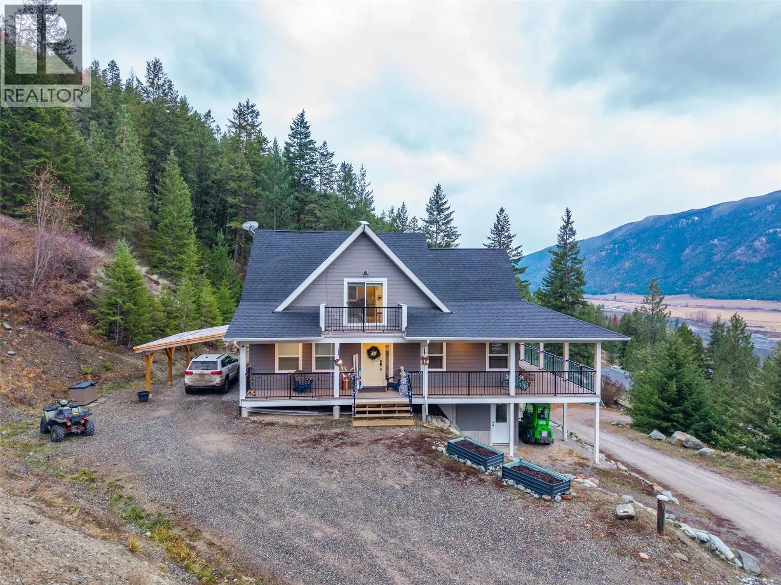 Perched above the North Thompson River, this stunning 2018 custom-built home offers expansive views, privacy, and a true connection to nature on a 2-acre lot just 20 minutes from Kamloops. Thoughtfully designed for both everyday living and entertaining, this home balances refined craftsmanship with a relaxed country lifestyle. Take in breathtaking river valley vistas from the expansive wrap-around sundeck, or enjoy quiet mornings and glowing sunsets from the private deck off the primary bedroom. Inside, the bright, sophisticated kitchen is the heart of the home, featuring a large island, ideal for family gatherings and hosting friends. The upper level includes two generous bedrooms and a spa-inspired bathroom with double sinks, custom tiled shower, and a free-standing soaker tubâyour own private retreat. The lower level offers exceptional flexibility with a family room, games area, exercise room, 4-piece bathroom, cold storage/utility room, and a separate daylight entrance, providing excellent suite potential. Outdoors, enjoy summer days around the heated above-ground saltwater pool with a sun deck. The property is well-serviced with abundant water and UV filtration, ensuring peace of mind and reliability. Close enough for daily amenities yet far enough to escape the hustle, this home delivers a rare blend of comfort, privacy, and lifestyleâat your fingertips, outdoor recreation, and Sun Peaks ski resort all within easy reach. (id:27476)