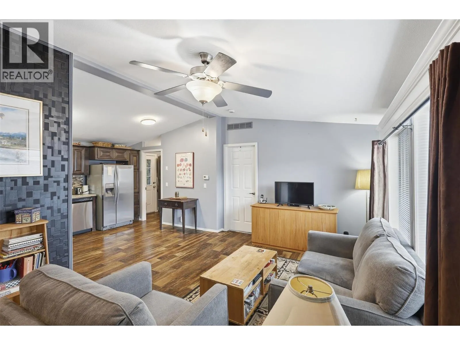 This 3 Bedroom & 2 Bathroom home features 1,056 sq ft of living space, an open-concept & bright floor plan with vaulted ceilings, boasting a spacious kitchen w/pantry, gas range and SS appliances, a dining area and a living room with large windows. Located in South Bend Estates just 8 minutes from Downtown Kamloops and 15 minutes from Thompson Rivers University. The layout is ideal with the 2 secondary bedrooms & 1 bathroom at one end of the home with the primary bedroom and a 4pc ensuite being at the other end. This home is equipped with a ramp for anyone needing mobility / wheelchair access! Enjoy beautiful views in every direction, a fenced yard with raised garden boxes and a private patio space - perfect for entertaining and or for a future hot-tub! Other features include a new hot water tank (2025), 2 large sheds, central air-conditioning, Hardie Board siding, good storage throughout the home and plenty of parking with RV & Boat parking available in the complex. Truly a must-see! Perfect for anyone downsizing, first-time buyers, or a family looking for a great home with a good sized yard. Low pad rent of $450 per month, includes water, septic and garbage. Dogs and cats are allowed - see bylaws! (id:27476)