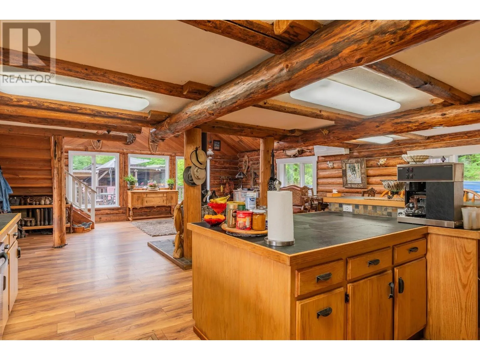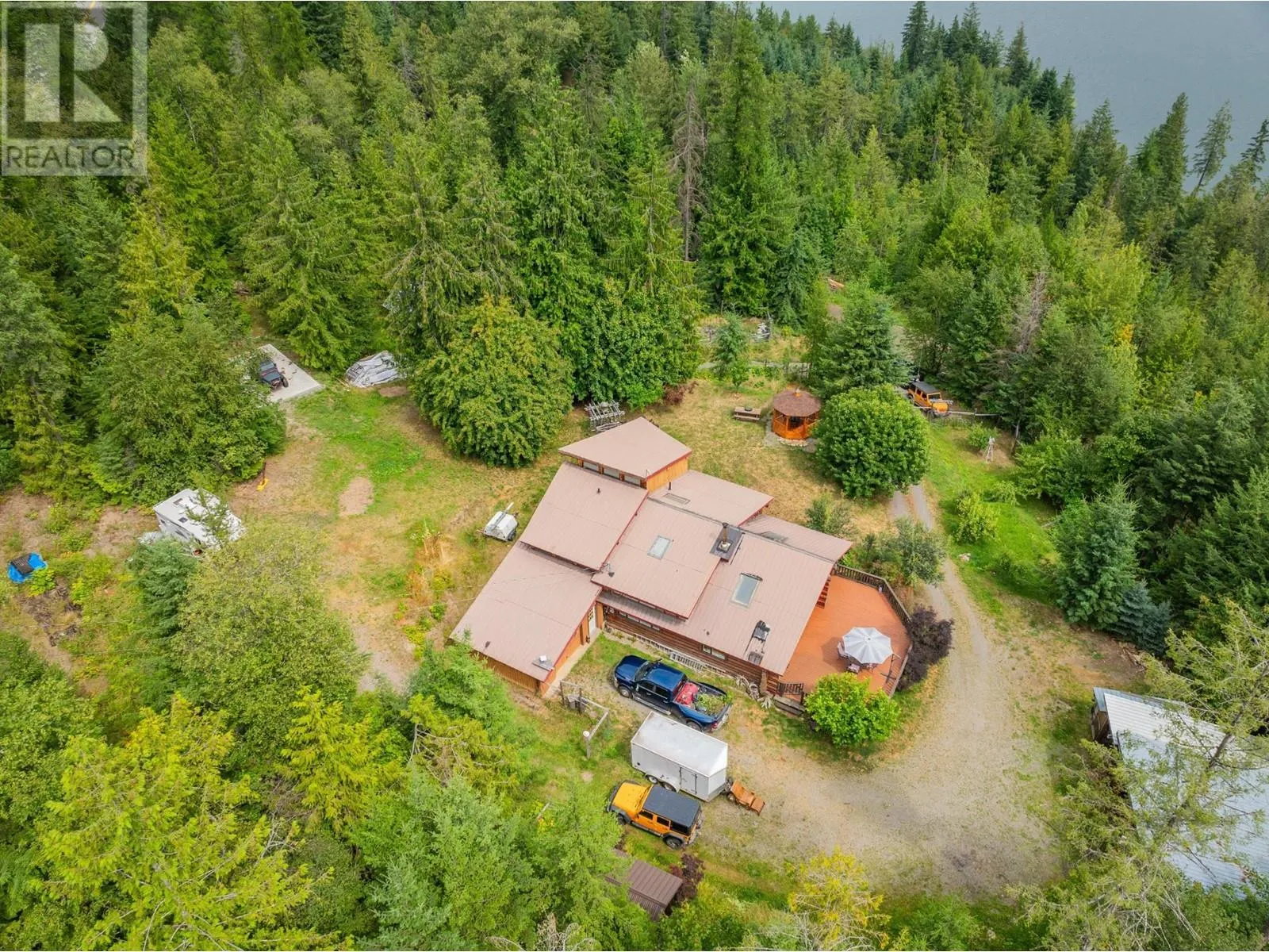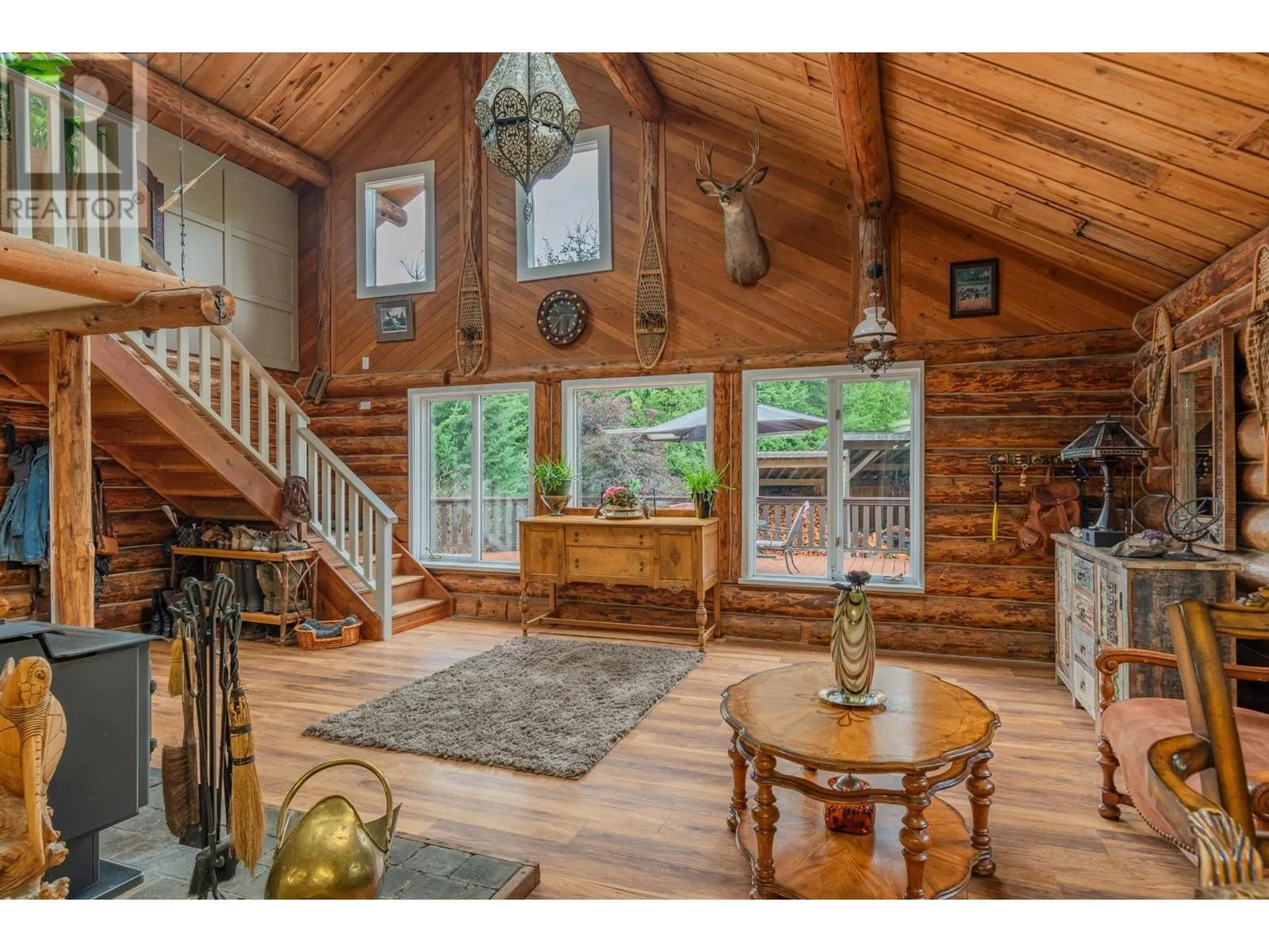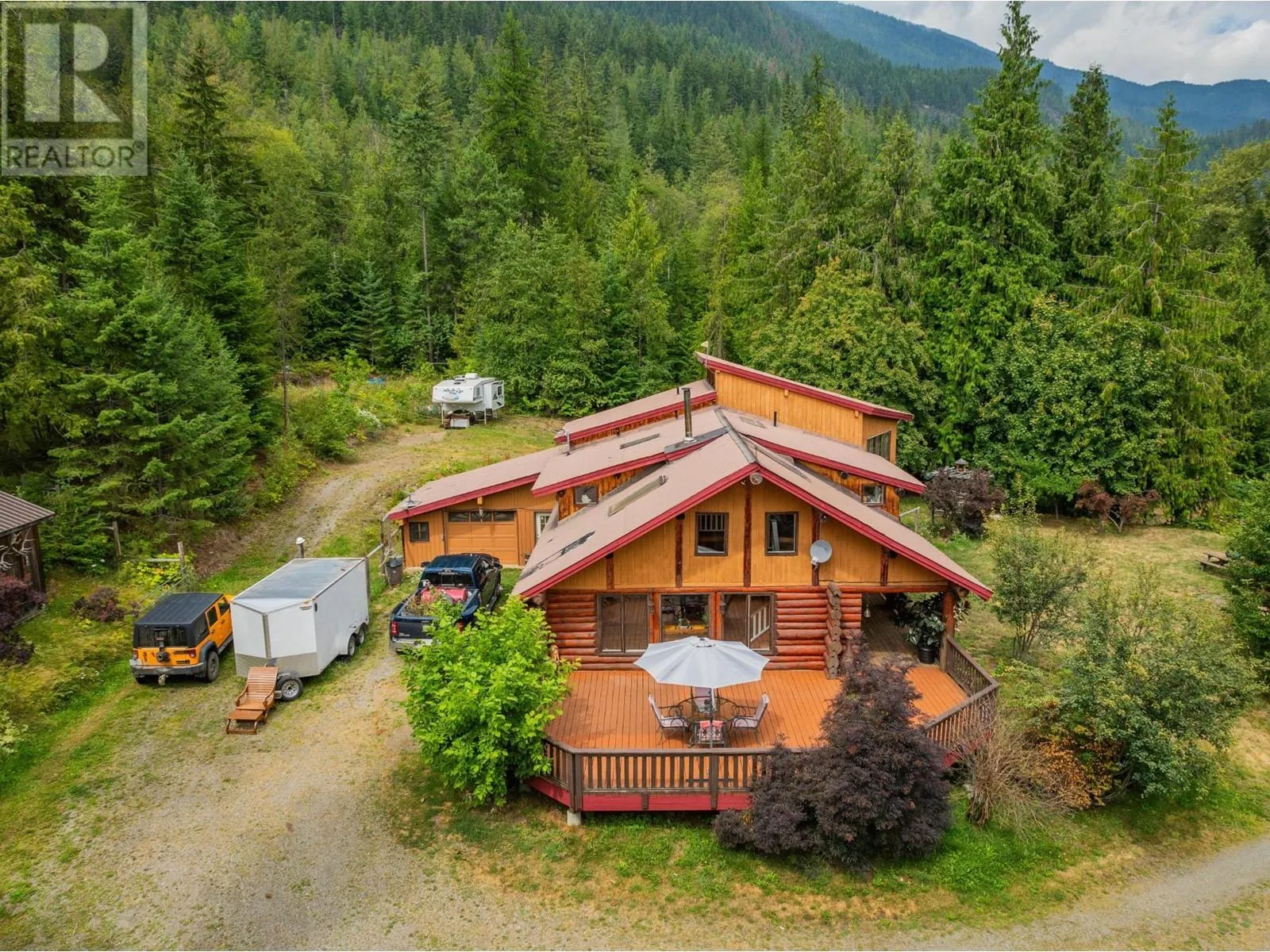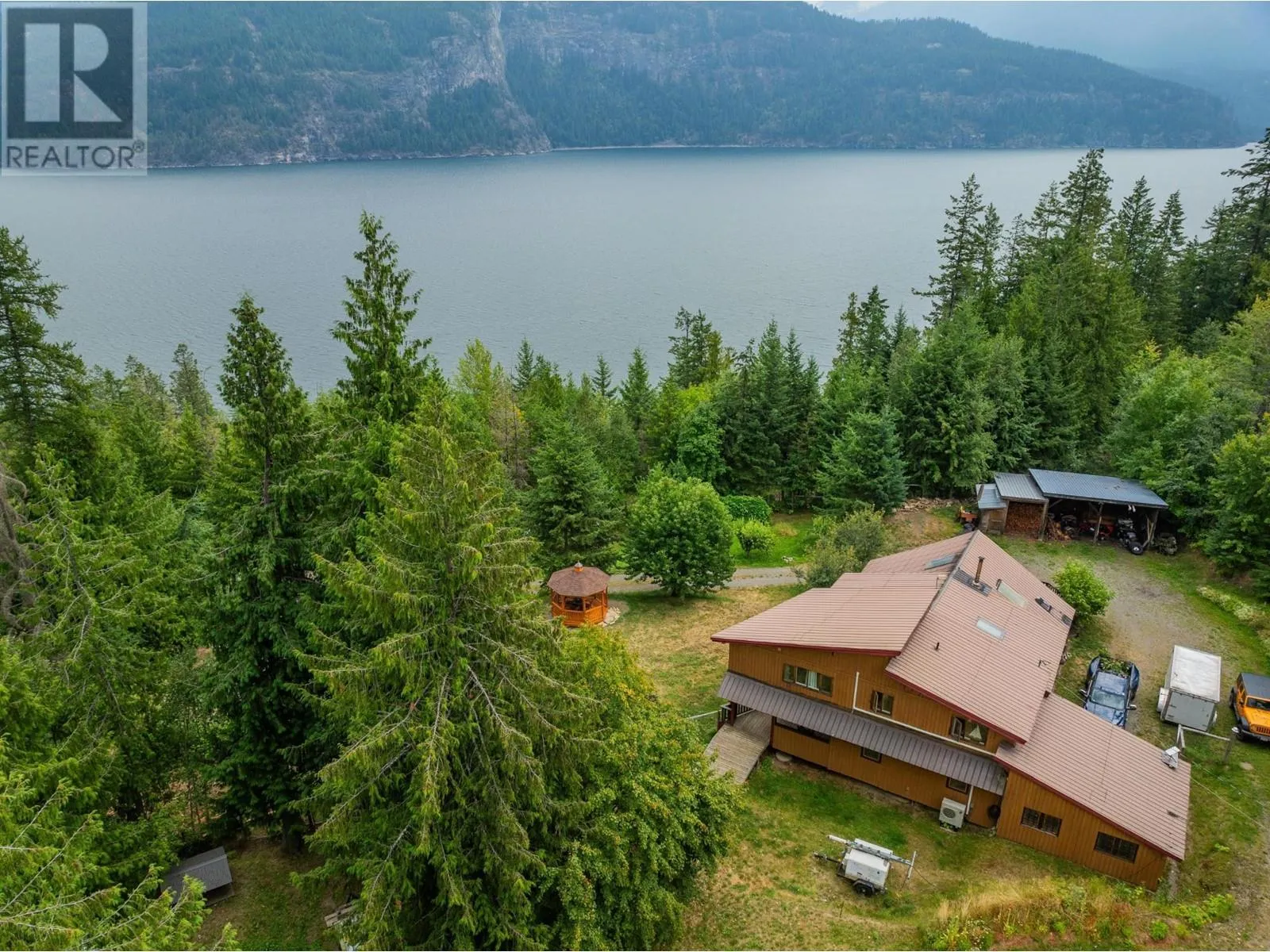 This charming log home is located approximately 8 km north of Kaslo, BC, on just over 3 acres near the end of a no-thru road. The property offers sunny, private living with an attached garage, a 3-bay carport, and ample storage areas. It also features an insulated shop wired for 220 power, a 24x32 engineered cement pad ready for a building, a 30x40 fenced garden with one acre surrounding the house fenced as well, fruit trees, grapevines, and other ornamental shrubs and trees, plus approximately 260 feet of coveted Kootenay Lake waterfront. The home boasts beautiful lake and mountain views from inside and from the expansive 1100 sq ft partially covered deck. The main floor features an open-concept living and kitchen area, with a large island perfect for extra workspace or socializing. There is also a walk-through pantry, a mudroom, and a bathroom with an attached utility room offering plenty of storage, extra counter space, and a large sink. A centrally located wood stove provides warmth throughout the house. Upstairs, you'll find the bedrooms, including the master with stunning lake views. Waterfront access is via a walking or quad trail. If you're seeking a waterfront property with ample space for a hobby farm, large gardens, or just privacy while being close to Kaslo's amenities, this could be the perfect home for you. (id:27476)