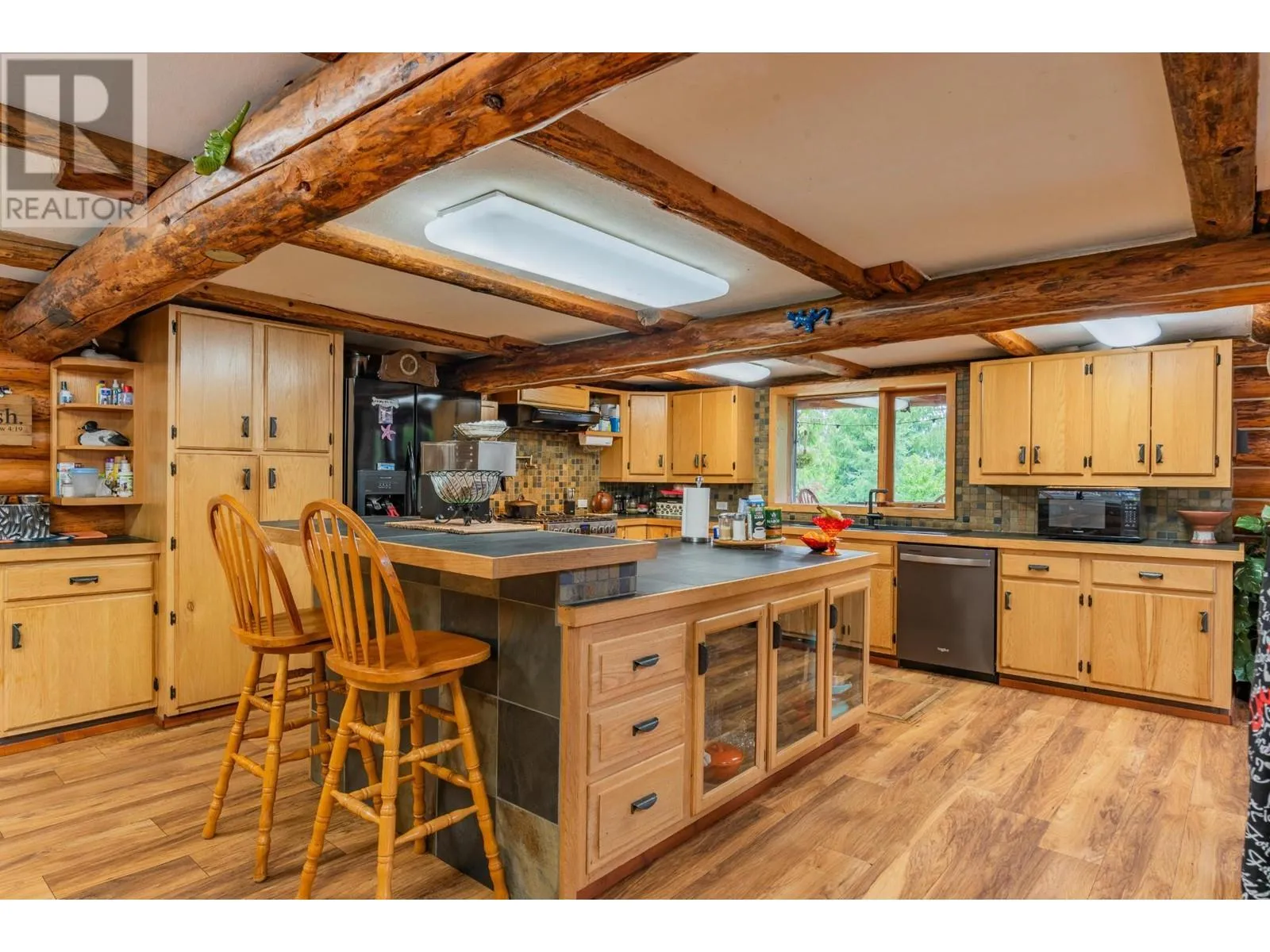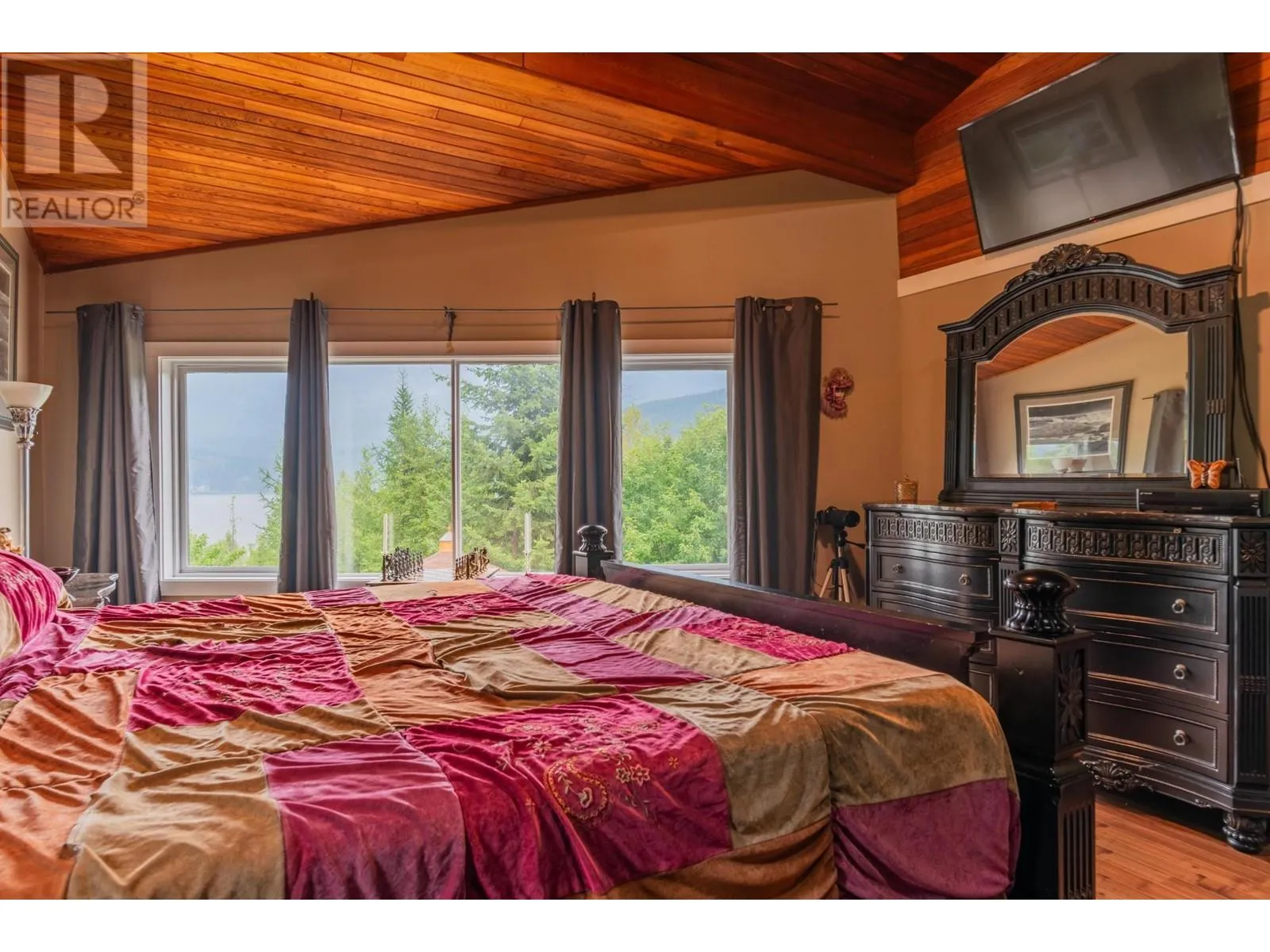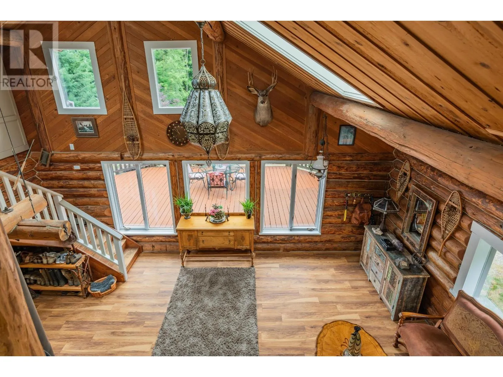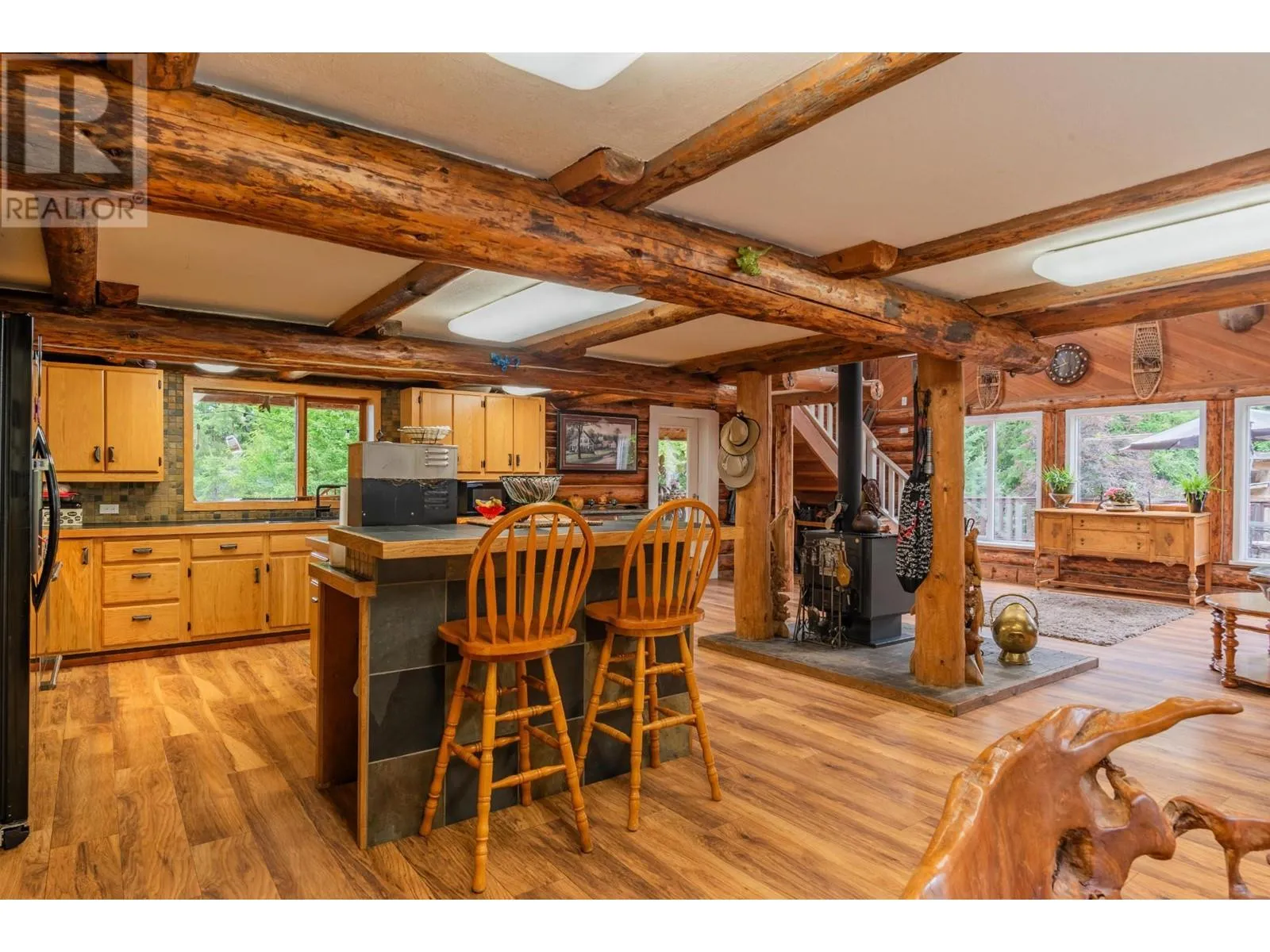 This charming log home is located approximately 8 km north of Kaslo, BC, on just over 3 acres near the end of a no-thru road. The property offers sunny, private living with an attached garage, a 3-bay carport, and ample storage areas. It also features an insulated shop wired for 220 power, a 24x32 engineered cement pad ready for a building, a 30x40 fenced garden with one acre surrounding the house fenced as well, fruit trees, grapevines, and other ornamental shrubs and trees, plus approximately 260 feet of coveted Kootenay Lake waterfront. The home boasts beautiful lake and mountain views from inside and from the expansive 1100 sq ft partially covered deck. The main floor features an open-concept living and kitchen area, with a large island perfect for extra workspace or socializing. There is also a walk-through pantry, a mudroom, and a bathroom with an attached utility room offering plenty of storage, extra counter space, and a large sink. A centrally located wood stove provides warmth throughout the house. Upstairs, you'll find the bedrooms, including the master with stunning lake views. Waterfront access is via a walking or quad trail. If you're seeking a waterfront property with ample space for a hobby farm, large gardens, or just privacy while being close to Kaslo's amenities, this could be the perfect home for you. (id:27476)