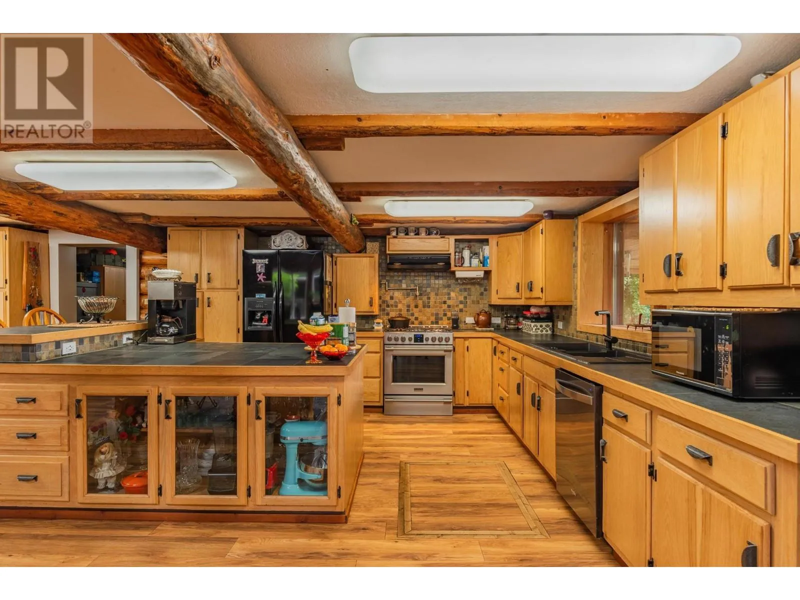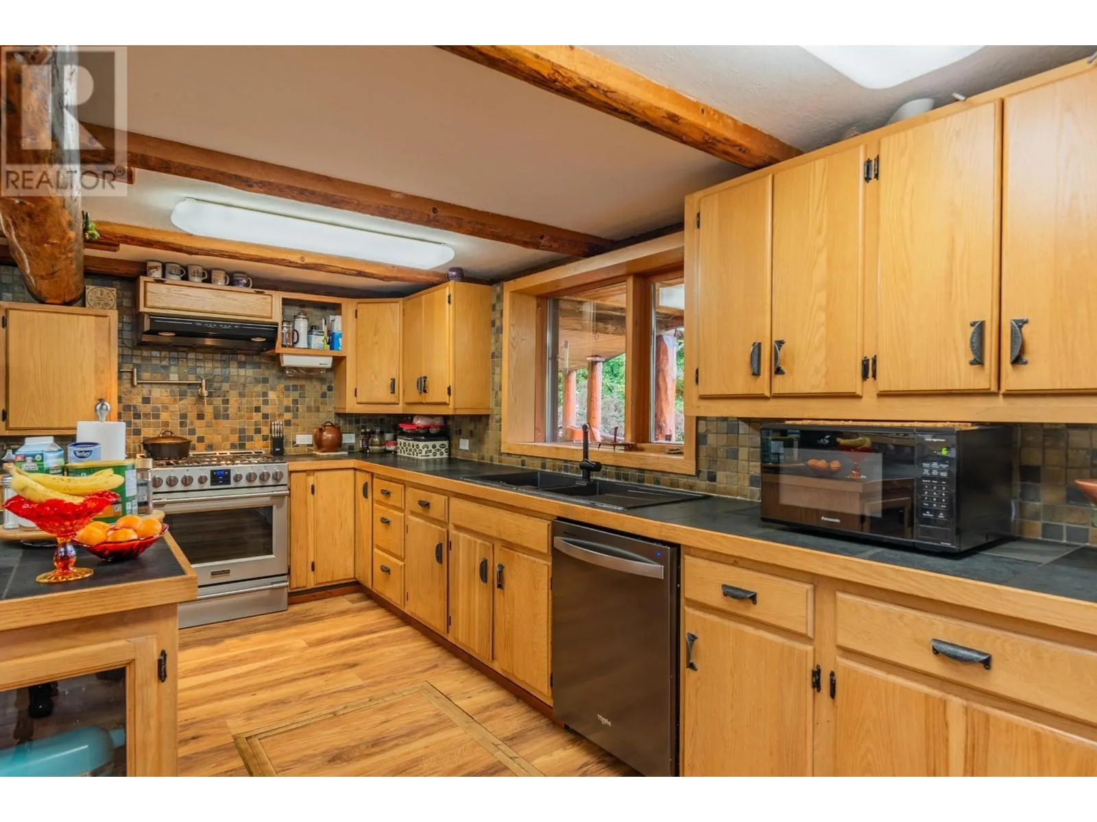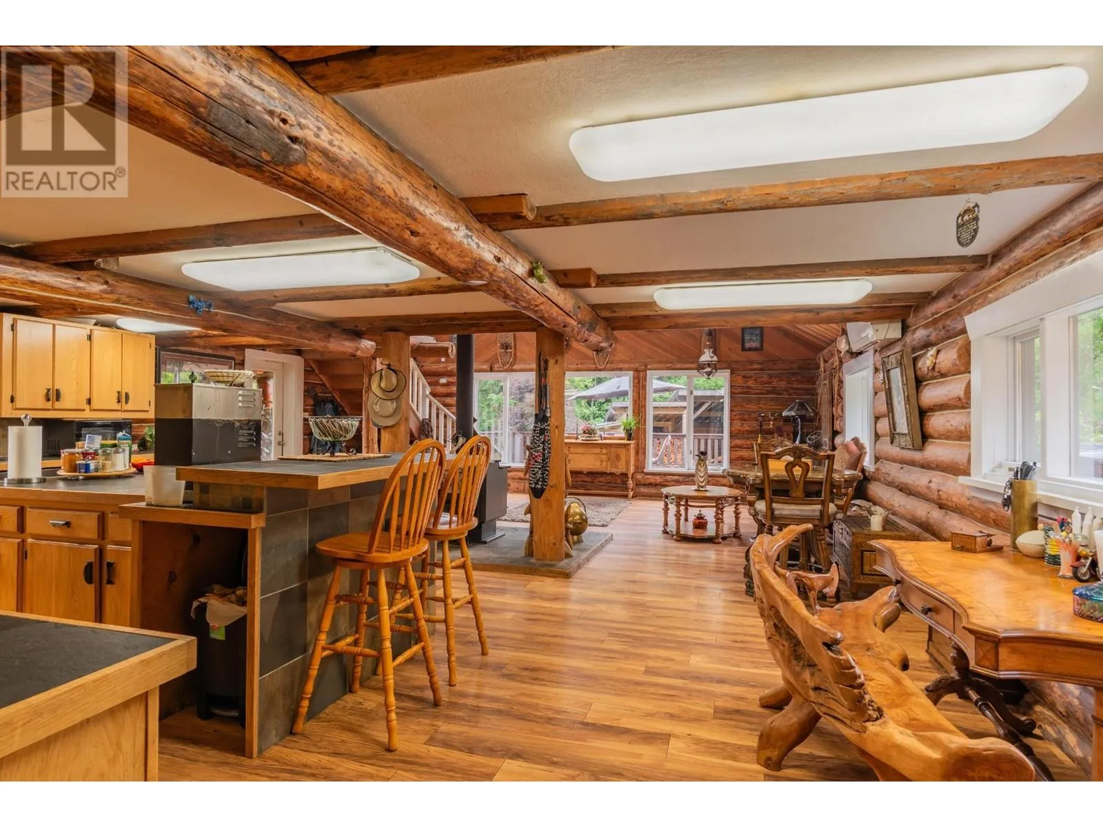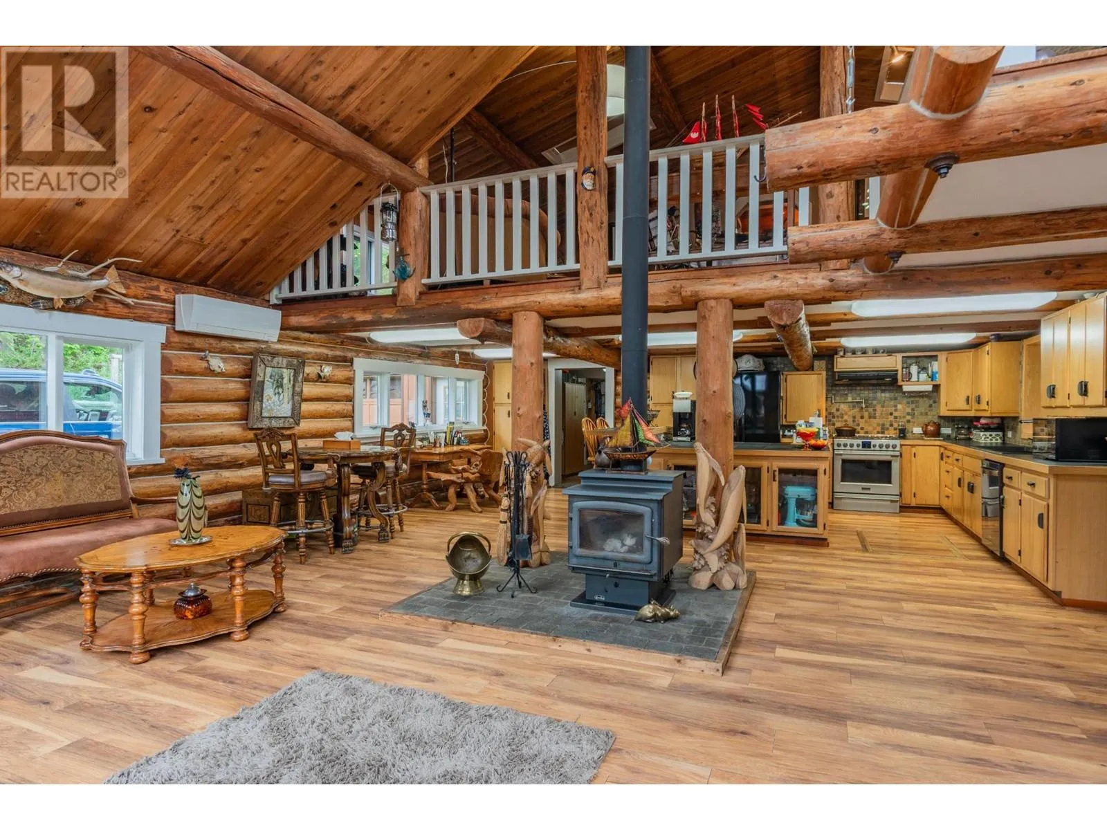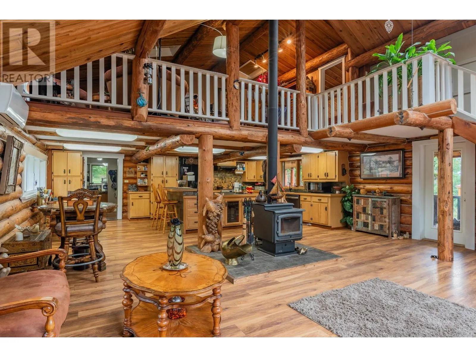 This charming log home is located approximately 8 km north of Kaslo, BC, on just over 3 acres near the end of a no-thru road. The property offers sunny, private living with an attached garage, a 3-bay carport, and ample storage areas. It also features an insulated shop wired for 220 power, a 24x32 engineered cement pad ready for a building, a 30x40 fenced garden with one acre surrounding the house fenced as well, fruit trees, grapevines, and other ornamental shrubs and trees, plus approximately 260 feet of coveted Kootenay Lake waterfront. The home boasts beautiful lake and mountain views from inside and from the expansive 1100 sq ft partially covered deck. The main floor features an open-concept living and kitchen area, with a large island perfect for extra workspace or socializing. There is also a walk-through pantry, a mudroom, and a bathroom with an attached utility room offering plenty of storage, extra counter space, and a large sink. A centrally located wood stove provides warmth throughout the house. Upstairs, you'll find the bedrooms, including the master with stunning lake views. Waterfront access is via a walking or quad trail. If you're seeking a waterfront property with ample space for a hobby farm, large gardens, or just privacy while being close to Kaslo's amenities, this could be the perfect home for you. (id:27476)