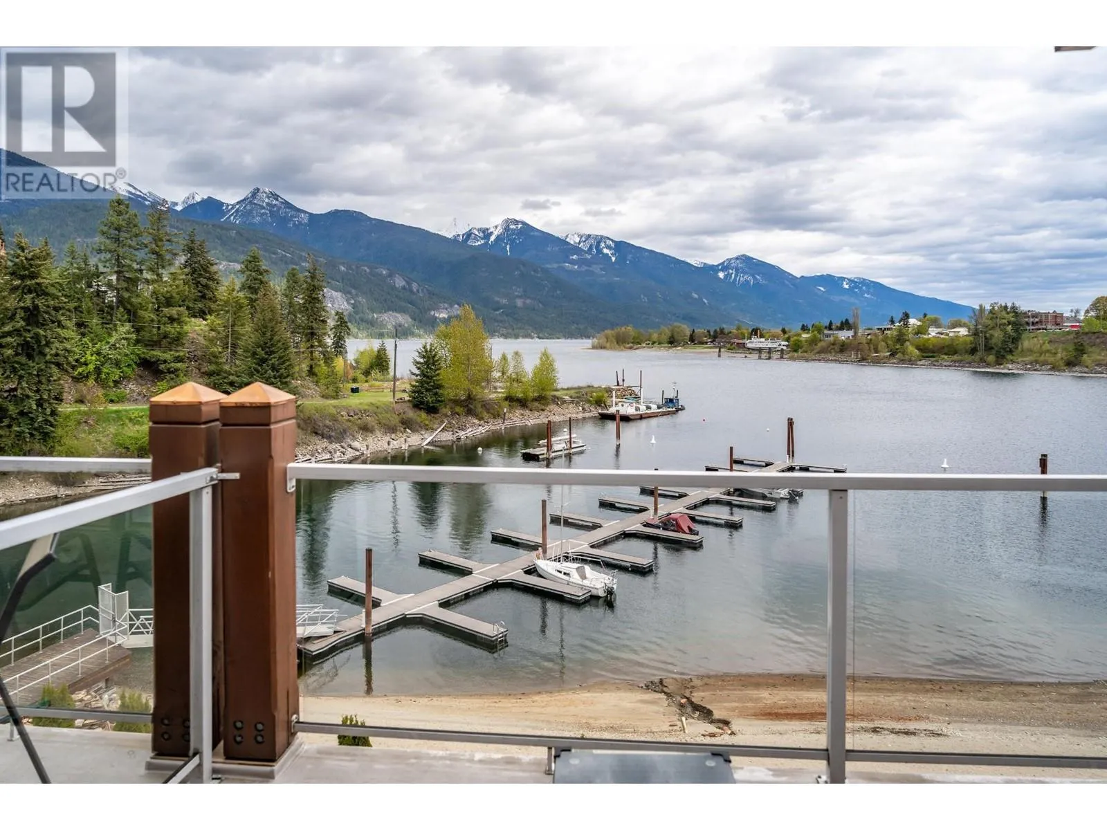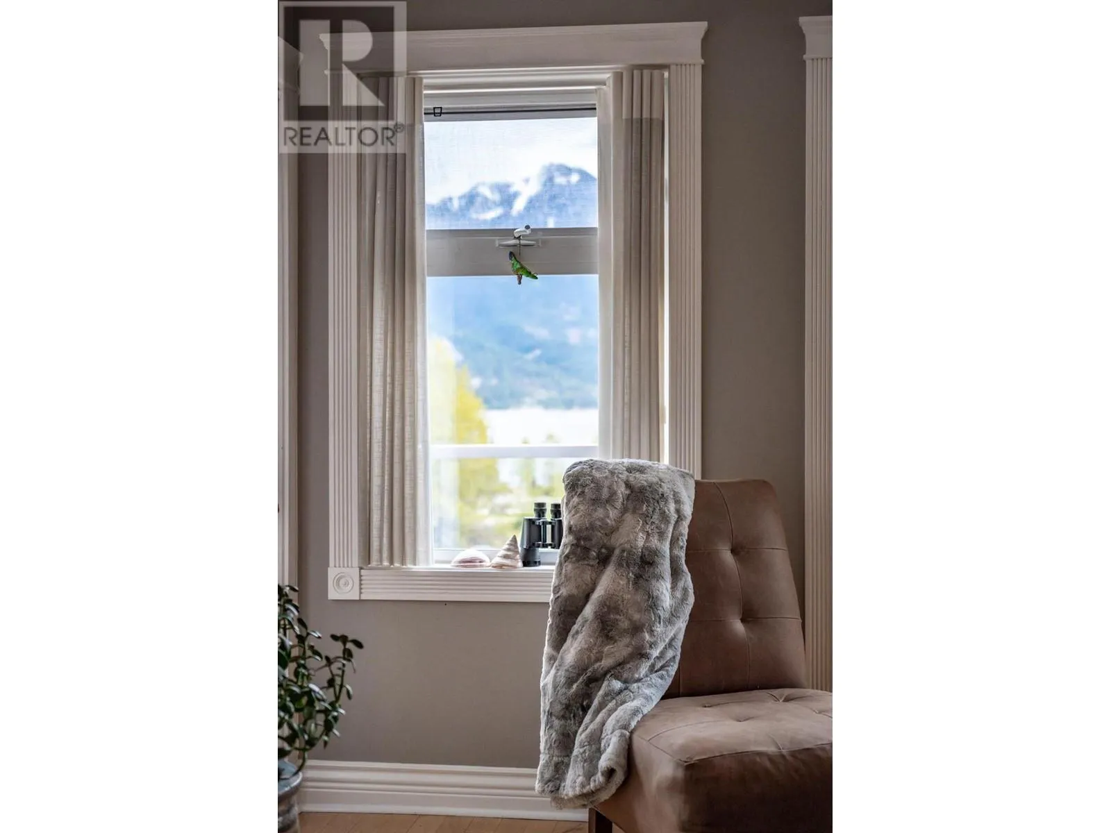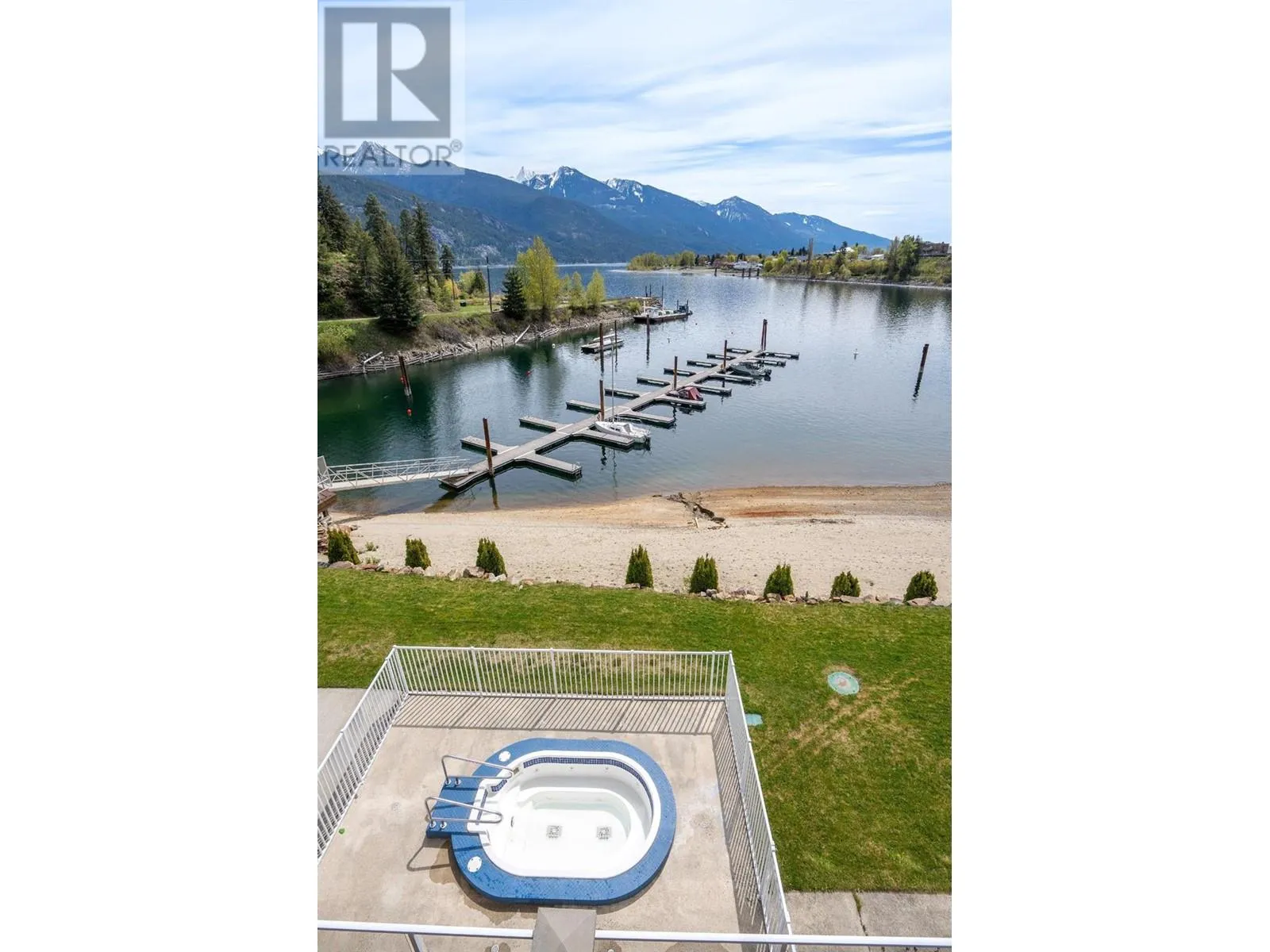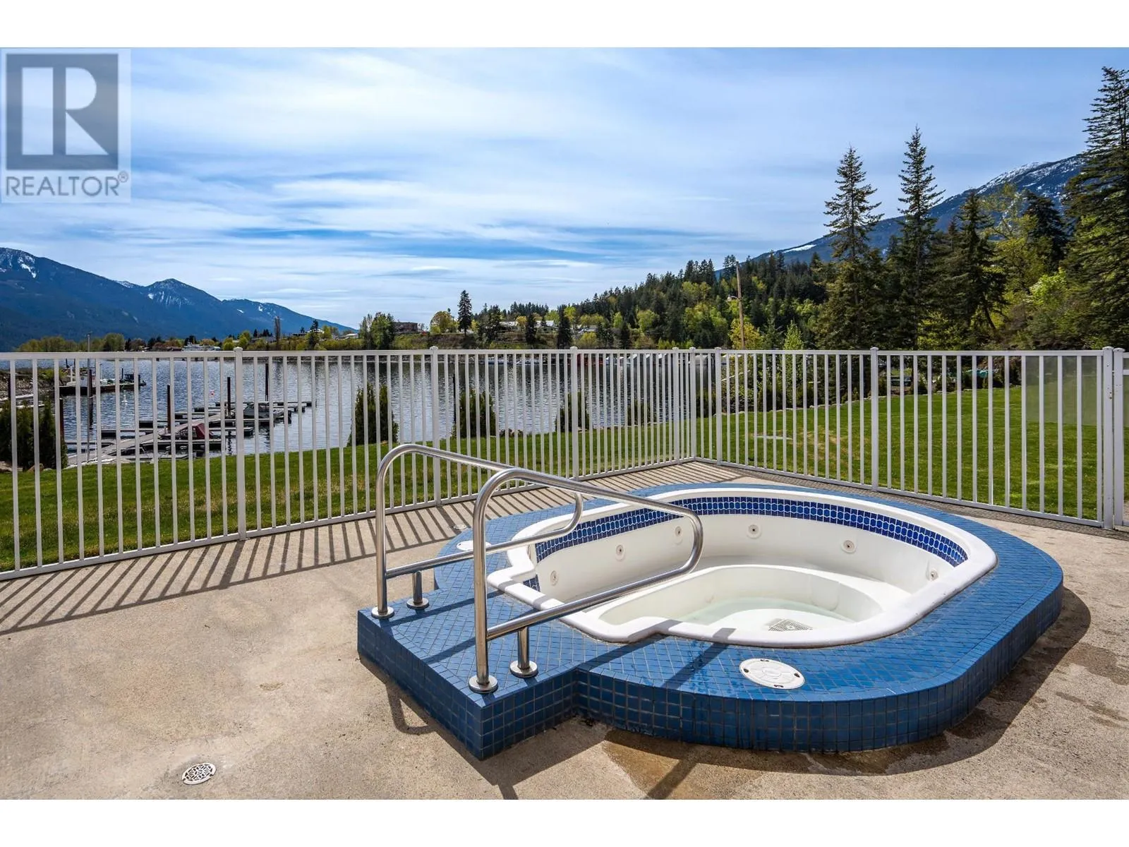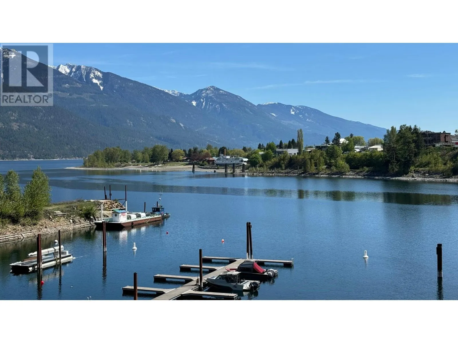 Welcome to this exquisite top-floor unit, offering a spacious 844 sq ft layout, situated on the picturesque shores of Kaslo Bay and conveniently located near all the town's amenities. This one-bedroom, plus den, and two-bathroom unit boast high-quality finishes and tasteful updates throughout. From granite countertops and quality craftsmanship kitchen cabinets to crown moldings and Italian tiles in the bathroom, every detail exudes luxury and comfort. Enjoy stunning views of Kootenay Lake and the surrounding mountains from the large windows or while relaxing on the balcony. Convenience is paramount with in-suite laundry and a storage locker down the hall. The complex also offers underground secured parking, elegantly furnished lobbies adjacent to the elevator, a communal meeting area, and an outdoor hot tub. Overall, this lakeside condo offers a perfect blend of luxury, convenience, and natural beauty, making it an attractive choice for those seeking a tranquil and hassle-free lifestyle. (id:27476)