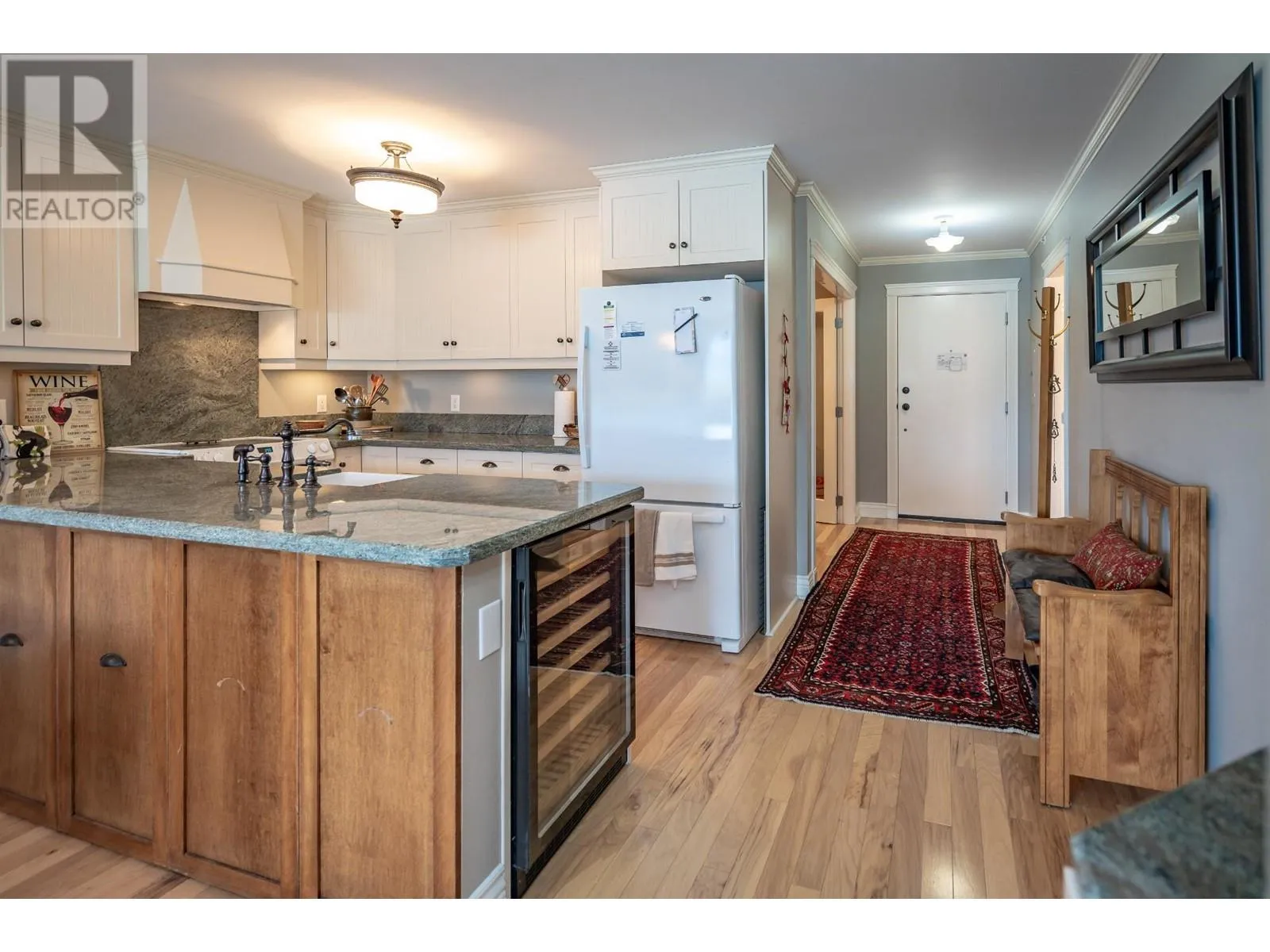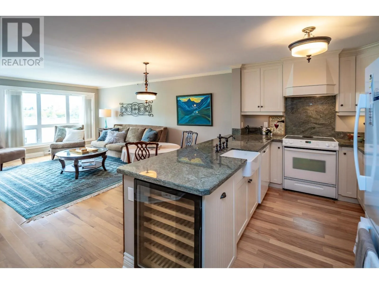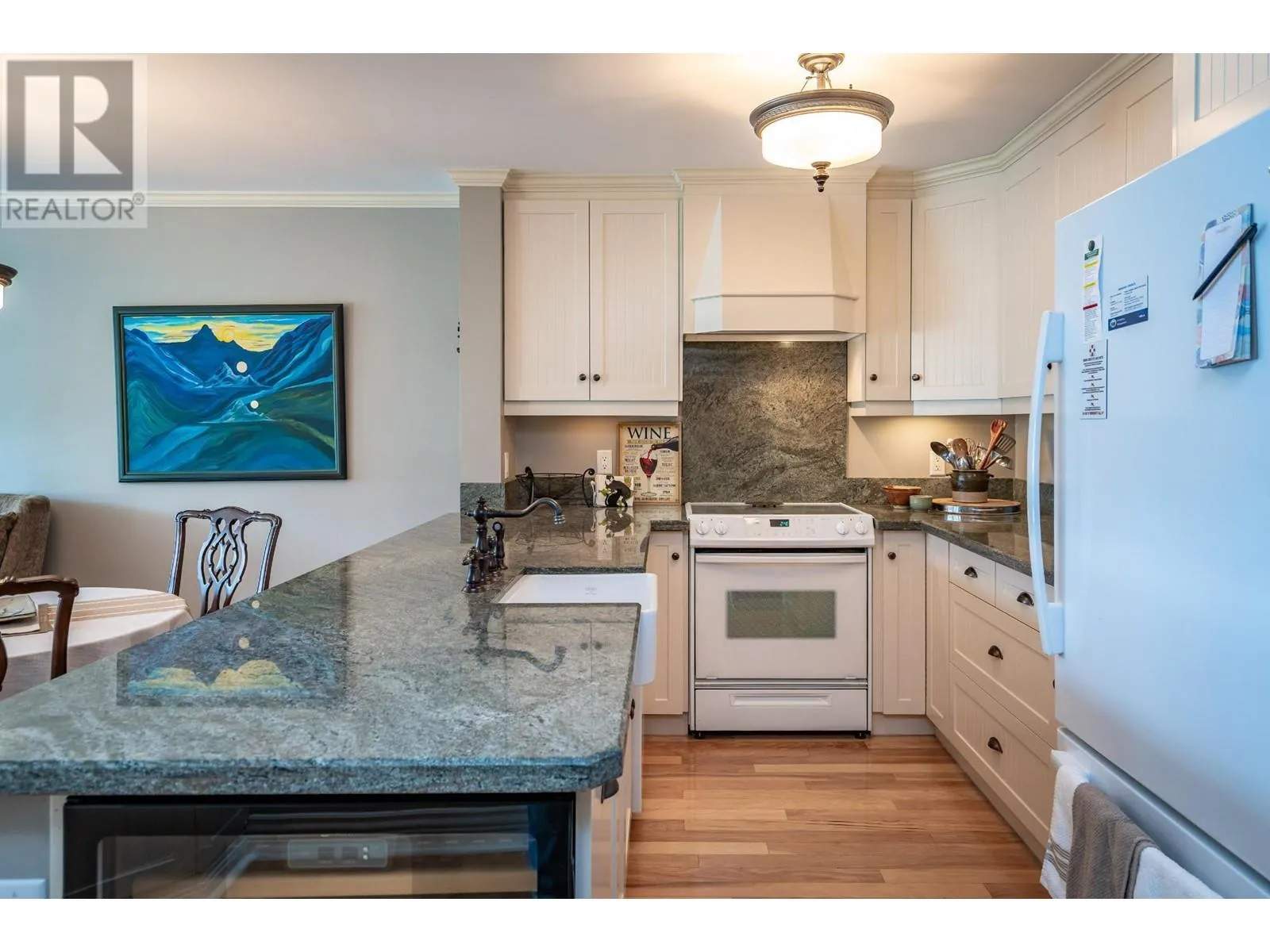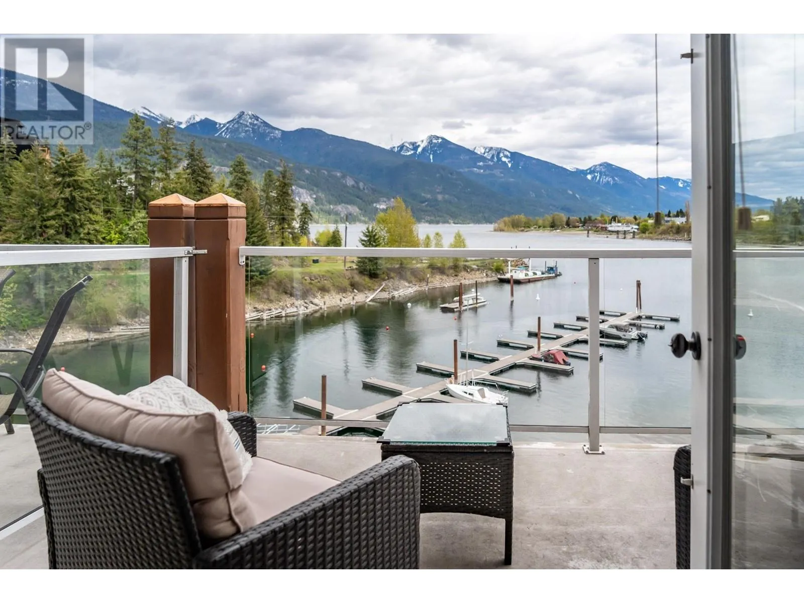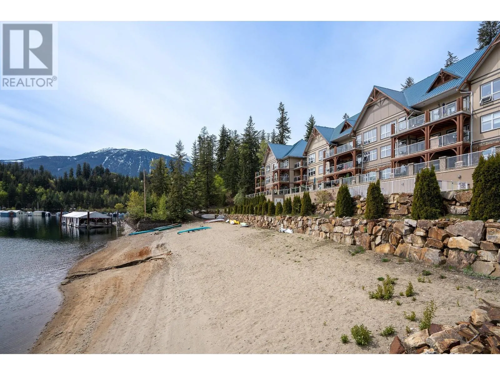 Welcome to this exquisite top-floor unit, offering a spacious 844 sq ft layout, situated on the picturesque shores of Kaslo Bay and conveniently located near all the town's amenities. This one-bedroom, plus den, and two-bathroom unit boast high-quality finishes and tasteful updates throughout. From granite countertops and quality craftsmanship kitchen cabinets to crown moldings and Italian tiles in the bathroom, every detail exudes luxury and comfort. Enjoy stunning views of Kootenay Lake and the surrounding mountains from the large windows or while relaxing on the balcony. Convenience is paramount with in-suite laundry and a storage locker down the hall. The complex also offers underground secured parking, elegantly furnished lobbies adjacent to the elevator, a communal meeting area, and an outdoor hot tub. Overall, this lakeside condo offers a perfect blend of luxury, convenience, and natural beauty, making it an attractive choice for those seeking a tranquil and hassle-free lifestyle. (id:27476)