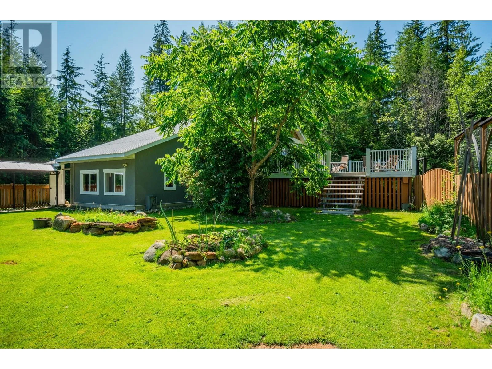 Tucked in the peaceful community of Fletcher Falls, between Kaslo and Ainsworth Hot Springs, BC, this nearly 12-acre property offers privacy and flexibility for living, working, or pursuing creative passions. Perfect for growers, it also provides direct access to a wide range of outdoor recreation. The renovated 3-bedroom, 2-bathroom home includes many upgrades such as new flooring, exterior stucco and paint, refreshed interior paint, and updated kitchen and bathrooms. A large outbuildingâformerly licensed for micro-cultivationâis fully equipped and ready for use. Additional features include a chicken coop, fenced yard and gardens, ample parking, 4 bay garage, covered boat storage, and RV hookups. Embrace the Kootenay lifestyle in this private, practical, and peaceful setting. (id:27476)