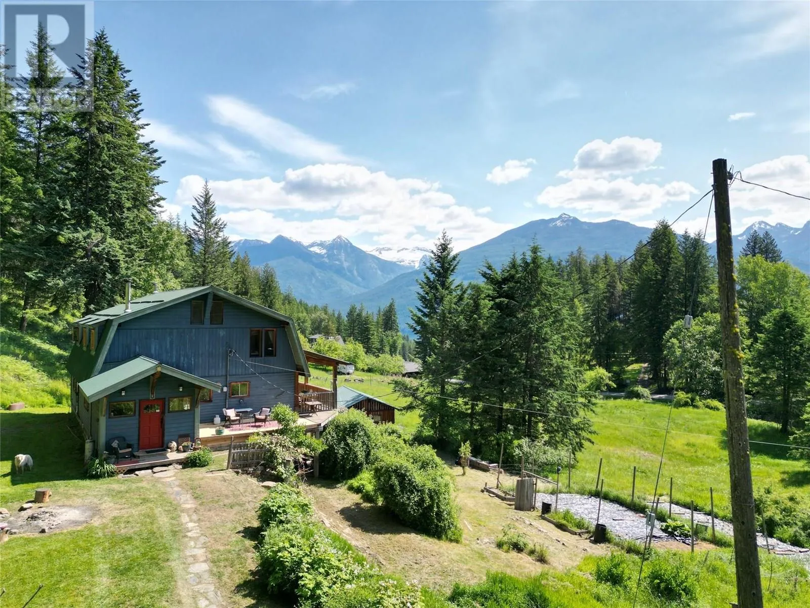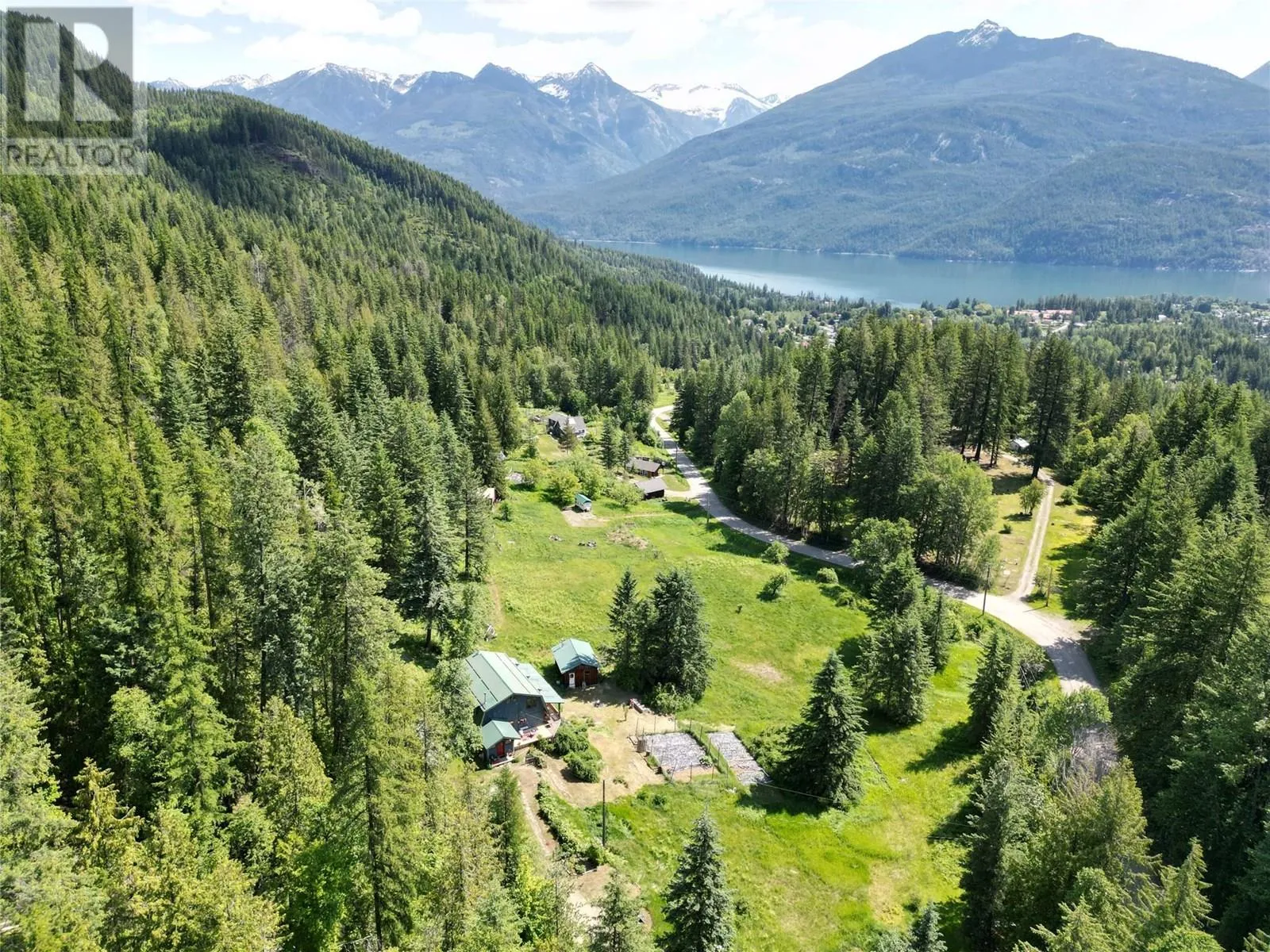 Perched on 2 acres of fertile land with sweeping views of the Purcell Mountains and Kootenay Lake, this stunning rural retreat offers both tranquillity and convenience. Just minutes from the charming town of Kaslo and the lakeâs pristine shoreline, the property delivers the best of Kootenay living. Perfectly positioned to take advantage of full southern exposure, this setting is hard to beat. Step onto the large covered post and beam deck and soak in the sunshine and panoramic mountain views. The spacious 4 bedroom, 2 bathroom home is thoughtfully crafted with natural materials throughout. Wood and tile finishes create a warm, grounded aesthetic that blends beautifully with the surrounding landscape. With vaulted ceilings and an abundance of windows, natural light pours in all day. A 1385 sq ft unfinished basement offers excellent development potential. Whether you envision additional living space, a rental suite, or a hobby area, the possibilities are wide open. Youâll enjoy gravity fed spring water, generous garden space, and endless potential to live off the land. An 18 by 28 foot insulated shop, built on a full foundation, adds exceptional value, ideal for a woodworking studio, creative space, or home office. Whether you're looking to homestead, raise a family, or simply unwind in a natural setting, this rare acreage offers the lifestyle youâve been searching for. (All measurements approximate) (id:27476)