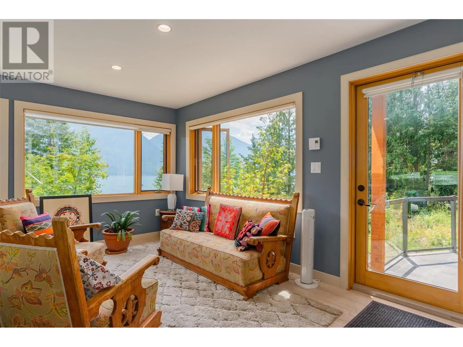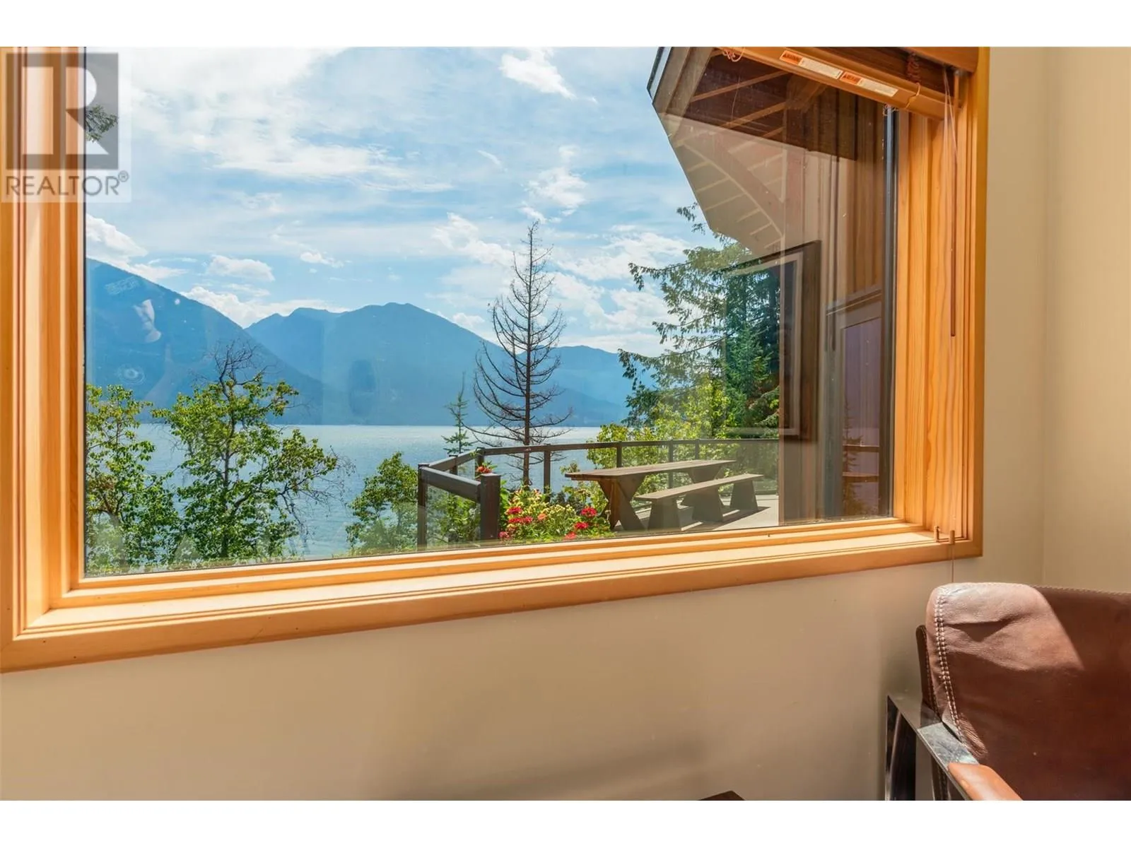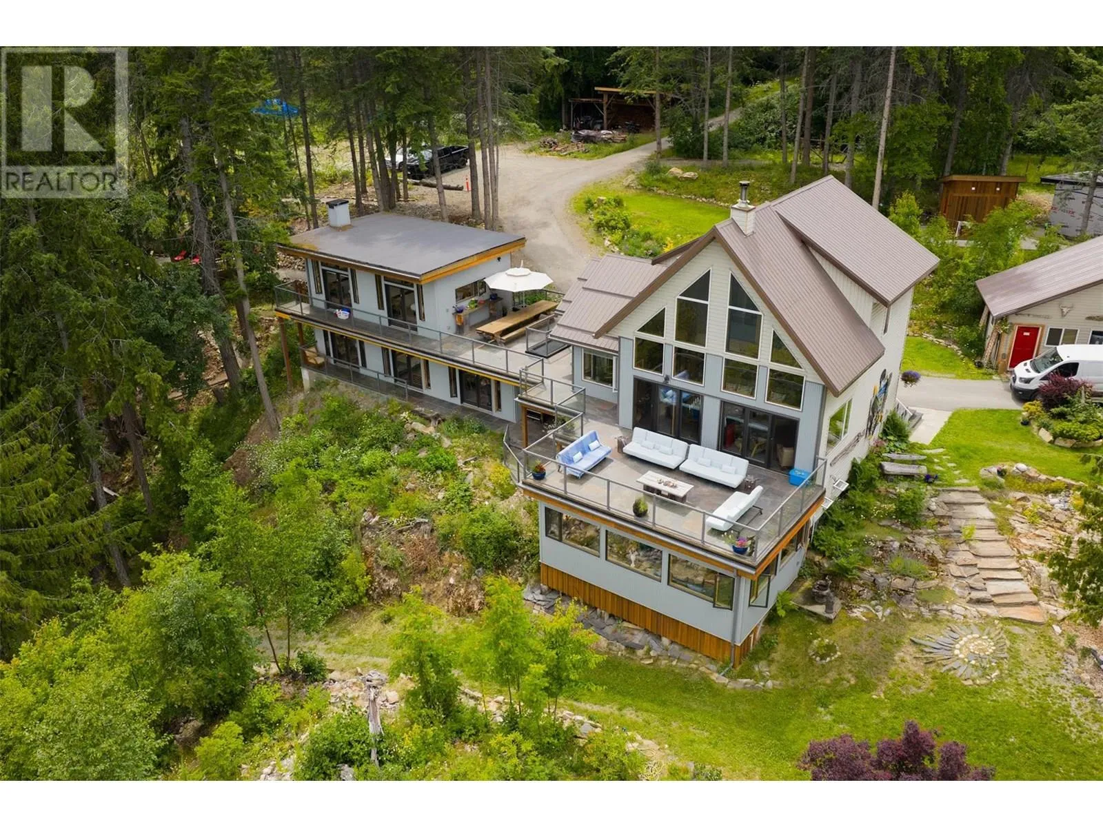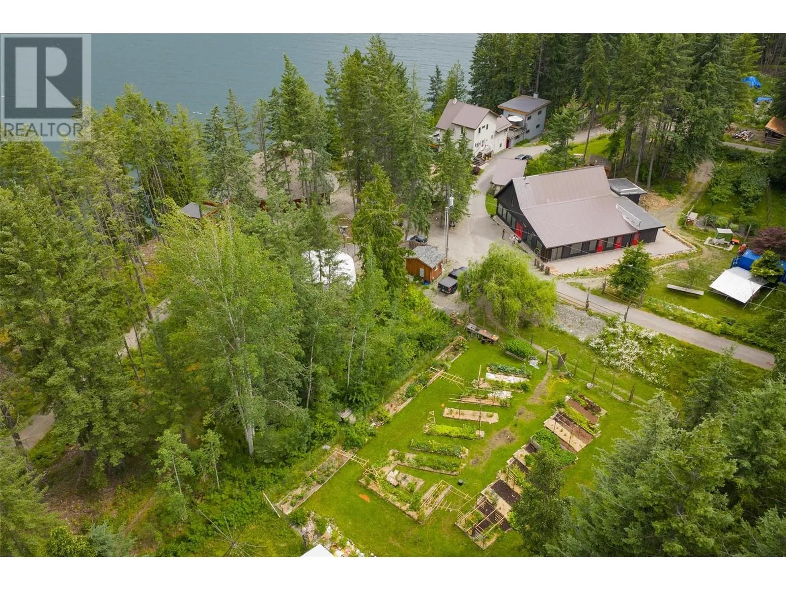 Welcome to The Sentinelâan extraordinary waterfront retreat on the shores of Kootenay Lake just minutes from Kaslo, BC. This unique 5.6-acre property is a fully operational boutique lodge and wellness centre offering luxurious accommodations and inspiring natural surroundings. The main lodge features a bright and spacious great room with stunning lake and mountain views, an open dining area, and guest lounge spaces. The property includes 10+ well-appointed guest rooms with ensuite bathrooms, radiant floor heating, and private outdoor spaces. A stunning timber-frame Maloca (roundhouse) provides a dedicated space for yoga, group workshops, and ceremonies, while outdoor amenities include a cedar sauna, hot tub, cold plunge, and over 700 feet of pristine lake frontage with private dock. The grounds are beautifully maintained with mature trees, gardens, walking trails, and quiet spaces for reflection and recreation. Commercial kitchen and dining services support on-site retreats, events, and private bookings. Ideal for continued use as a wellness centre, boutique hospitality business, or private lakeside estate, The Sentinel offers a rare opportunity to own one of the regionâs premier destination properties in the heart of the Kootenays. (id:27476)