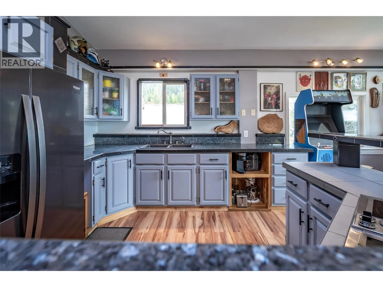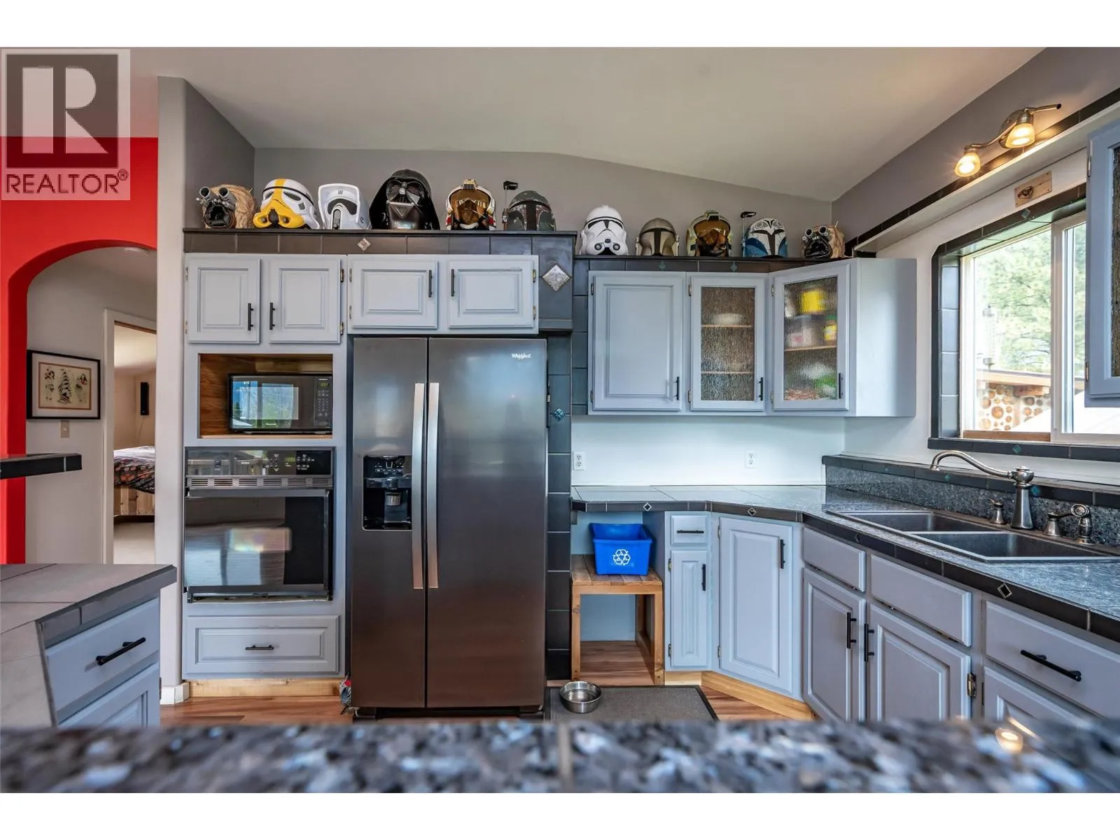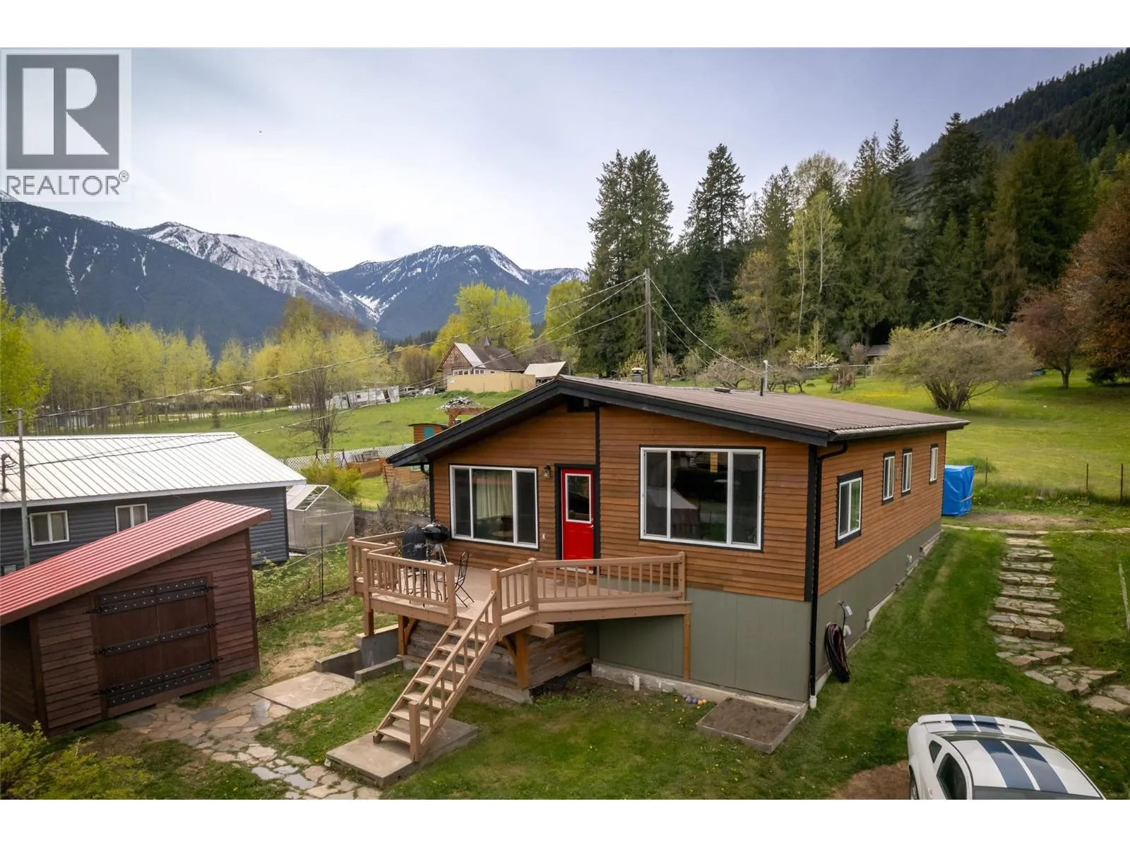 Located in upper Kaslo, is this fully renovated 2-bedroom, 1-bathroom home surrounded by stunning mountain vistas. Bathed in sunlight, the large yard provides a healthy amount of garden space, a woodshed, a cordwood constructed sauna and a detached double-car garage. Positioned to overlook the mostly level private yard, the house features a timber frame deckâan ideal spot for soaking in the views and entertaining guests. Inside, the home reveals its charm through careful renovation, showcasing custom details. A tiled hallway from the back entrance leads to two bedrooms and a full bath with convenient laundry facilities. The open-concept living, kitchen, and dining areas is the heart of the home. The brand new BlazeKing wood stove provides warmth for those winter days and the large windows provide natural light and views of Mt Loki and the Purcell Mountain range. The finished partial basement can be used as a summer kitchen, a games room or a separate guest bedroom with a ton of storage opportunities in the rest of the basement. The home is walking distance to essential amenities like shopping, health centre, school and recreational trails for walking/hiking & biking. Kaslo BC is located on Kootenay Lake about an hour north of Nelson BC in the Kootenays. Offering a lifestyle that allows you to slow down and enjoy the natural recreational opportunities the Kootenays are known for. (id:27476)