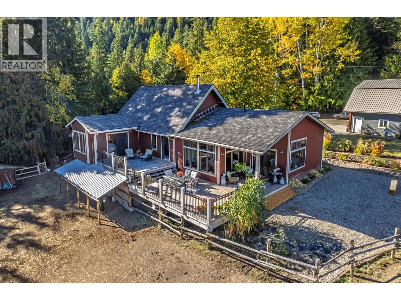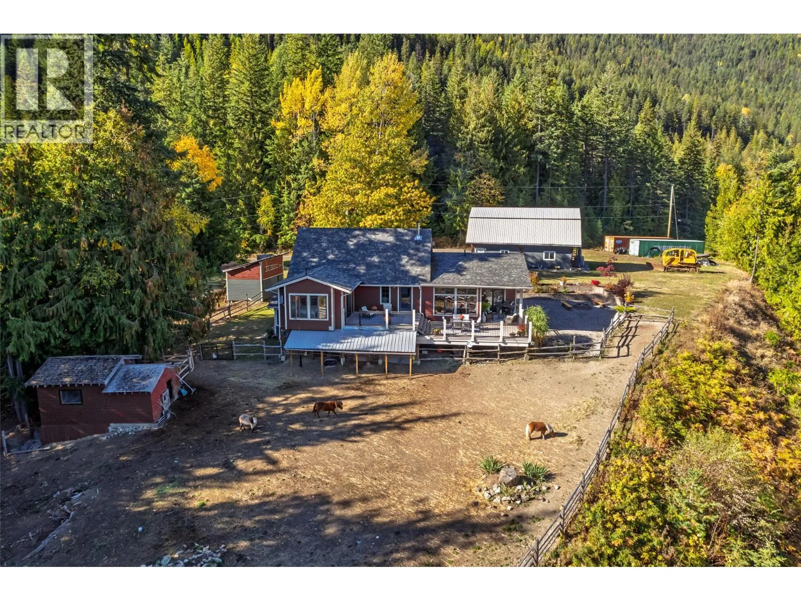 Welcome to 8840 Olson Rd, a stunning 6-bedroom, 3-bathroom home set on just over 7 acres with breathtaking views of Kootenay Lake. Thoughtfully renovated in 2012, this residence blends modern comfort with timeless character, featuring beautiful hardwood floors and striking post-and-beam style accents throughout. The gourmet kitchen is a chefs dream with granite countertops, custom cabinetry, and a functional layout ideal for entertaining. Step outside to enjoy meticulously landscaped grounds, flourishing gardens, and a spacious deck perfect for soaking in the lake and mountain views. Horse enthusiasts will appreciate the acreage's suitability for animals, while hobbyists and professionals alike will value the impressive 30x40 post-and-beam style detached shop complete with 200-amp power and a loft. Adding to the appeal, residents of this property enjoy private access to the highly desirable Shutty Bench beach, offering a true waterfront lifestyle. With its unique combination of luxury, privacy, and functionality, 8840 Olson Rd presents an exceptional opportunity to embrace Kootenay Lake living at its finest. (id:27476)