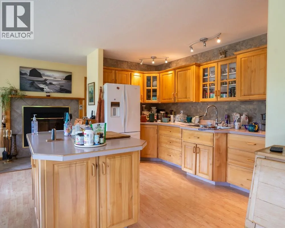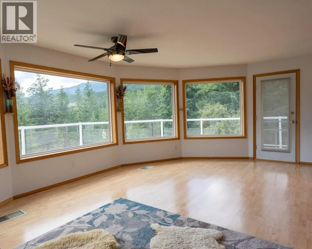 Lower Kaslo. Directly across from Kootenay Lake beach and the Kaslo River. Positioned on a quiet cul-de-sac with no homes in front, this 2,279 sq ft custom home captures open lake and mountain views with permanent green space between you and the water â the benefit of waterfront living without waterfront taxes. Built in 1999, the home offers 3 bedrooms plus a main-floor den (currently used as a fourth bedroom) and 2 full baths. The main level features a functional kitchen with walk-through pantry, dining area, living room with wood-burning insert, large laundry, and flexible bedroom/office space. Upstairs, the spacious primary bedroom and additional bedroom enjoy southern exposure and elevated views. Wraparound decks on both levels extend the living space outdoors and embrace the setting. An attached heated double garage and an 8-foot crawl space with exterior access provide exceptional storage and workshop potential â ideal for recreational equipment and seasonal gear. Walk to school, shops, and village amenities. Step outside to the beach, river trails, and lake access. Lower Kaslo properties with this level of openness and positioning are limited. (id:27476)