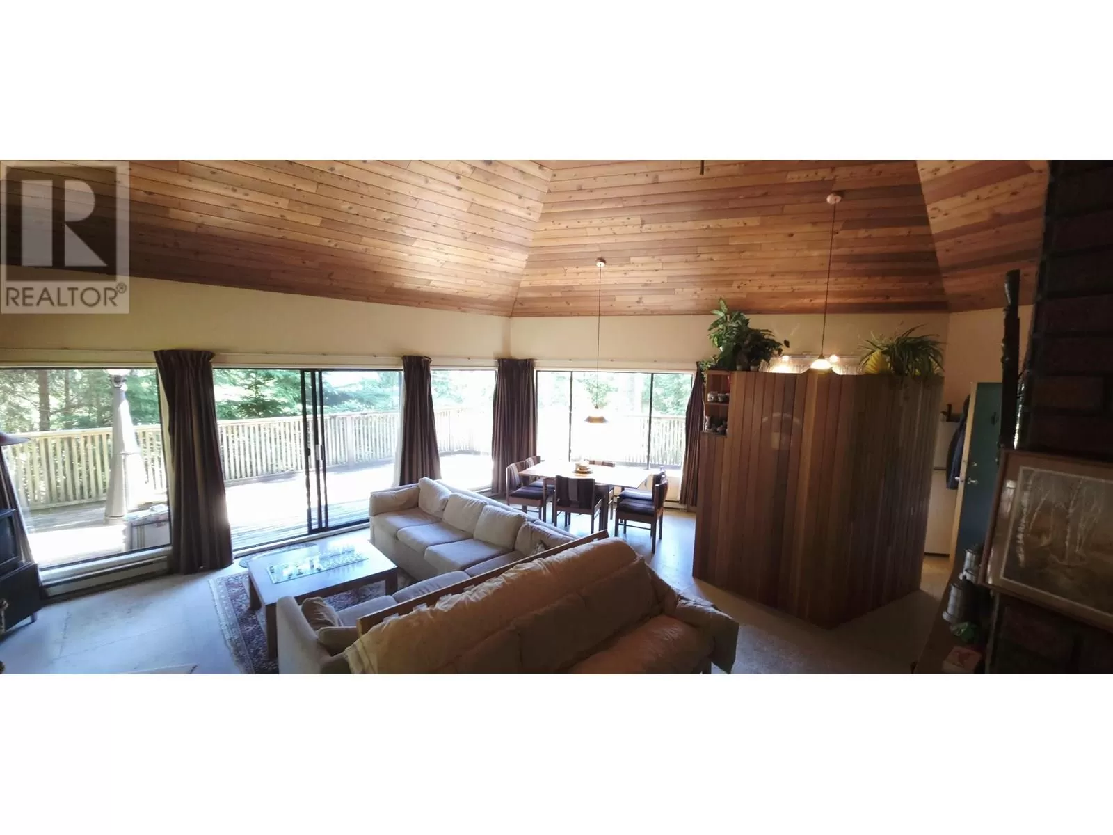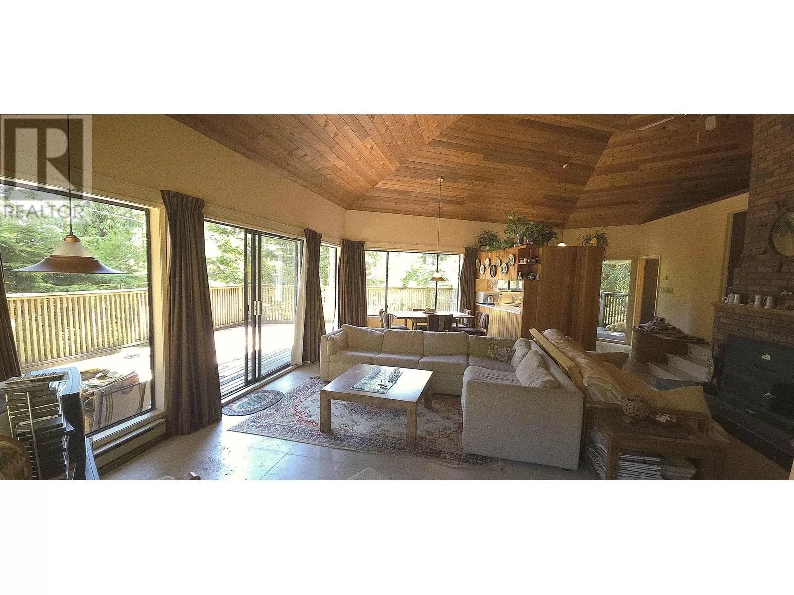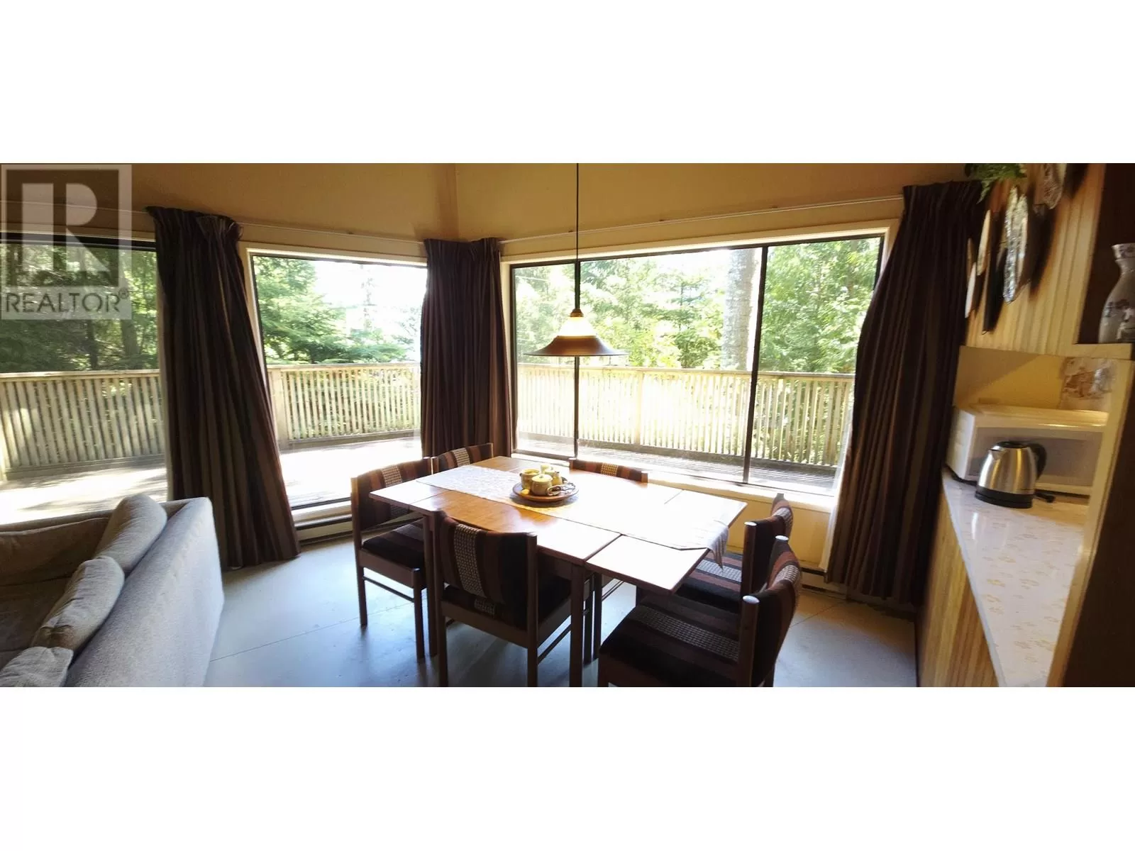 Affordable classic yurt-shaped 3-bed cabin with a peek-a-boo ocean view, steps from popular East Beach. This cabin has a vintage vibe with vaulted wood ceilings and a floor-to-ceiling brick fireplace with insert and electric baseboard heating for year-round use. Comes with all furnishings and sits on a 4889 sqft lot with a large wrap-around sundeck. Some updates include a newer metal roof, hot water tank and fridge. This is a great starter cabin that has been well-built but in need of some TLC. Located a 5 min walk from the Eastbourne dock that is serviced by a quick 30 minute direct water taxi ride from Horseshoe Bay or a foot ferry from Langdale ferry. Great cell service and internet is available. Call for more details today! (id:27476)