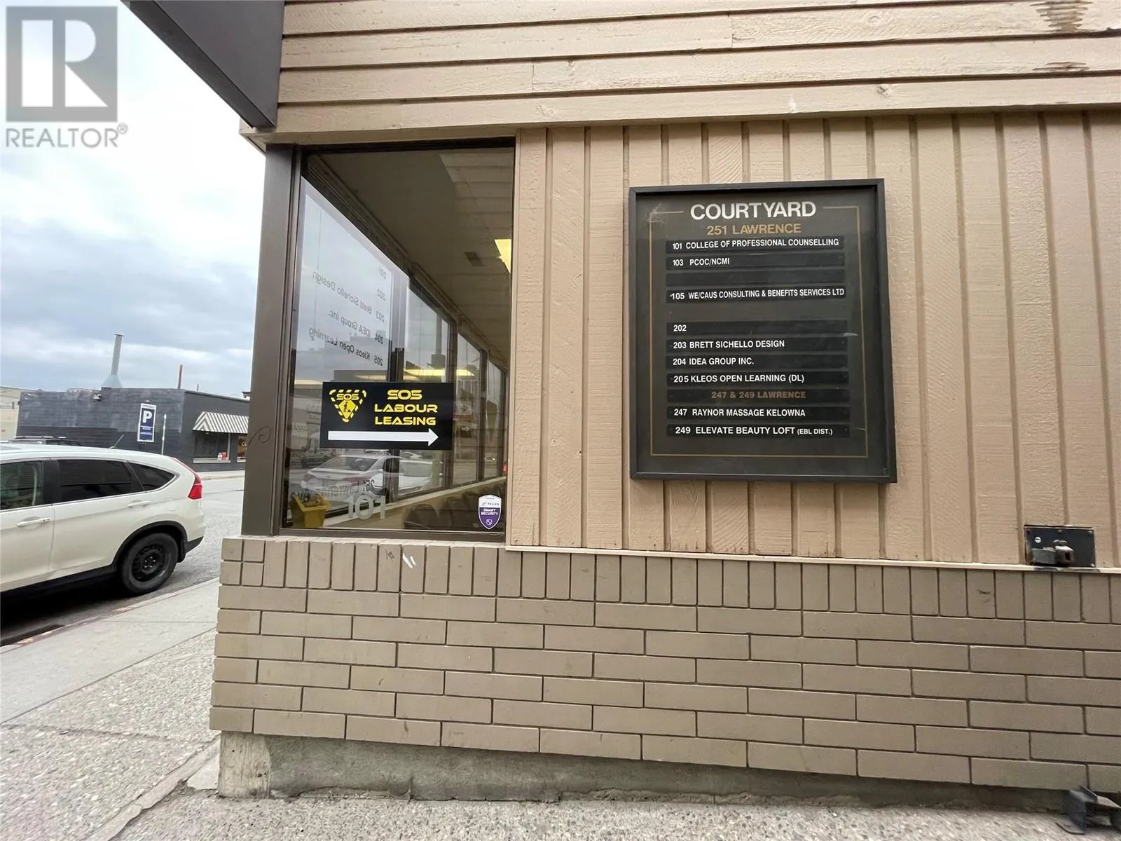 247 Lawrence Avenue is a 1,654 SF office space featuring six varied-sized offices, dual access from a charming courtyard and a convenient parking lot. Nestled in Kelowna's central downtown, adjacent to the new Water Street By the Park development, this unit offers the perfect blend of professional and leisure environments. Just steps from the beach and numerous restaurants, it includes essential amenities like a kitchen and washroom. Lease is triple net. Gross monthly rent listed includes additional rent estimated at $7.00 per square foot for 2024. (id:27476)