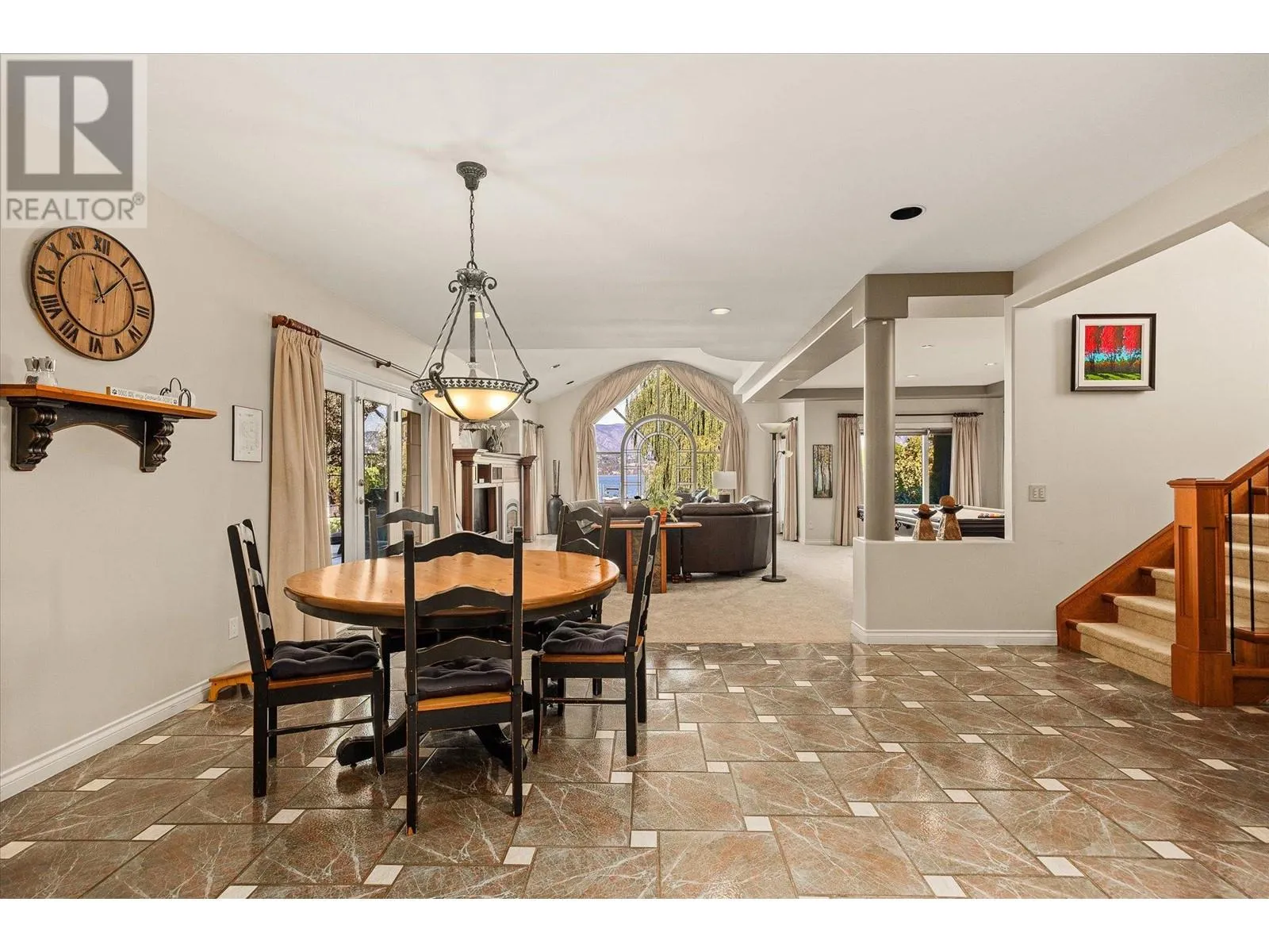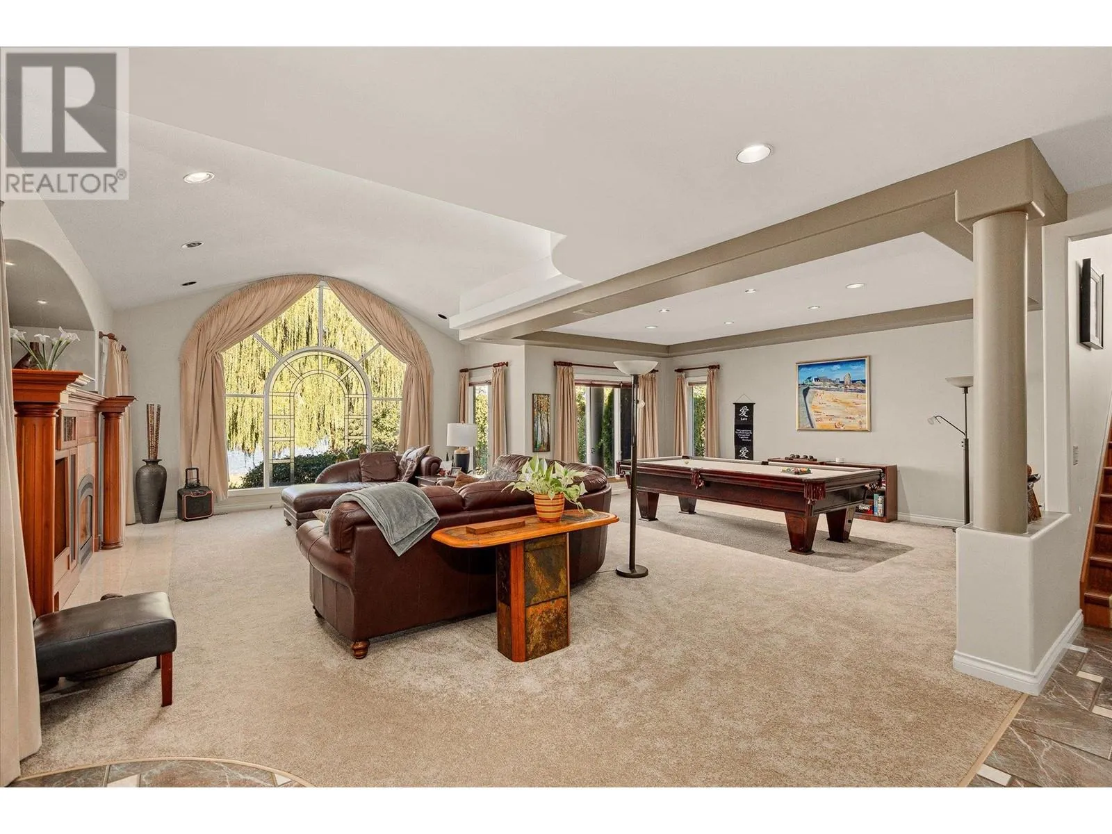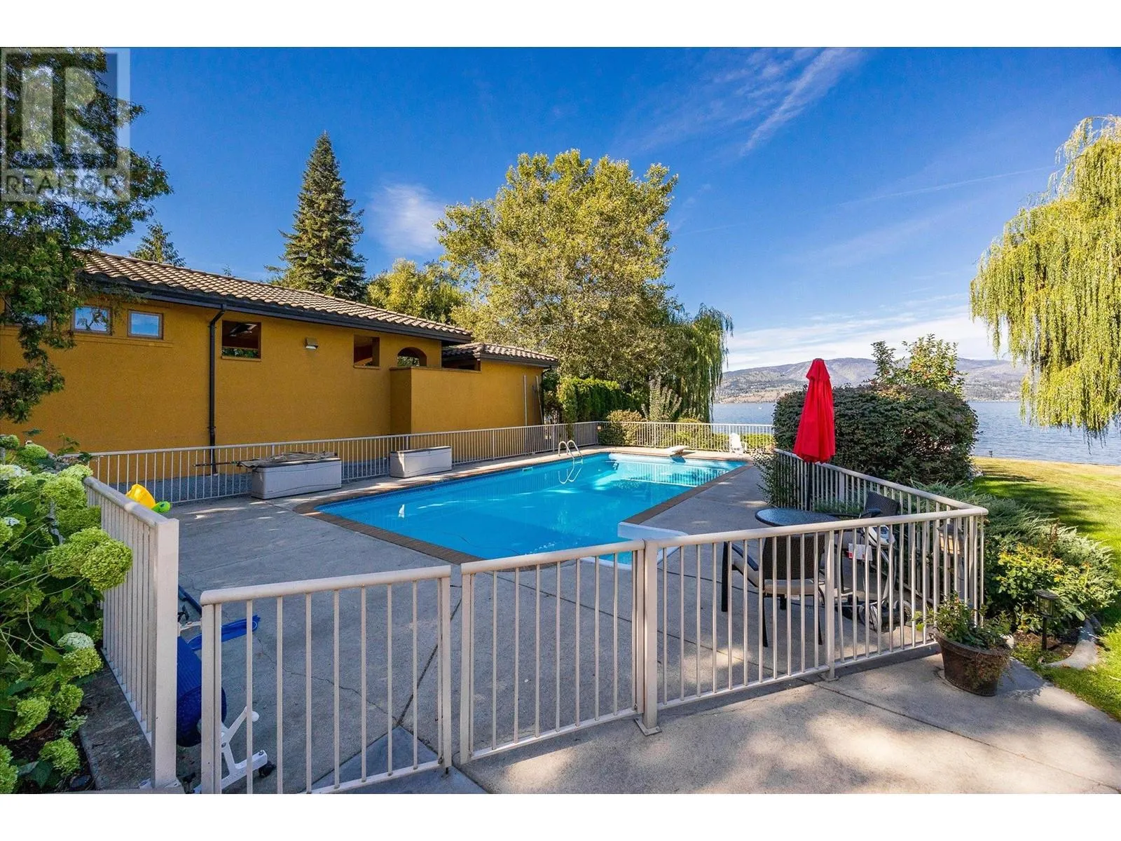 ELEGANCE AT ITS FINEST is showcased on one of Kelownaâs most prestigious streets! Tree lined and private, this 7,000 sq. ft home sits on a picture pretty .63 acre lot and boasts an oversized entry driveway, a spacious 4 car garage, and a welcoming outdoor oasis. Enter the bright foyer to a grand entertainment space with a crafted rich wood bar, a formal dining room and a living space with an impressive fireplace feature. High ceilings throughout! The impressive arched windows are frames to the remarkable outdoor settings and stellar lake views. The craftsmen style kitchen is a chefâs dream! High-end appliances, granite countertops and a custom curved island for family and friends to gather ...Feel the timeless elegance throughout! Head on over to the large family entertainment area for more memories to be made. Downstairs offers bonus spaces for a variety of activities. The upstairs takes you to the spacious 6 bedrooms, including the primary with a private balcony with lake views, a master 5 piece ensuite and a custom walk-in closet. On the adjacent side youâll find the massive bright office and the nanny suite with small kitchen and private space. Great for guests! Out in the beautifully grassed yard youâll enter into a private outdoor space like no other. A full depth 18 x 36 fenced pool is spotlighted as you pass the massive stone-laid lounging area and the perfectly situated hot tub. Nestled at the waterâs edge a grand willow tree welcomes you out to the over-sized private dock where summer fun awaits you! VIEW TODAY! (id:27476)