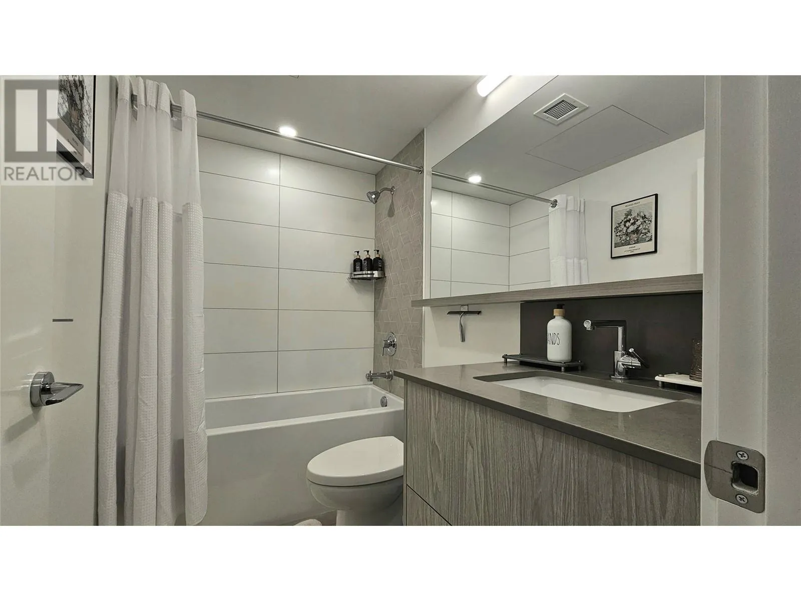 Experience modern urban living in this stunning junior one-bedroom home, perched on the 13th floor of the elegant Bertram building in vibrant downtown Kelowna. This west-facing unit bathes in natural light, offering views of Okanagan Lake, the surrounding mountains, and the bustling city below from a spacious 100 sqft covered deck. Designed with contemporary style, this home boasts sleek, high-end finishes that perfectly complement the luxurious lifestyle Bertram is known for. Enjoy access to unparalleled amenities, including a rooftop sky pool with lake views, a hot tub, social lounge, co-working spaces, fitness center, community garden, bocce court, and even a pet-friendly dog run and wash station. Pets are warmly welcomed (up to two dogs, two cats, or one of each with no size restrictions). Constructed with care and precision by the esteemed Mission Group, this concrete building ensures both quality and sophistication. With its prime location just steps away from Kelownaâs best restaurants, shops, cafes, and the beach, this property is perfect as a rental investment, a stylish retreat, or student housing near the new downtown UBC campus. A turnkey home: Furniture, decor, kitchenware and accessories could be included. Preferred showing time is between August 27th to August 31st. (id:27476)
