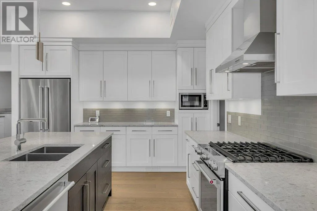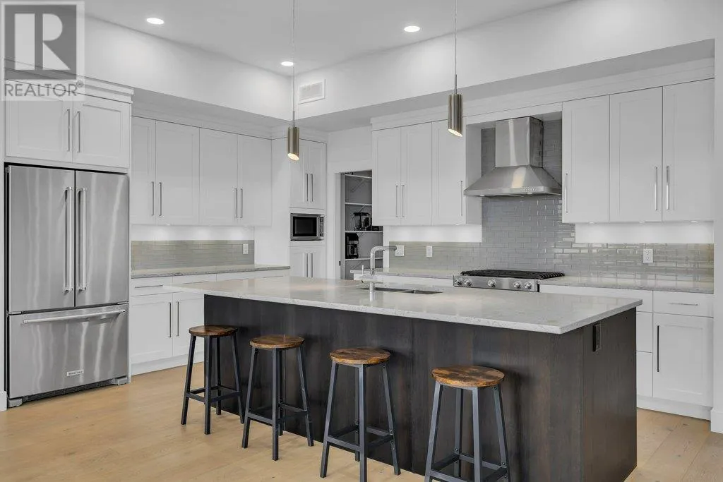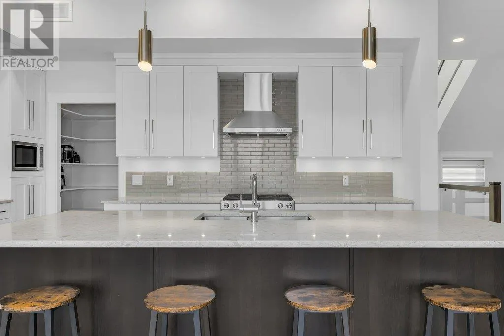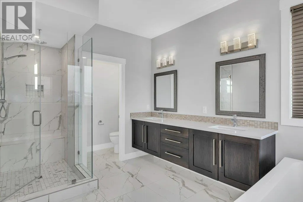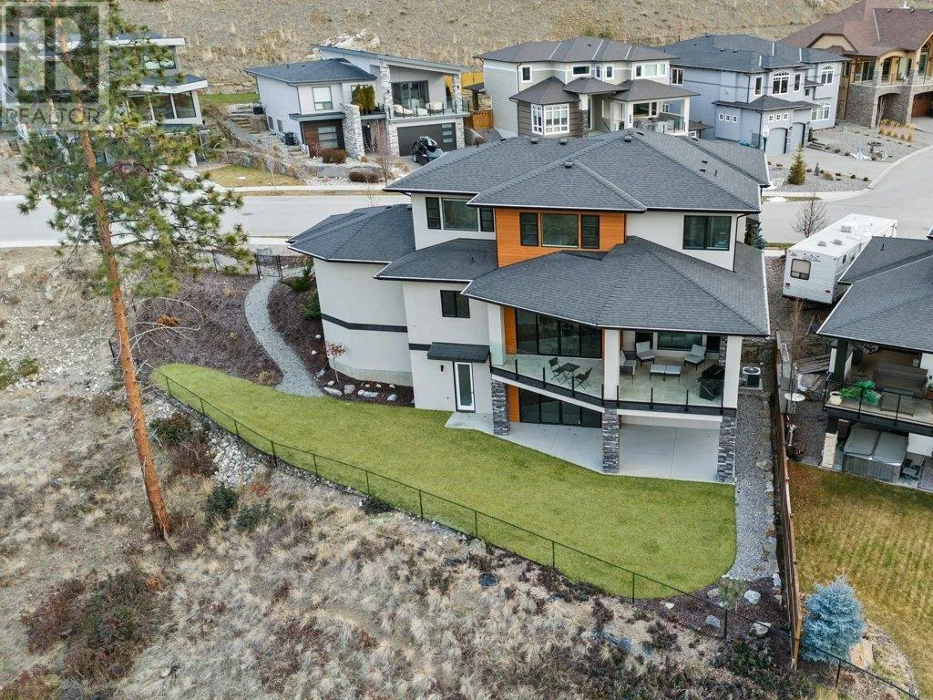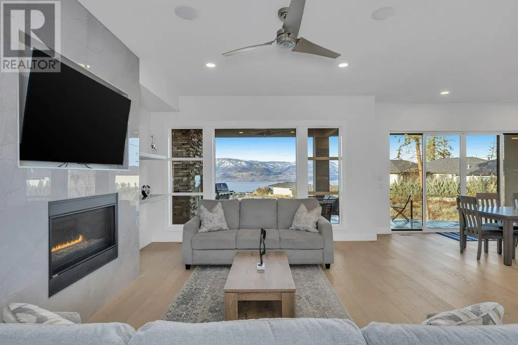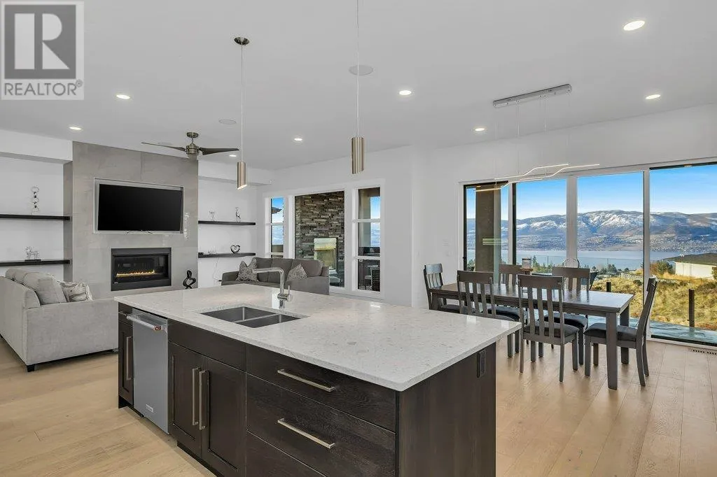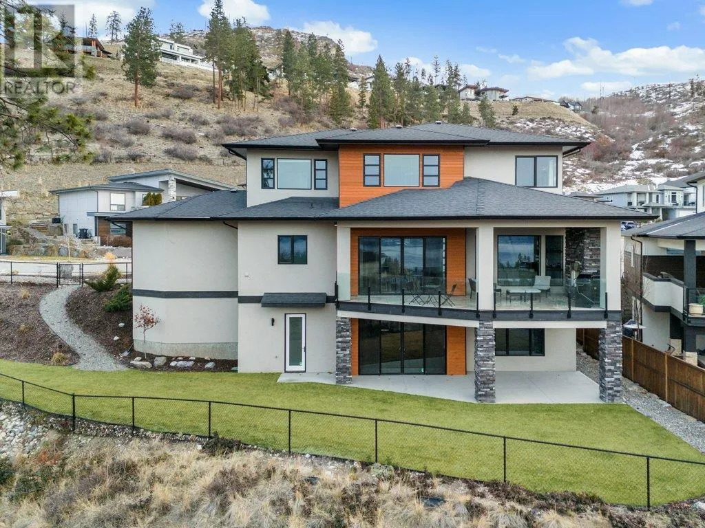 Welcome to this stunning lakeview home nestled in the heart of the prestigious Kettle Valley neighborhood. Just steps away from parks, amenities, waterpark, pickleball courts, & top-rated schools, location offers the perfect blend of convenience & luxury living. Spanning approx 4700 sqft across 3 levels, home boasts breathtaking lake views from every floor. The fenced yard is ready for your dream pool, creating a setting for relaxation & entertainment. Rough-in for pool & hot tub completed. As you step inside, you'll be impressed by the luxury finishes throughout. The open-concept main living area seamlessly flows on to the deck, offering unobstructed lake views, a fireplace, and ultimate privacy with no neighbors beside or behind you. This 5-bed, 4-bath home is designed with entertaining in mind. The gourmet kitchen takes center stage on the main floor, with a walk-in pantry. Also incl an office & a mud room leading to the triple garage. Upstairs, the primary bedroom is a true retreat, featuring a walk-in closet & spa-inspired ensuite with a stunning soaker tub that overlooks the lake. Incl heated floors & rainshower. Additionally, there's two generously sized bedrooms & a flex area. Lower level is the ideal space, with a walkout basement leading to the potential pool/hot tub area & green space. Incl a Rec room, wet bar, two bedrooms, fitness room, media room, & full bath/changing room with exterior access. Perfect home to embrace the Okanagan lifestyle. (id:27476)