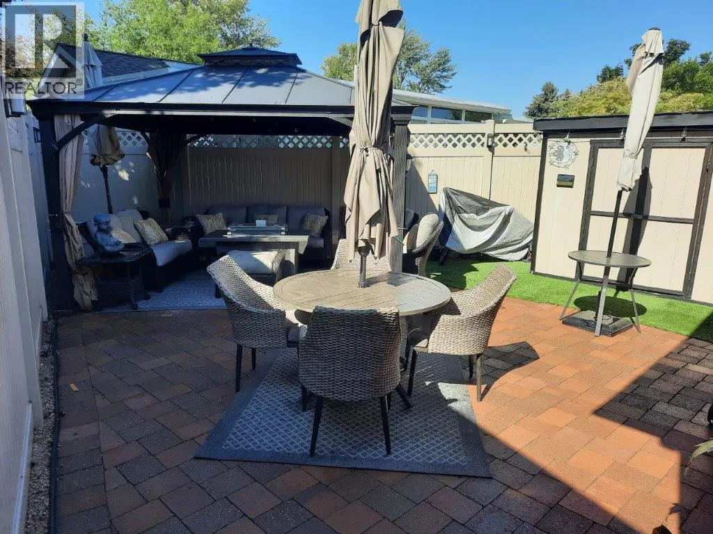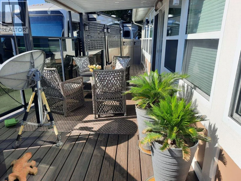 Exquisite Park Model home is priced to sell! The luxurious, open concept kitchen features custom Kekuli Bay cabinetry, granite countertops and stainless high end appliances. The bathroom has Kekuli Bay cabinetry, custom design window and sensor lighting under the vanity. There are solar tubes in the kitchen and bathroom. In floor heating and custom blinds throughout enhance the elegance of this home. The Hot Water on Demand, Reverse Osmosis water system and water softener are included. For your sleeping comfort, there is a king bed in the spacious bedroom. Enjoy the maintenance free backyard where you will find the hard top gazebo, brick patio and an 8' x 8' wired and insulated shed for all your projects. The wrap around composite decking with smoked glass railing is the perfect spot for entertaining family and friends. Underneath the Park Model has been sealed with plywood. For your convenience, there are sliding storage compartments under the unit. There is no Property Transfer Tax. Long and short term rentals allowed. Maintenance fee for 2025 is paid annually. Maintenance Fee includes security, water, sewer, use of the amenities, maintenance of the common areas and roads, snow removal and garbage disposal area. The site is registered with the Federal Government and the Park Model ownership is transferred by Bill of Sale. Holiday Park Resort has many amenities: pools, hot tubs, restaurant, golf course, pickleball court plus more. (id:27476)