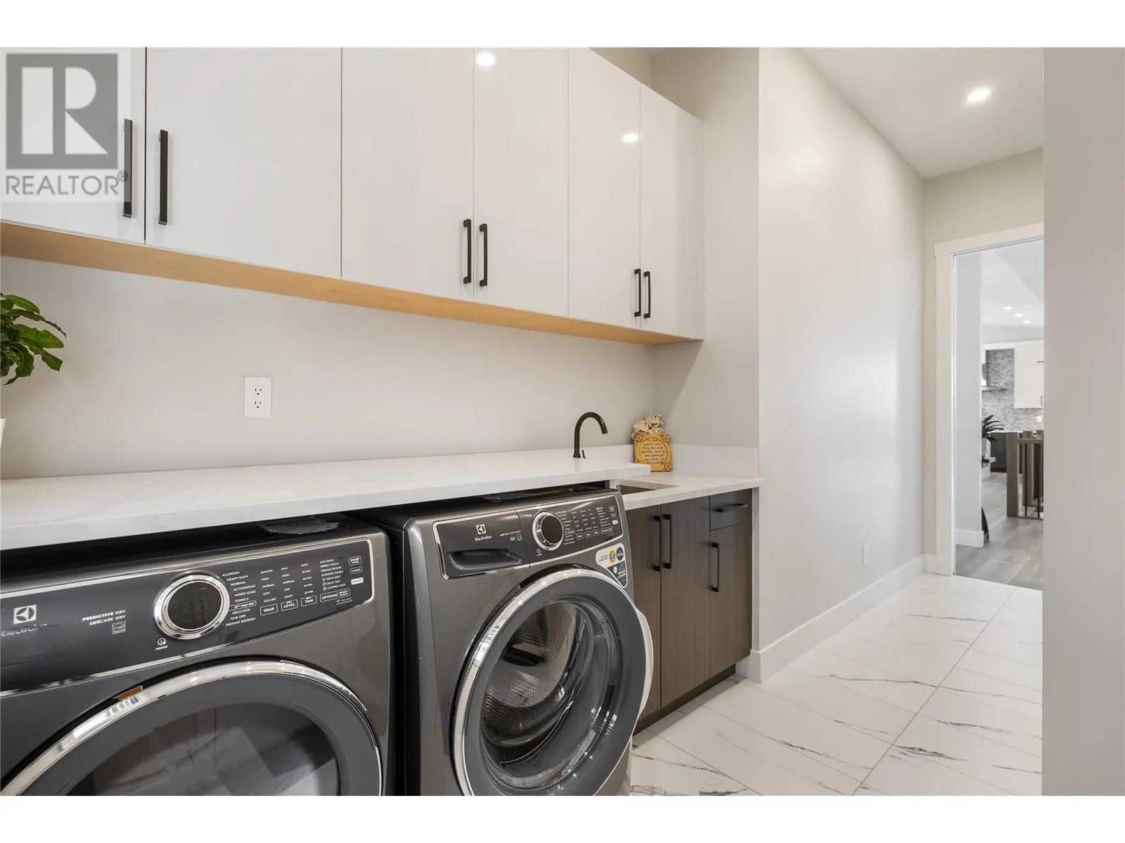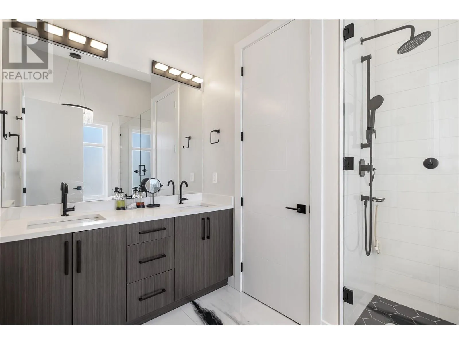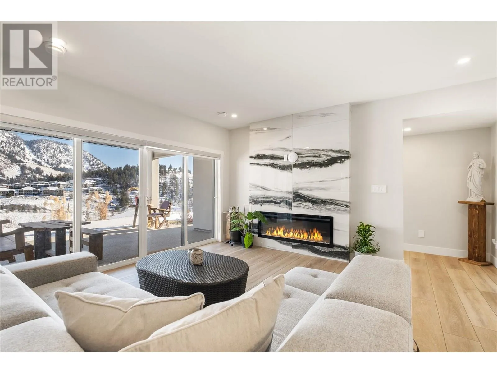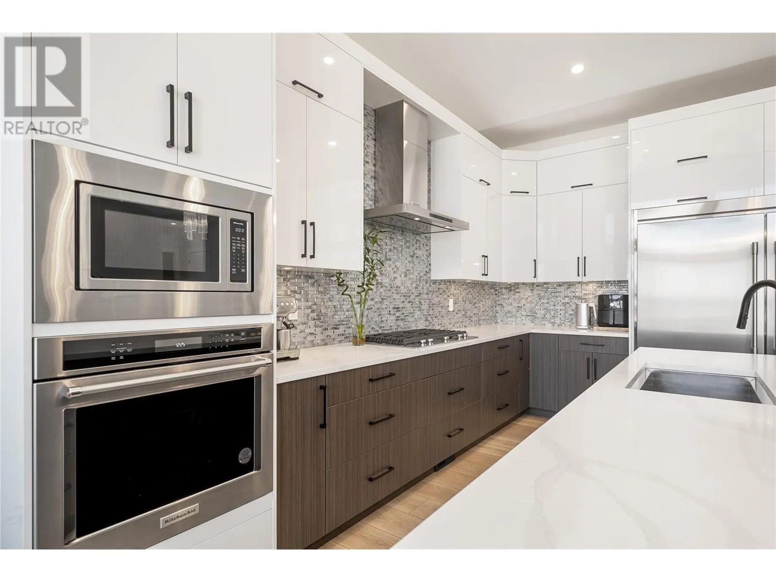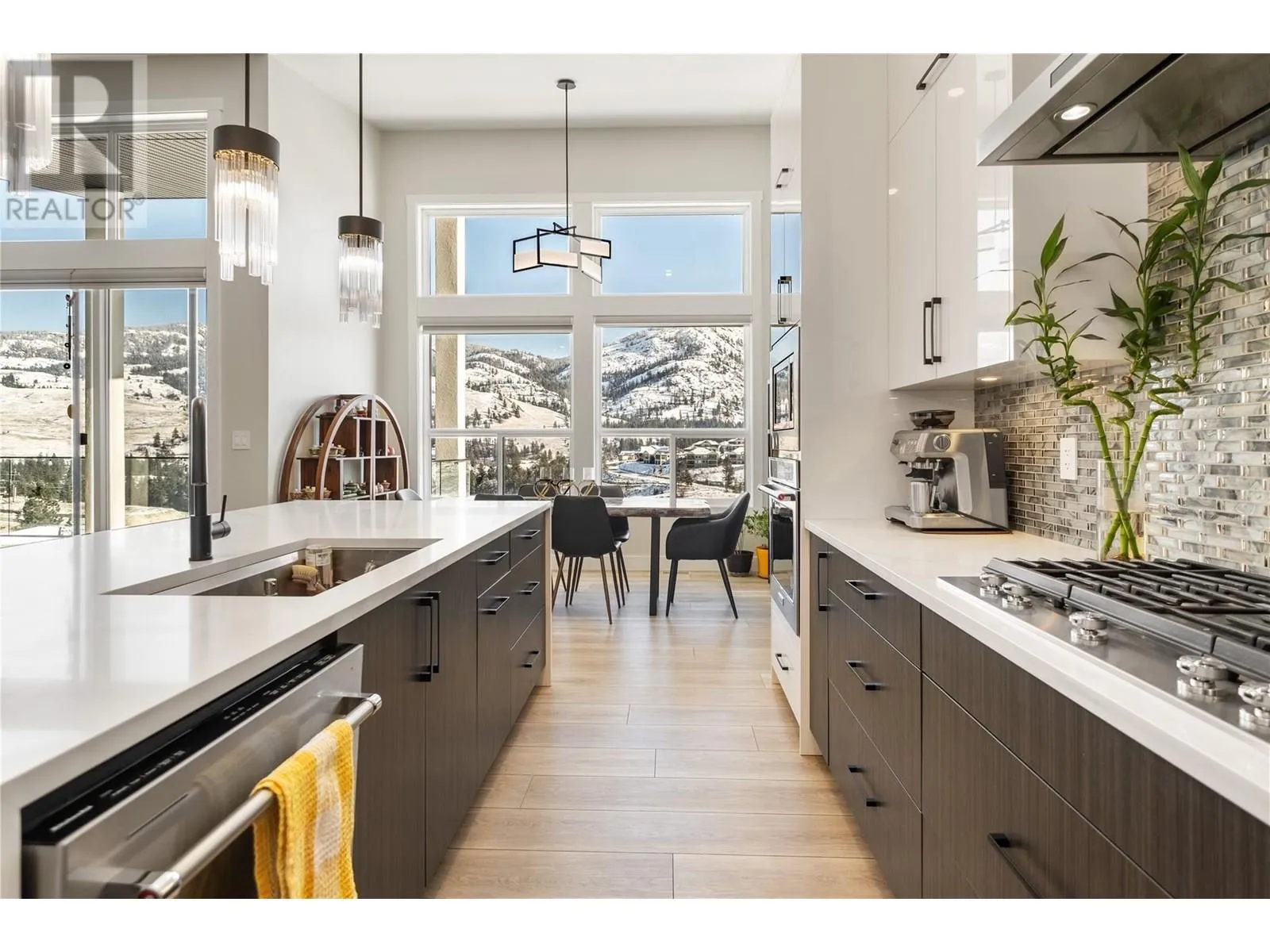 Discover the ultimate in lavish living at 869 Carnoustie Drive in BlueSky Black Mountain! This stunning home is immaculate and well-loved, generating rental income throughout the year. It offers mesmerizing views of the Black Mountain Golf course, with no concern of obstruction from future construction. Conveniently located just 39-min drive to Big White Ski Resort, 15-20 mins to wineries, orchards, and downtown. The home's open concept, vaulted ceiling, ample storage, 3 separate entrances and all self contained, make it perfect for multi-generational families or as a family home that pays for itself. The primary bedroom is a luxurious retreat, complete with a self-standing tub, marble flooring, and a double sink. The home features German vinyl planks, floor-to-ceiling windows, waterfall quartz countertop, full-size side-by-side fridge and freezer, gas stove, and a fireplace in two living rooms. Make this your dream home and book your showing today. 3 bedrooms on the main , 2-bedroom legal suite, and a 3-bedroom in-law suite, all of which has kitchen, laundry, separate entrance and great lay out. Drive by new executive homes, exhilarating mountain, valley, and lake views. The neighborhood has a rural vibe but is just 15 minutes from the YLW airport and UBCO. No GST, high quality finish, great views, lavish living and a mortgage helper. (id:27476)