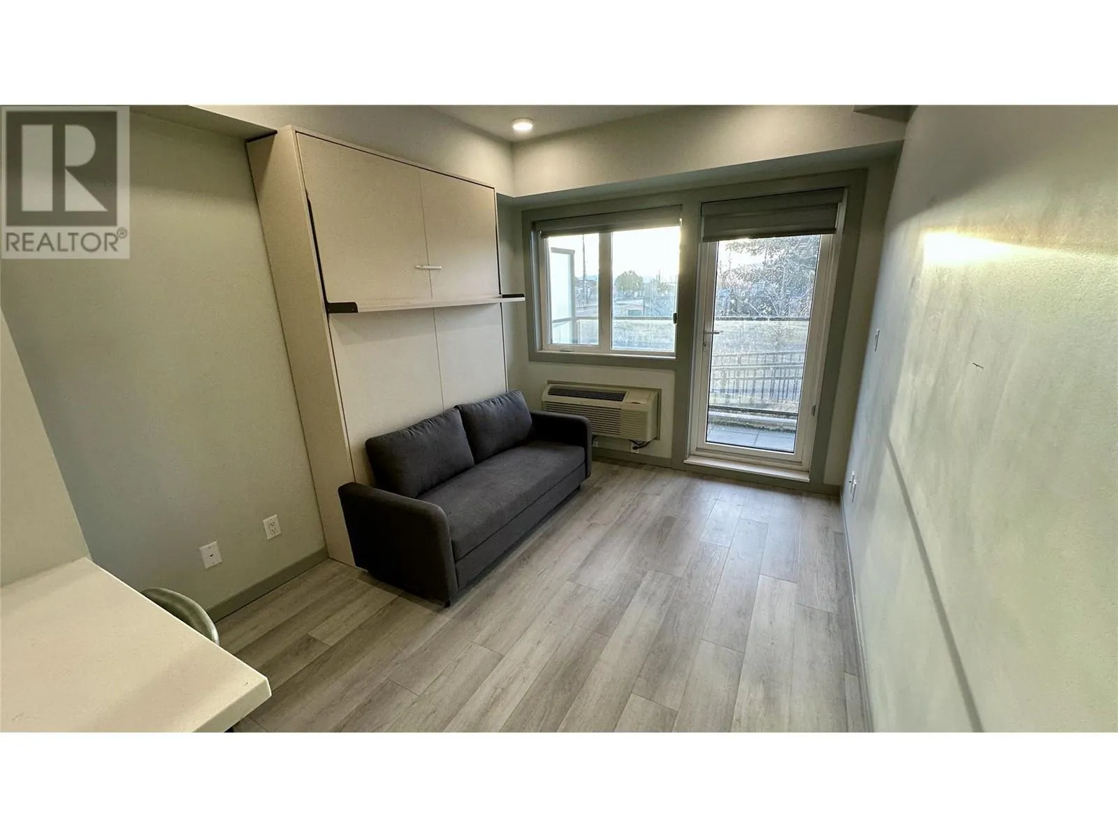 Step into UniK-Town, where compact living meets unparalleled convenience! This cozy 312 sq ft studio suite is tailor-made for first-time buyers, students, or savvy investors. Equipped with all essential appliances, a convenient pull-out Murphy bed, a built-in eating area, and a handy storage locker, this unit ensures functionality meets style. Benefiting from a stellar walk score, you're just steps away from transit, shopping hubs, tantalizing eateries, serene parks, and a plethora of amenities. The Rutland Transit Exchange is just steps away allowing for convenient and efficient commuting to UBCO and downtown. Indulge in the building's modern amenities, including a rooftop terrace offering panoramic views, a chic common room for social gatherings, and designated storage and bike storage areas for added convenience. What's more, this contemporary building, merely three years young, exudes freshness and modernity. Located a mere 10-minute drive from UBCO and YLW, and a quick 15-minute jaunt from downtown Kelowna, this prime location caters to your every need. With immediate possession available, seize the opportunity to make this your own! Approval from the strata allows for the accommodation of one dog or cat, ensuring your furry friend can join in on the UniK-Town experience. All measurements are approximate. (id:27476)