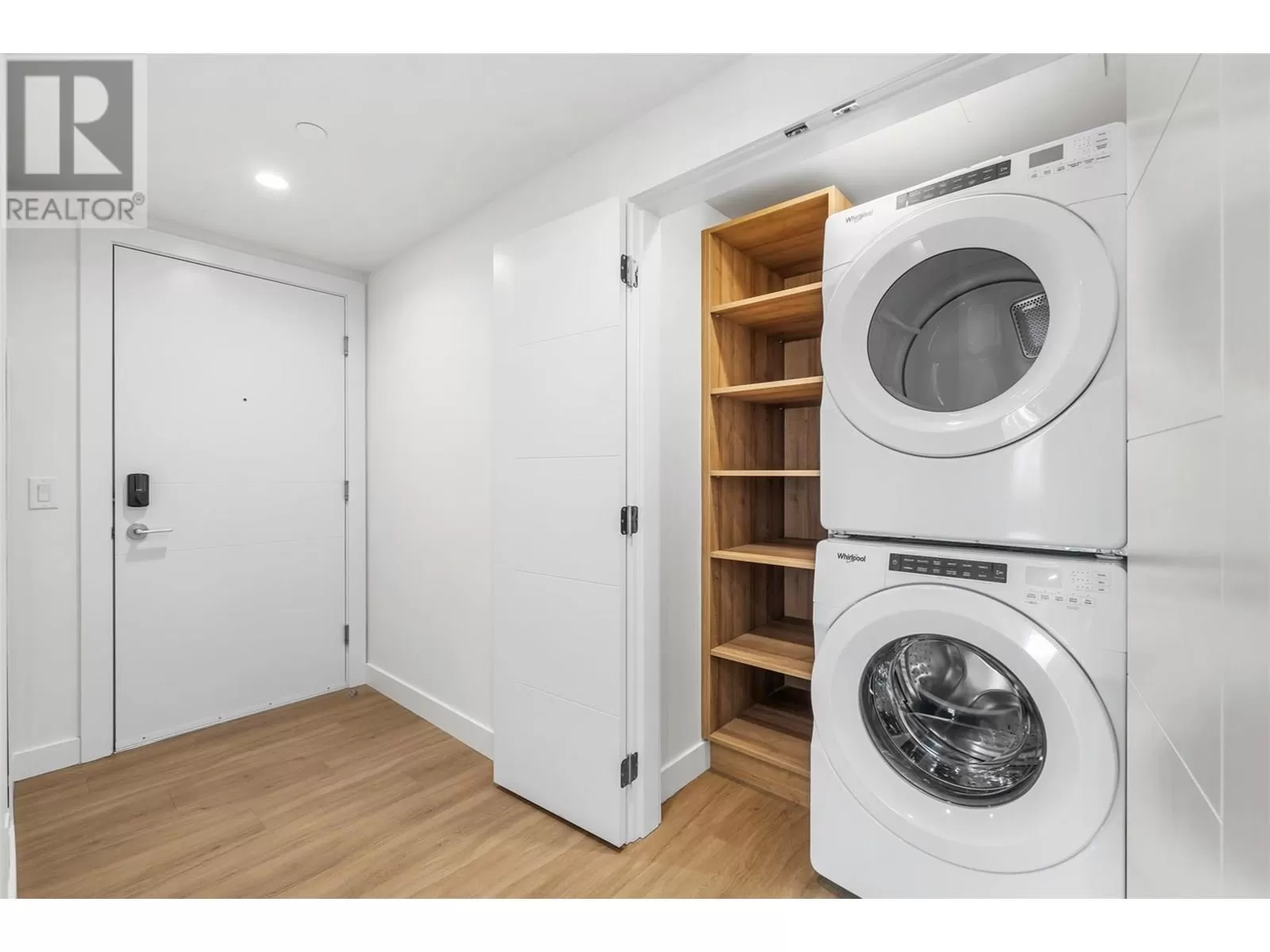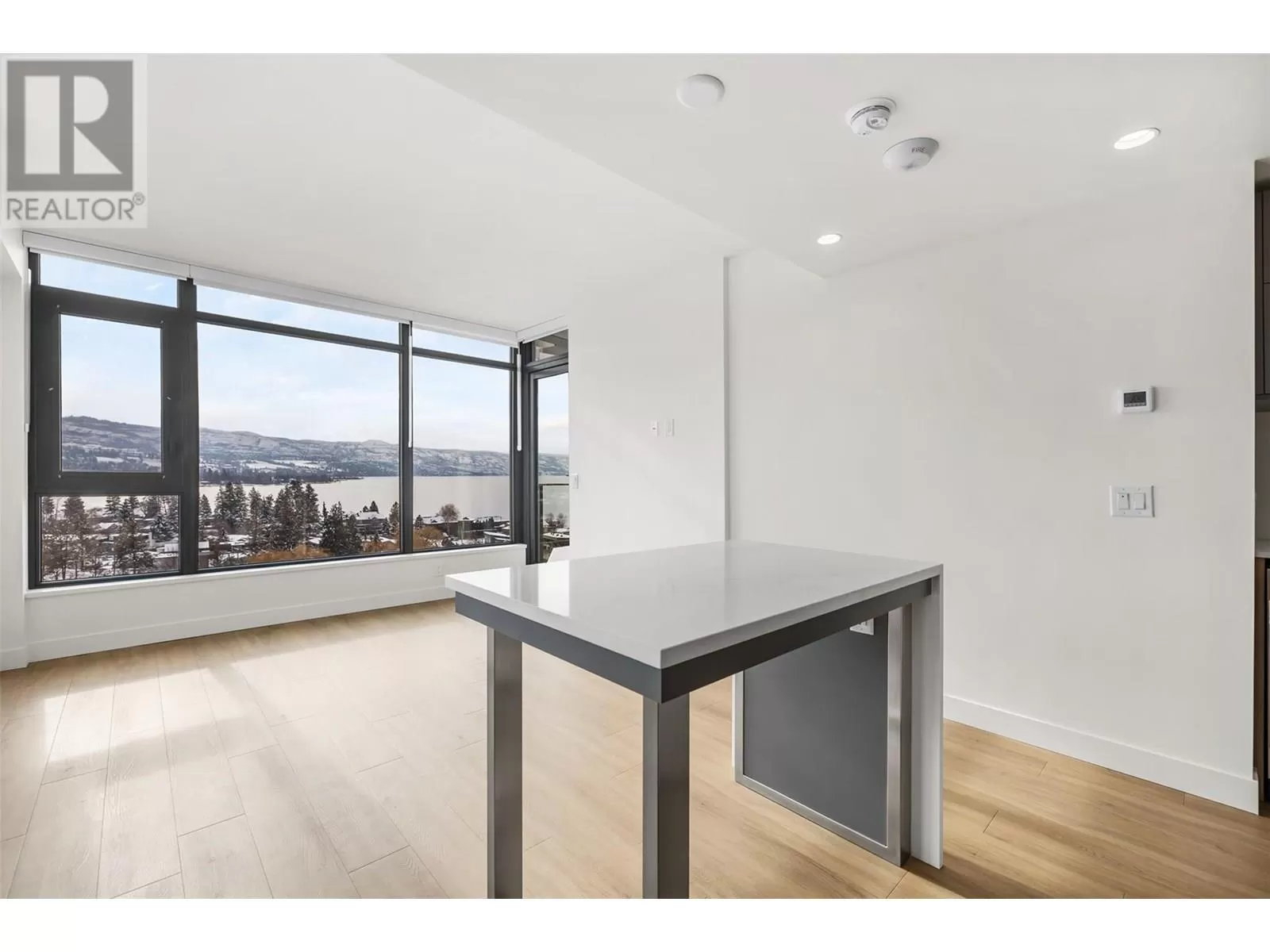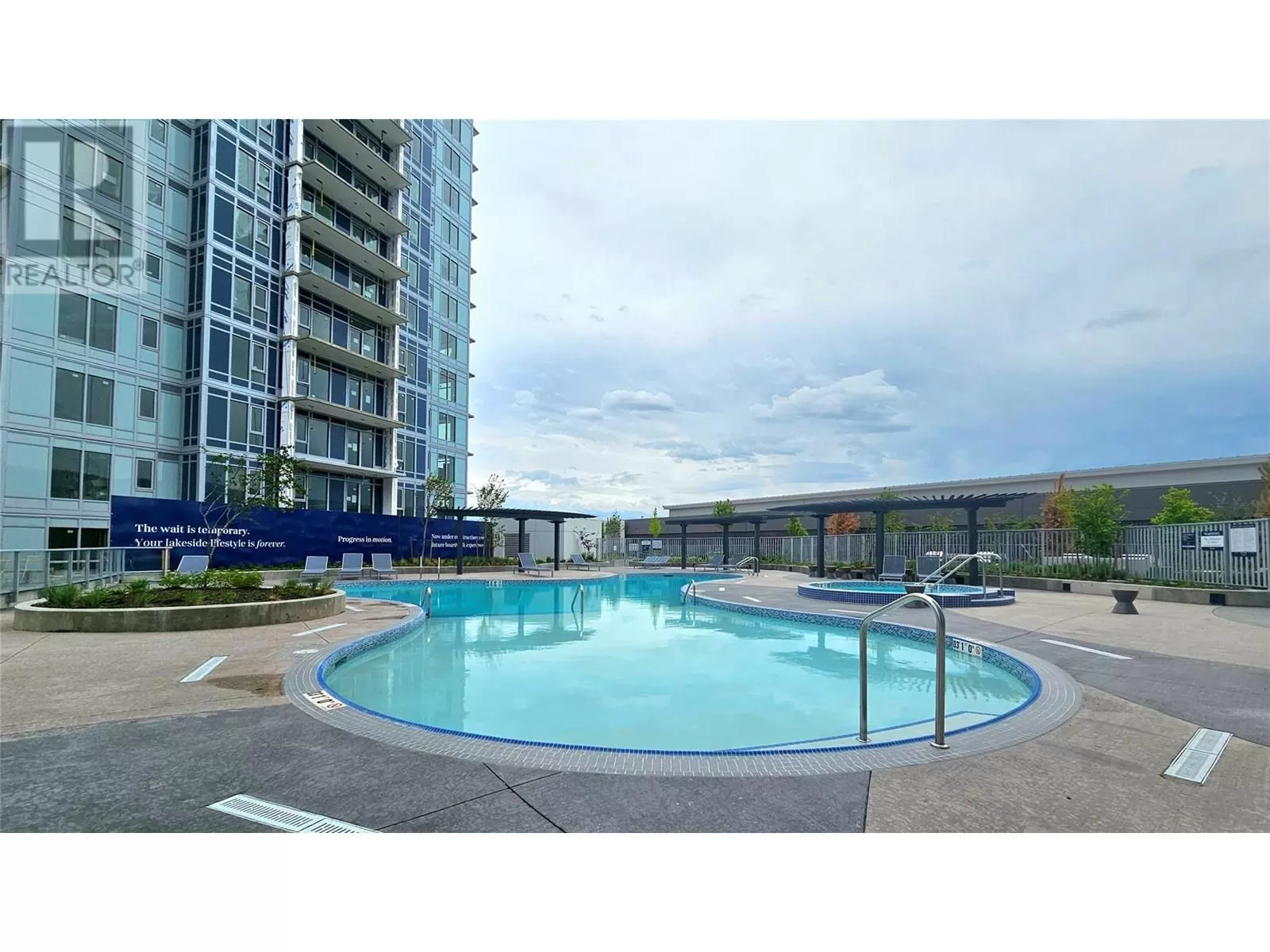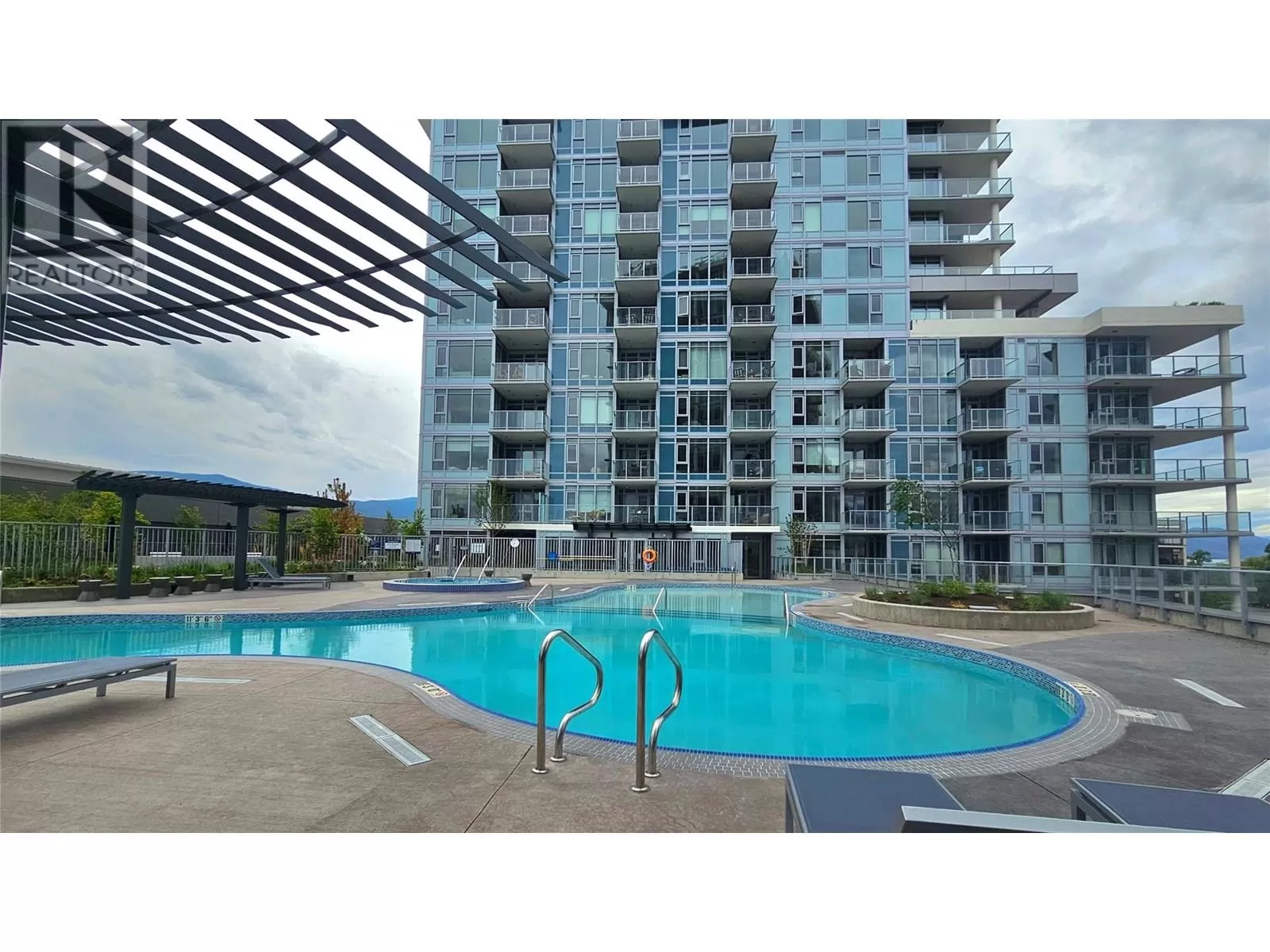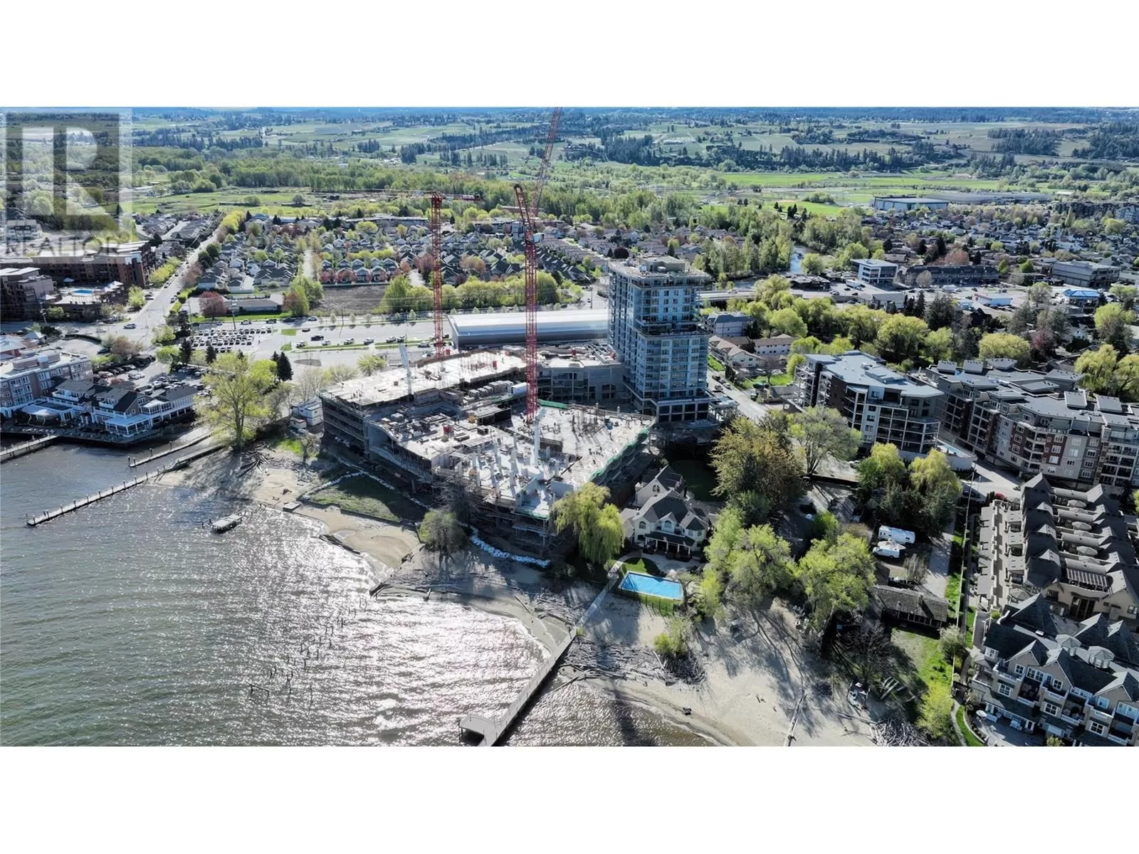 Welcome to lakeside luxury resort-style living at AQUA Phase 1 by Mission Group. Embrace the essence of waterfront relaxation in this South-East-facing 2-bed, 2-bath corner unit with charming patio, 1 secured covered parking stall, offering tranquil and mountain views. Deluxe closets organizers and laundry organizers upgrades. Dive into a lifestyle of leisure as you step into the world-class Aqua Boat Club, ready to embark on adventures of surf and sun across Lake Okanagan. 15 story solid concrete construction, 8"" of concrete between floors, oversized windows, central hot water system (included in strata fees), quiet & efficient heating & cooling in through VRV (variable refrigerant volume) & ERV (energy recovery ventilator) systems, fiber-optics wired, quartz countertops, premium stainless-steel appliance package, pet-friendly with no size restrictions. AQUA offers outdoor pool & hot tub on the 5th floor, lounge seating, landscaped BBQ area, two-story 2000 sq ft gym & yoga/meditation area, co-workspace, poolside fireside lounge, shared kitchen, dog wash station. Priority access to membership opportunities at the onsite world-class Aqua Boat Club (at current market rates, subject to availability). This stunning home invites you to explore the vibrant waterfront lifestyle, lined with enticing shops & delectable restaurants. 2-5-10 year new home warranty. GST Applicable. Measurements are approximate and should be verified if deemed important. (id:27476)