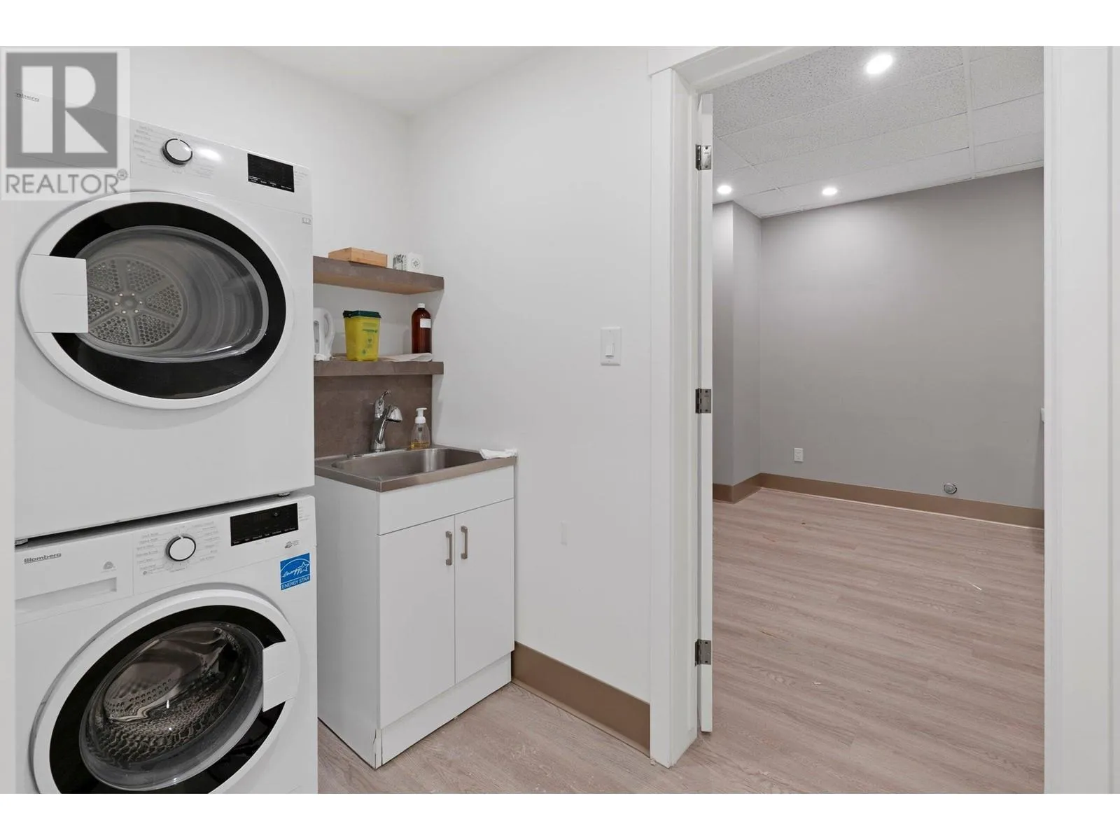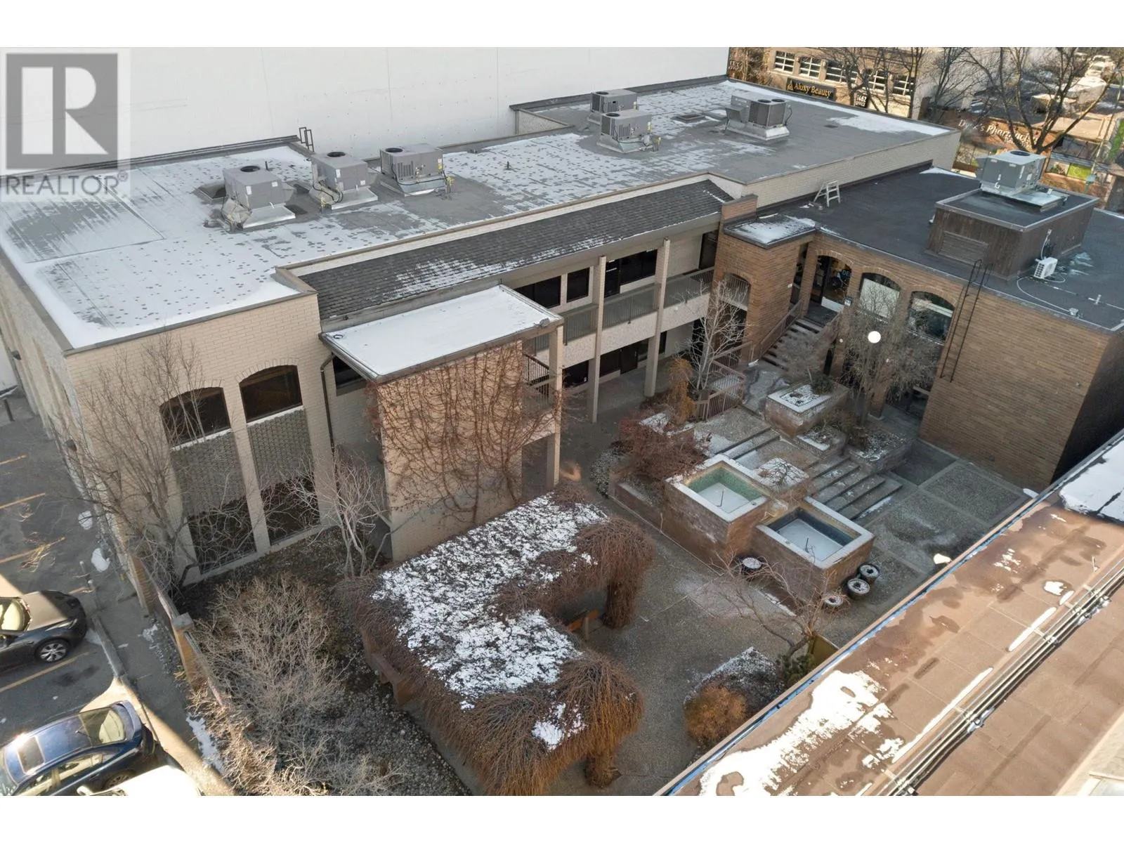 Location location This versatile property is ideal for Office Space, Medical Centre, Law Offices , Adjacent to Bernard Ave, in the sought-after ""Brooklyn at Bernard"" neighborhood ,, Interior space 10,000 sq ft (Two levels of 5,000 sq ft each) Lot Size: 50' x 150' This remarkable commercial property features a modern West Coast Contemporary design, making it a perfect investment for those looking to capitalize on Kelowna's booming market. It is uniquely divided into two strata titles (100 & 200), being offered for sale together. Current Configuration: 100 Level: Four individually rentable suites suitable for office, retail, or service opportunities, providing flexibility for diverse tenants. 200 Level: Two large office suites designed for organizations looking for spacious, professional environments. Amenities Shared access to beautifully landscaped inner garden, pergola, and fountain area with adjacent Courtyard strata. Parking: Five designated stalls at the rear and six additional stalls available for rent across the lane. Investment with Future Redevelopment Potential Investment Highlights: Prime Location near Bernard Ave Strong demand for office and retail spaces in the area Existing infrastructure and landscaping creating a vibrant business environment Opportunity for your business or lease it out as an investment property!! (id:27476)