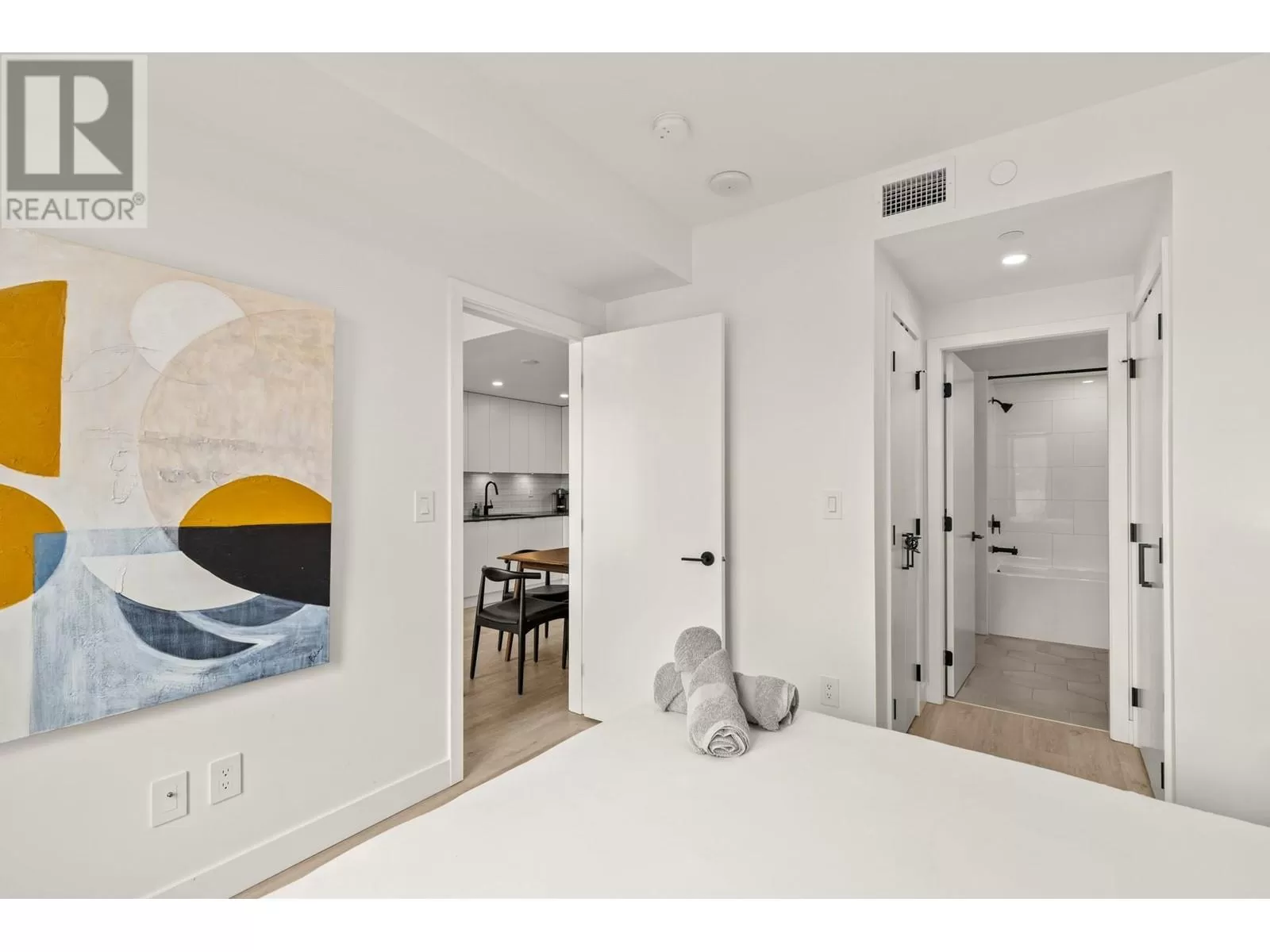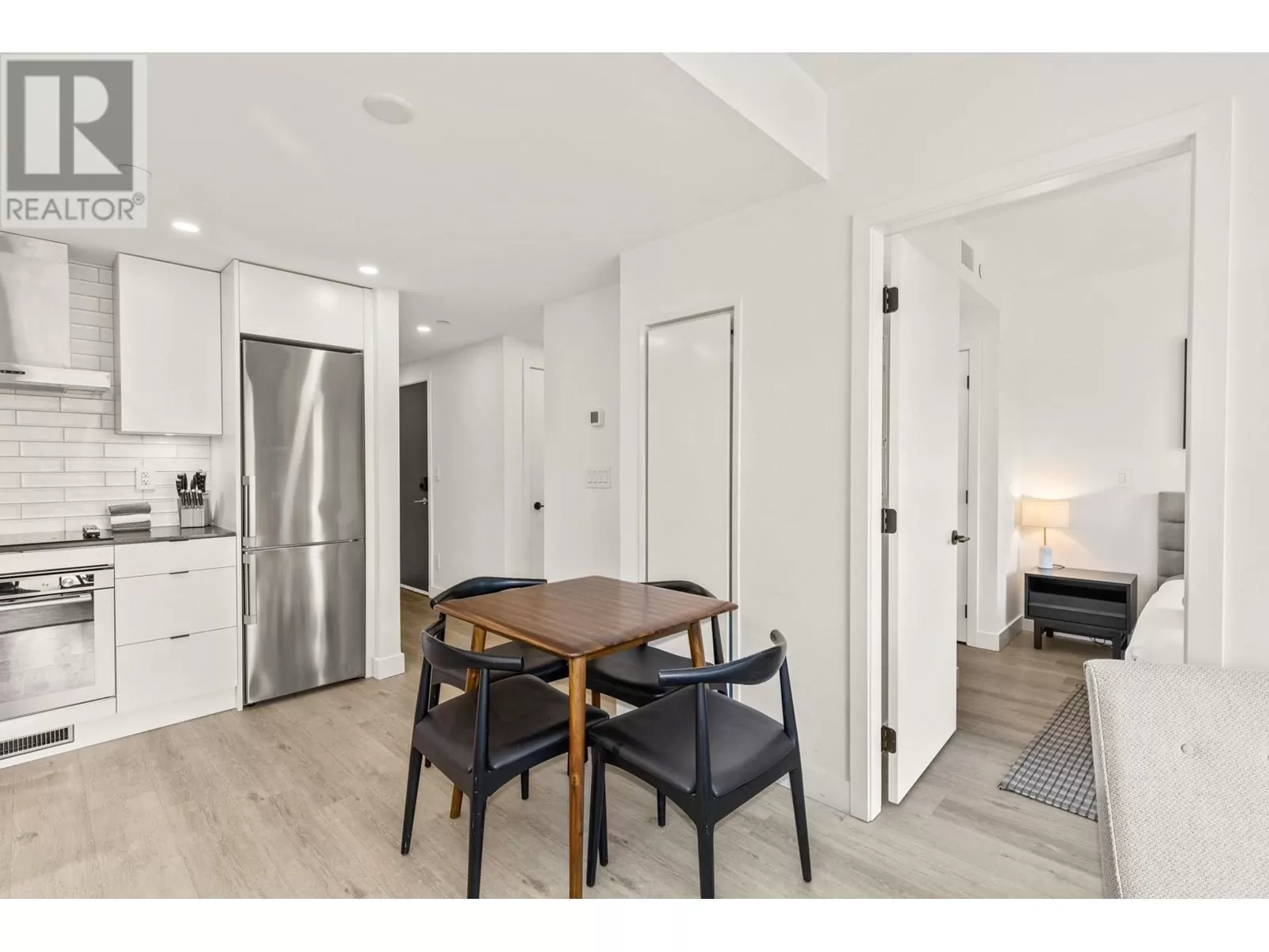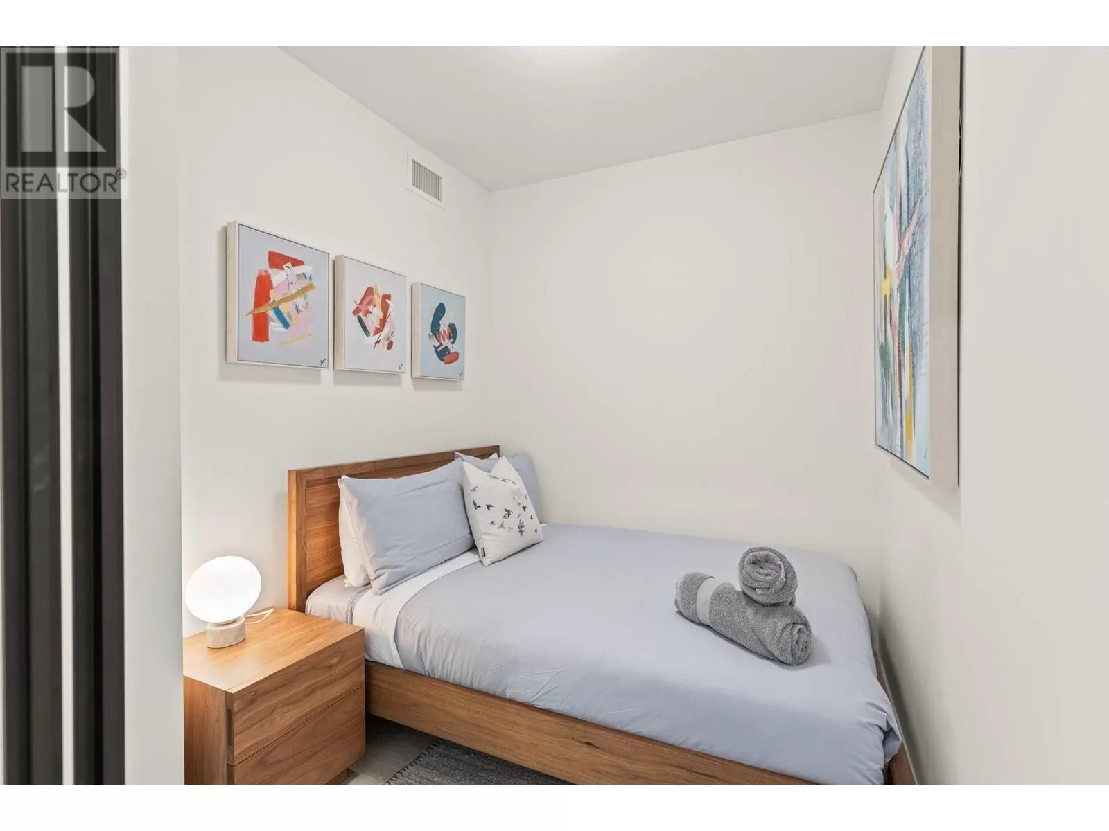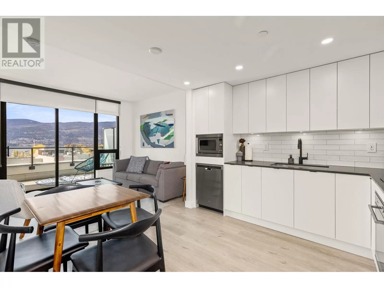 Welcome to Brooklyn, one of Kelownaâs newest and most exciting condominium communities. With this incredible location, you are just steps away from every amenity Kelowna has to offer and a quick stroll to the lake. This beautiful West-facing home features a flexible 1 bedroom + large den floor plan, with 9â ceilings and 593sqft of interior living space, plus 90sqft of lakeview patio space. This nearly new building completed in 2022 offers all the modern touches, including high ceilings, quartz countertops, and more. A large private patio provides excellent outdoor living for all seasons, with lake, city, and mountain views. Brooklyn boasts an expansive rooftop patio with BBQ areas, sun loungers, two dedicated recreation rooms, and a full kitchen for your gatherings, etc. This unit also comes with a secured and covered parking stall and a convenient storage locker. Offered fully furnished and move in ready! (id:27476)