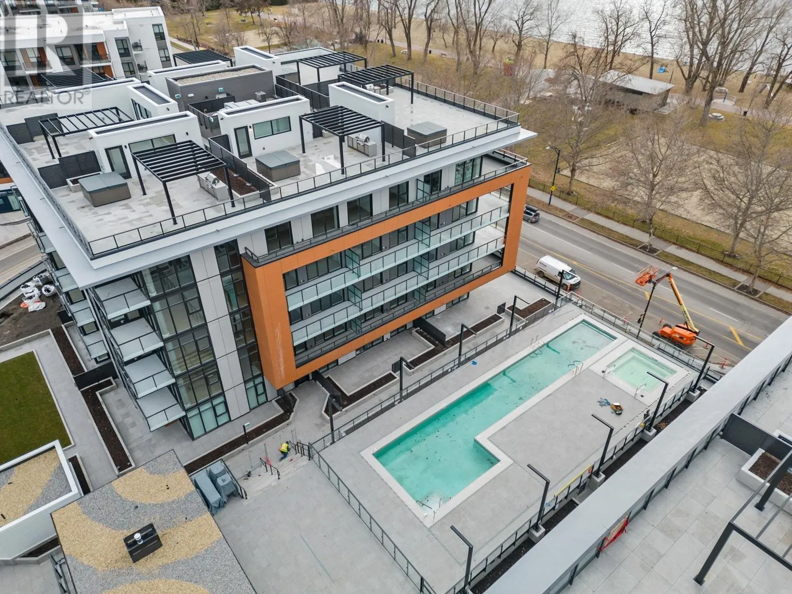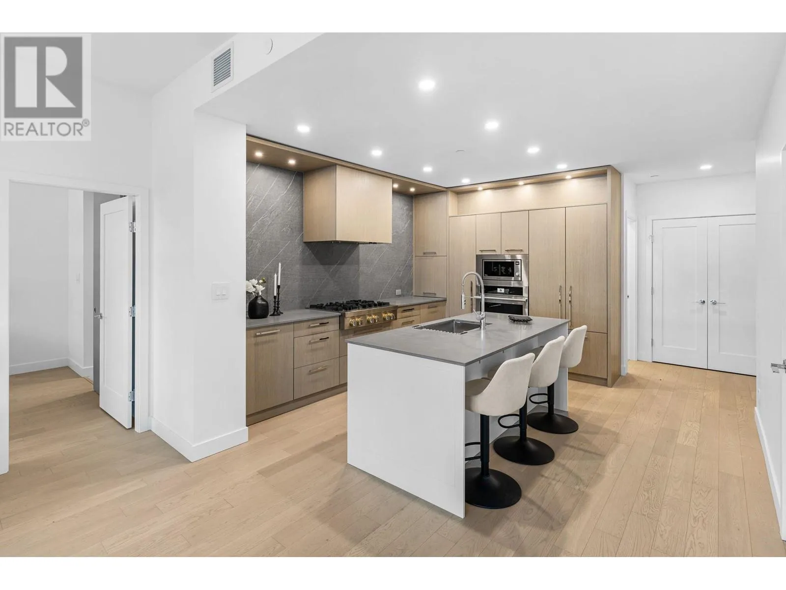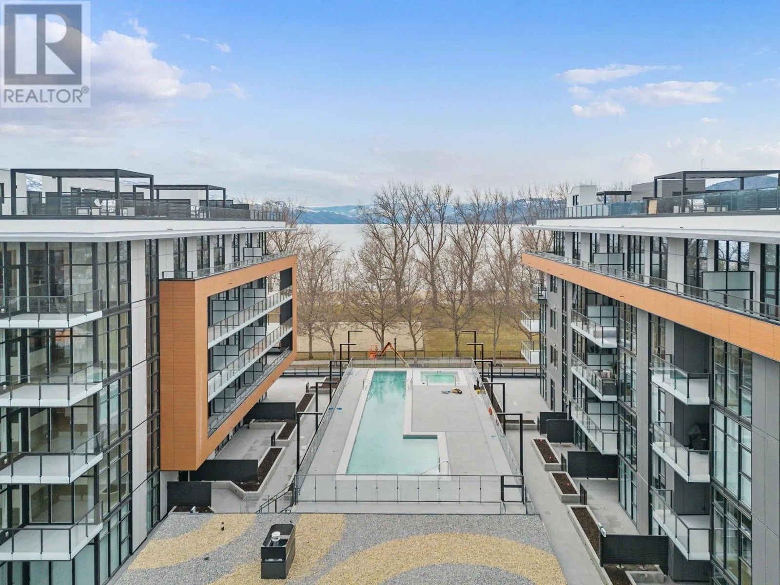 Nestled in the heart of Pandosy Village, this stunning 1,195 sq. ft. luxury condo blends upscale design with effortless Okanagan living. Soaring 9â6â ceilings and expansive windows flood the space with natural light, leading seamlessly to a private 390 sq. ft. patio â perfect for morning coffee, evening dining, or simply soaking up the sunshine. The famous ""Cressey Kitchen"" even has a $2800 wine fridge upgrade. Enjoy resort-style amenities including a 25+ meter infinity lap pool, hot tub, and pool house complete with kitchen facilities and television. Private cabanas with built-in seating and hand-cast concrete fire tables create the perfect space to unwind or entertain friends. Stay active in the 2,000+ sq. ft. fitness centre featuring a full range of equipment and streaming workout stations, or recharge in the rejuvenating Himalayan salt sauna. Inside, the upgraded kitchen with wine fridge adds a touch of luxury, and the secure underground parking stall ensures convenience. Just steps from Gyro Beach, boutiques, and cafes, this condo offers the ultimate fusion of modern comfort, resort-style amenities, and vibrant Pandosy living. (id:27476)