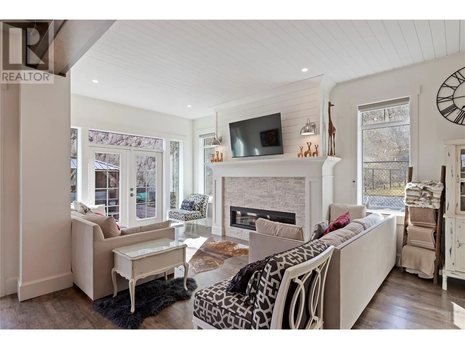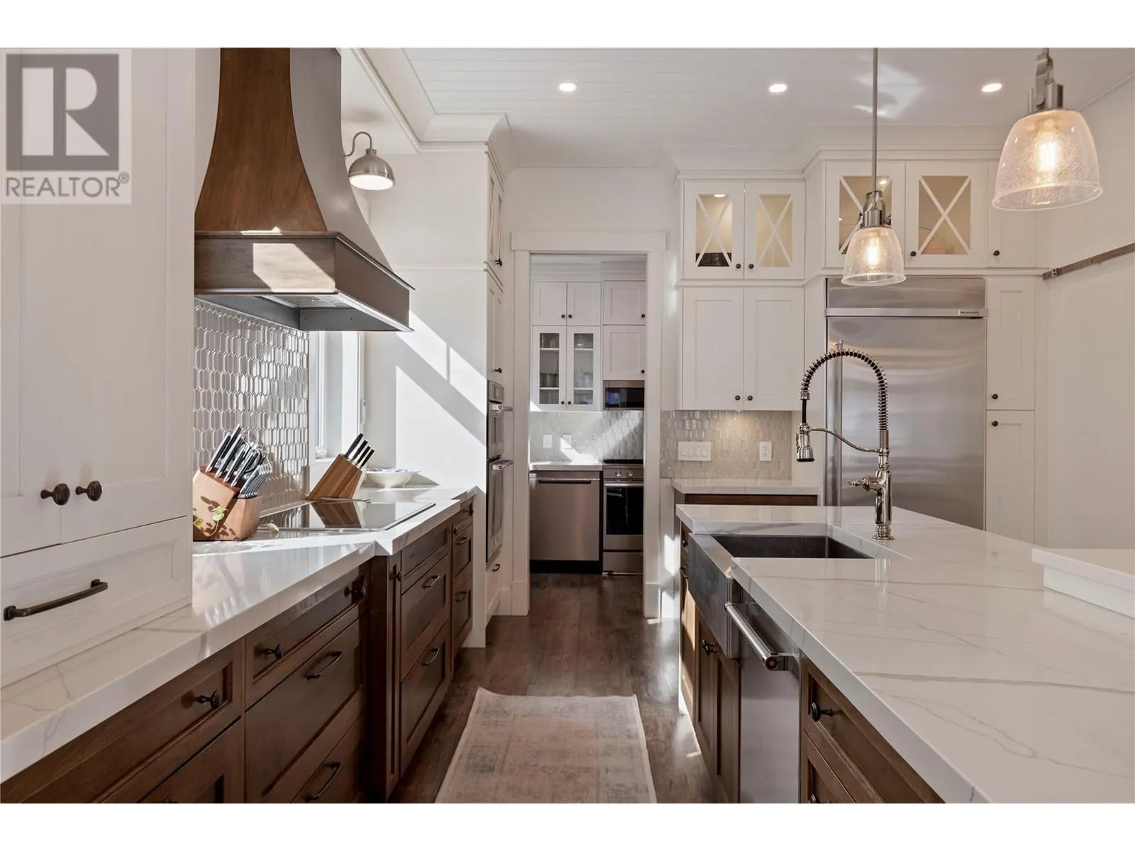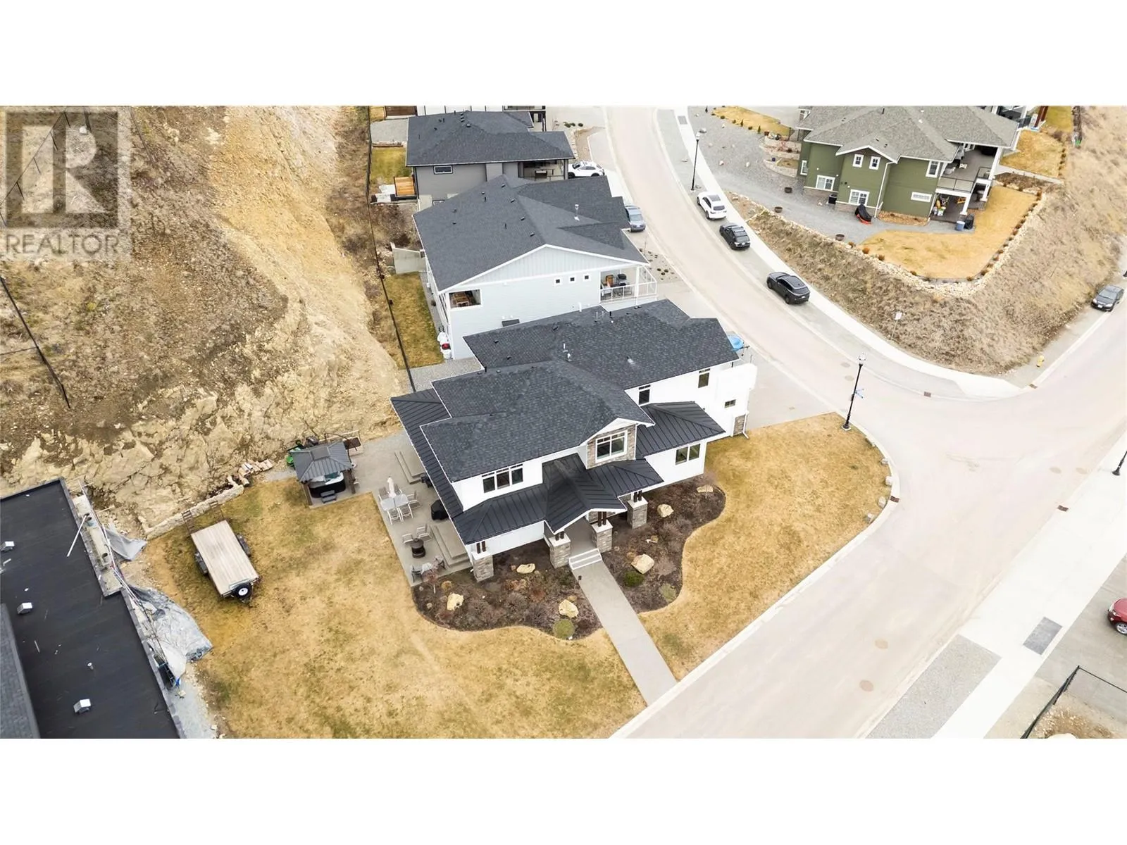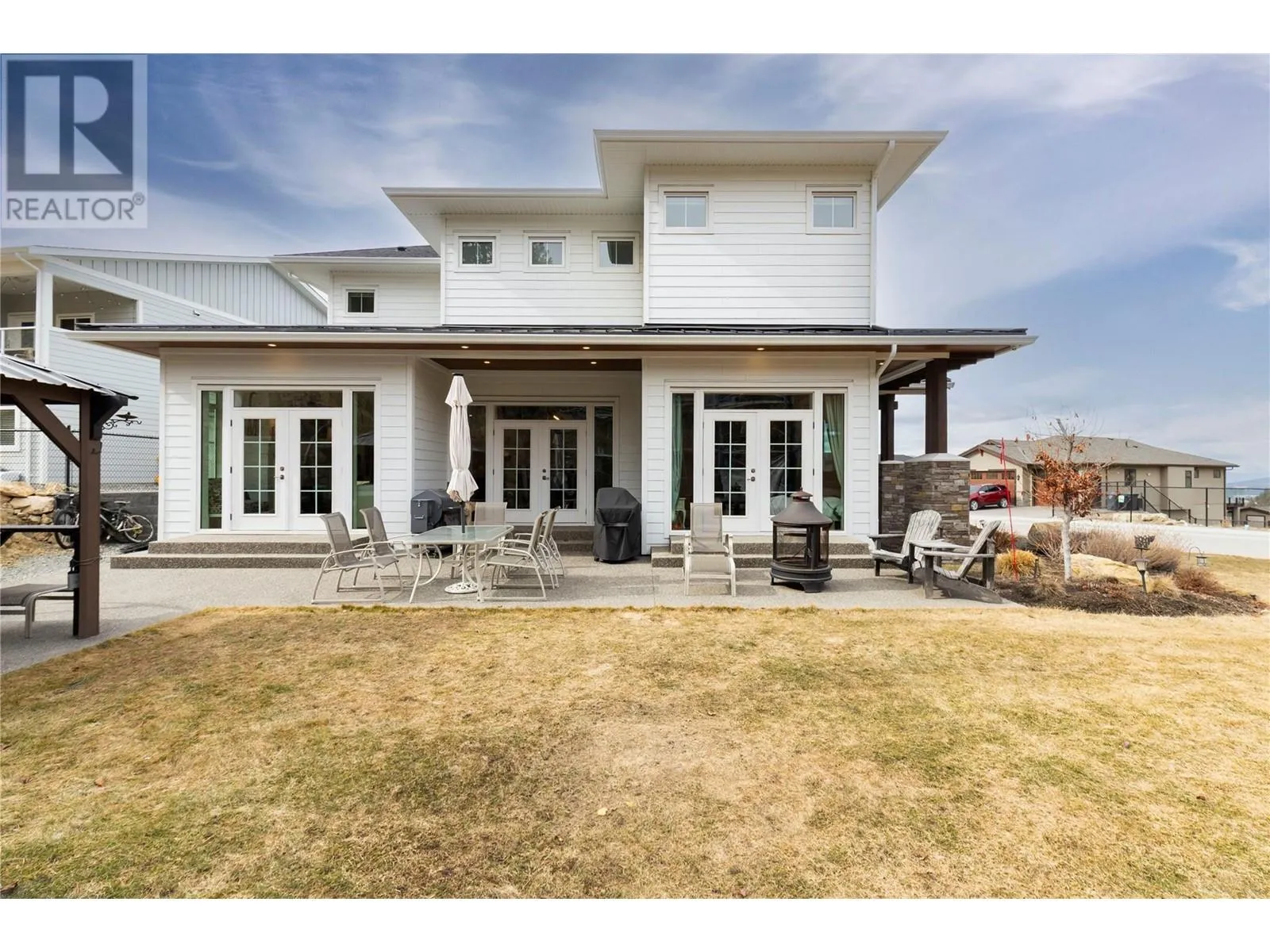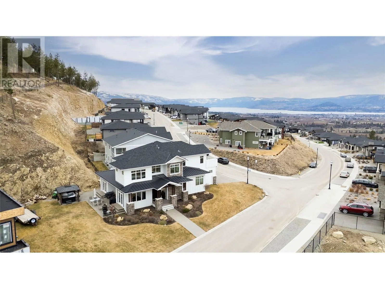 This modern farmhouse-inspired luxury home is a stunning showcase of craftsmanship & attention to detail. Custom millwork & premium finishes blend seamlessly with its welcoming design, creating an elegant and inviting living space. The grand foyer opens to a spacious layout designed for effortless entertaining. At the heart of the home, this beautiful kitchen features high-end appliances, a striking quartz island, & a fully-equipped prep kitchen. The dining & living areas flow beautifully, highlighted by custom cabinetry, shiplap ceilings, & a cozy fireplace, setting a soft yet sophisticated ambiance.The outdoor space offers a private retreat with a luxurious hot tub & the potential for a pool. On the main floor, youâll find a versatile office or den, a bathroom, & a mudroom with a convenient dog wash. A stunning two-story staircase, with multiple bright windows showcasing breathtaking mountain views, leads to the upper level. The primary suite offers a serene lake-view balcony, a spa-like ensuite, & a spacious wardrobe room with easy access to the well-equipped laundry room. Two additional bedrooms share a functional Jack-&-Jill bathroom, completing the thoughtful upper level layout. This net-zero home generates as much energy as it consumes. A former PNE Prize home, itâs situated in a friendly neighbourhood on a large corner lot close to schools, trails, & just minutes from the Kelowna International Airport. Truly, a home that promises to inspire & impress! (id:27476)
