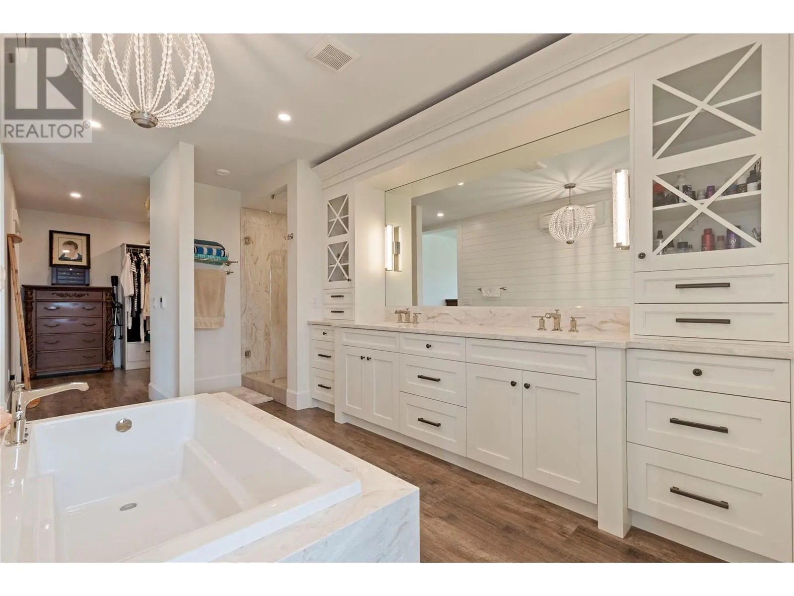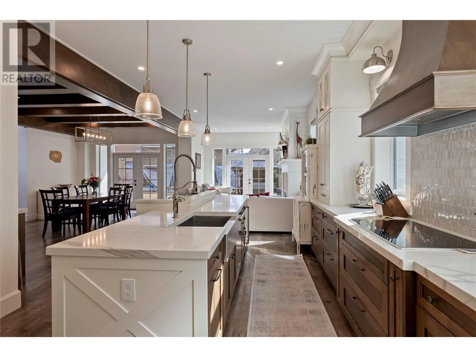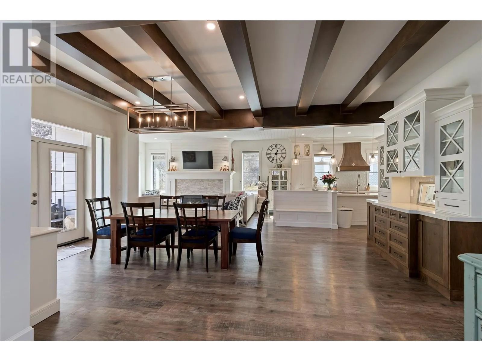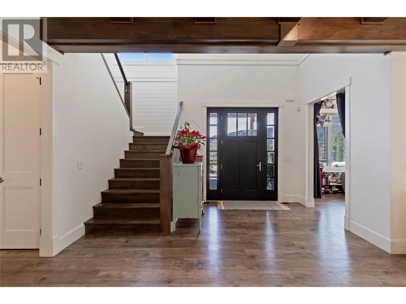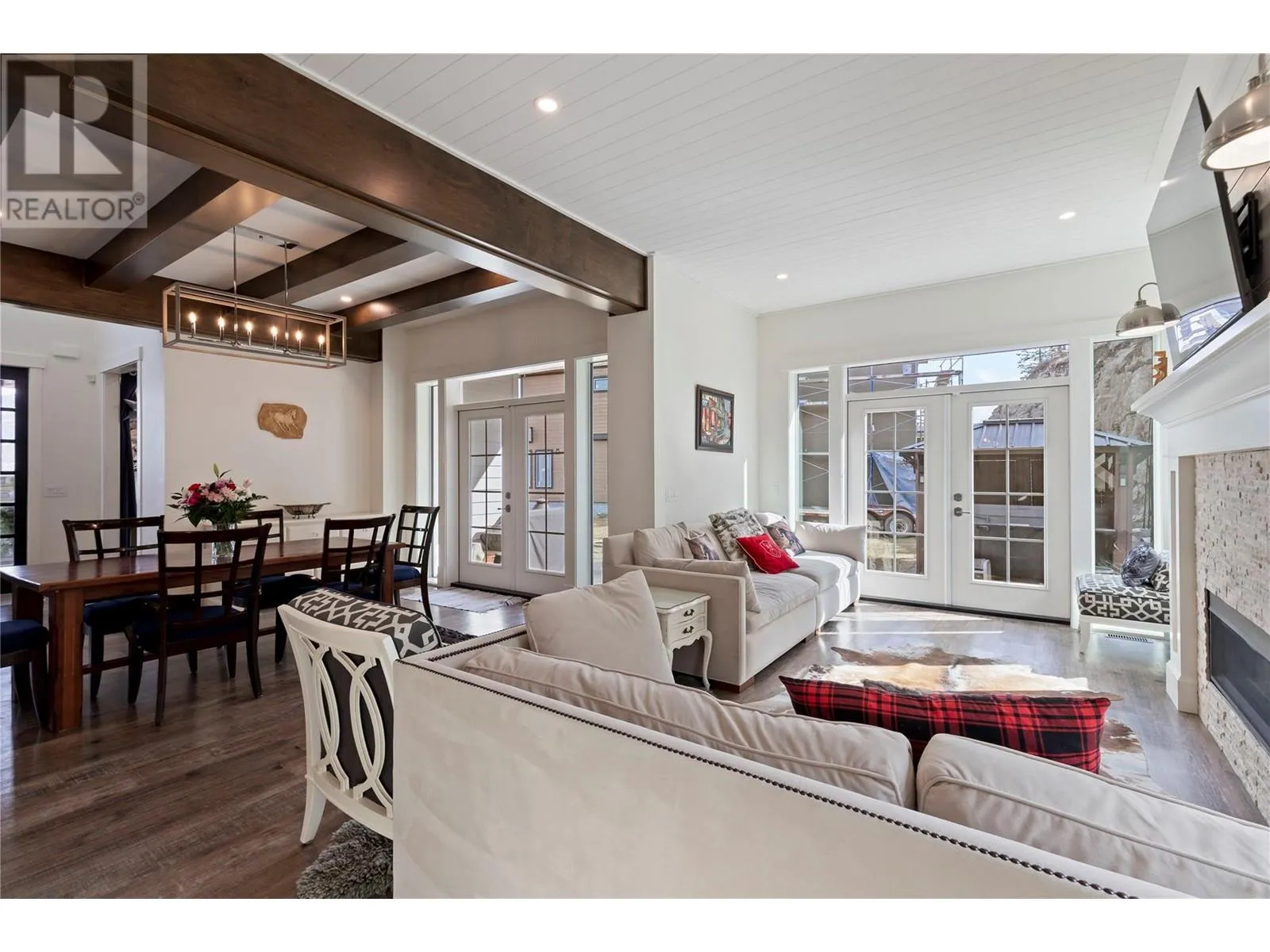 This modern farmhouse-inspired luxury home is a stunning showcase of craftsmanship & attention to detail. Custom millwork & premium finishes blend seamlessly with its welcoming design, creating an elegant and inviting living space. The grand foyer opens to a spacious layout designed for effortless entertaining. At the heart of the home, this beautiful kitchen features high-end appliances, a striking quartz island, & a fully-equipped prep kitchen. The dining & living areas flow beautifully, highlighted by custom cabinetry, shiplap ceilings, & a cozy fireplace, setting a soft yet sophisticated ambiance.The outdoor space offers a private retreat with a luxurious hot tub & the potential for a pool. On the main floor, youâll find a versatile office or den, a bathroom, & a mudroom with a convenient dog wash. A stunning two-story staircase, with multiple bright windows showcasing breathtaking mountain views, leads to the upper level. The primary suite offers a serene lake-view balcony, a spa-like ensuite, & a spacious wardrobe room with easy access to the well-equipped laundry room. Two additional bedrooms share a functional Jack-&-Jill bathroom, completing the thoughtful upper level layout. This net-zero home generates as much energy as it consumes. A former PNE Prize home, itâs situated in a friendly neighbourhood on a large corner lot close to schools, trails, & just minutes from the Kelowna International Airport. Truly, a home that promises to inspire & impress! (id:27476)