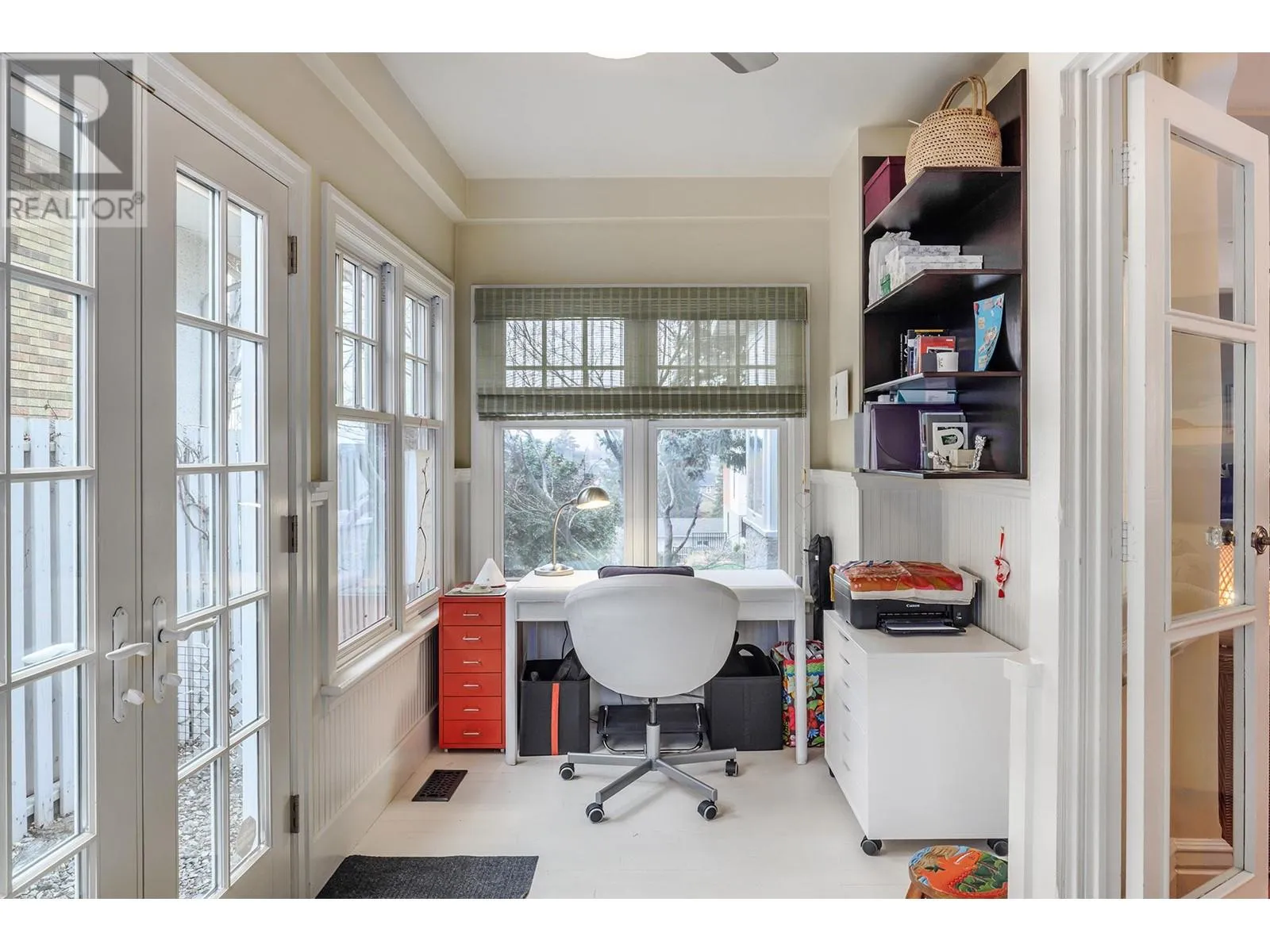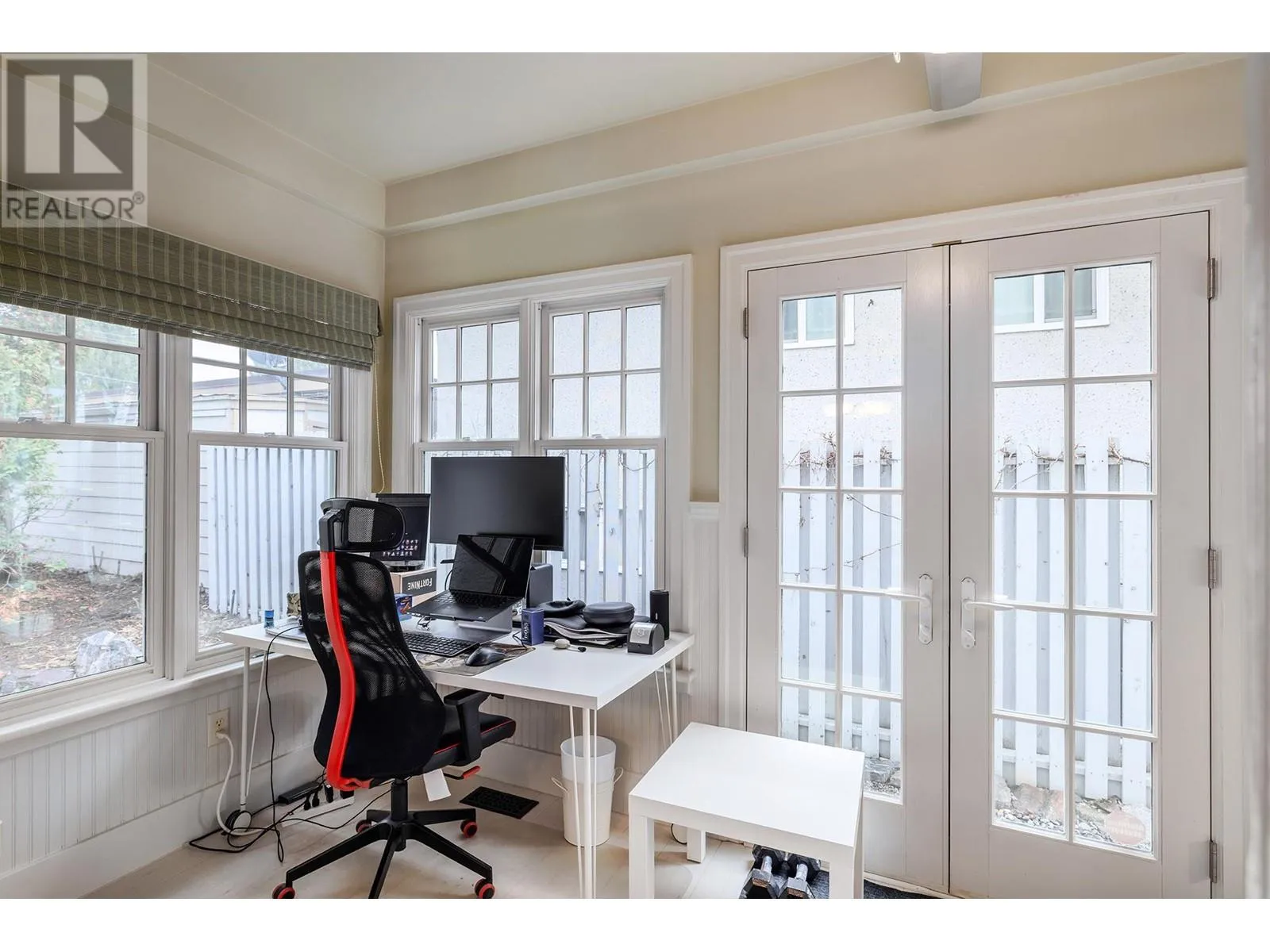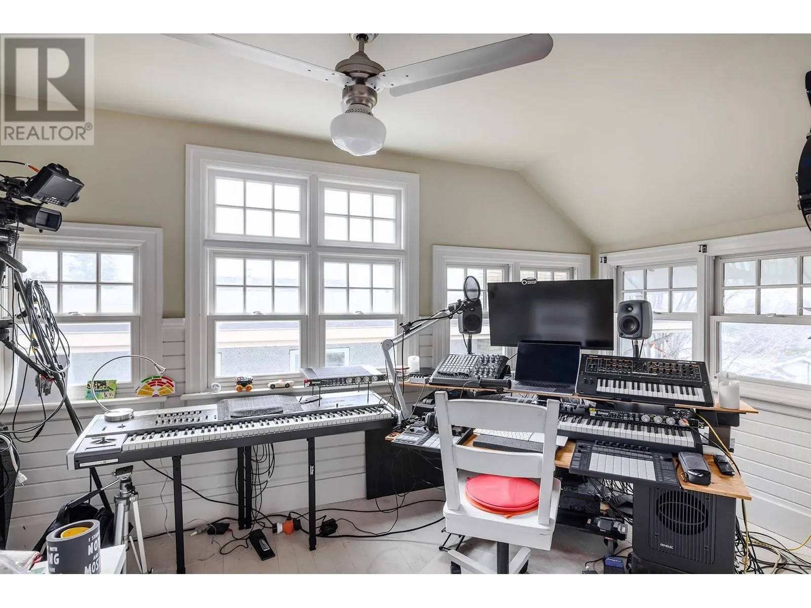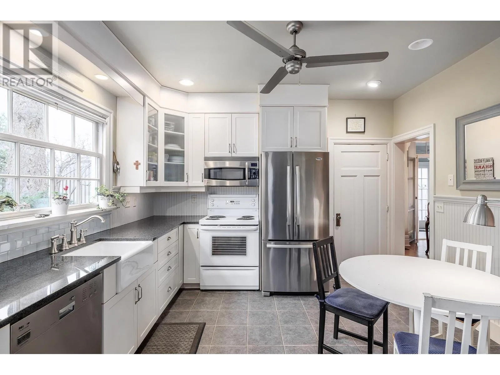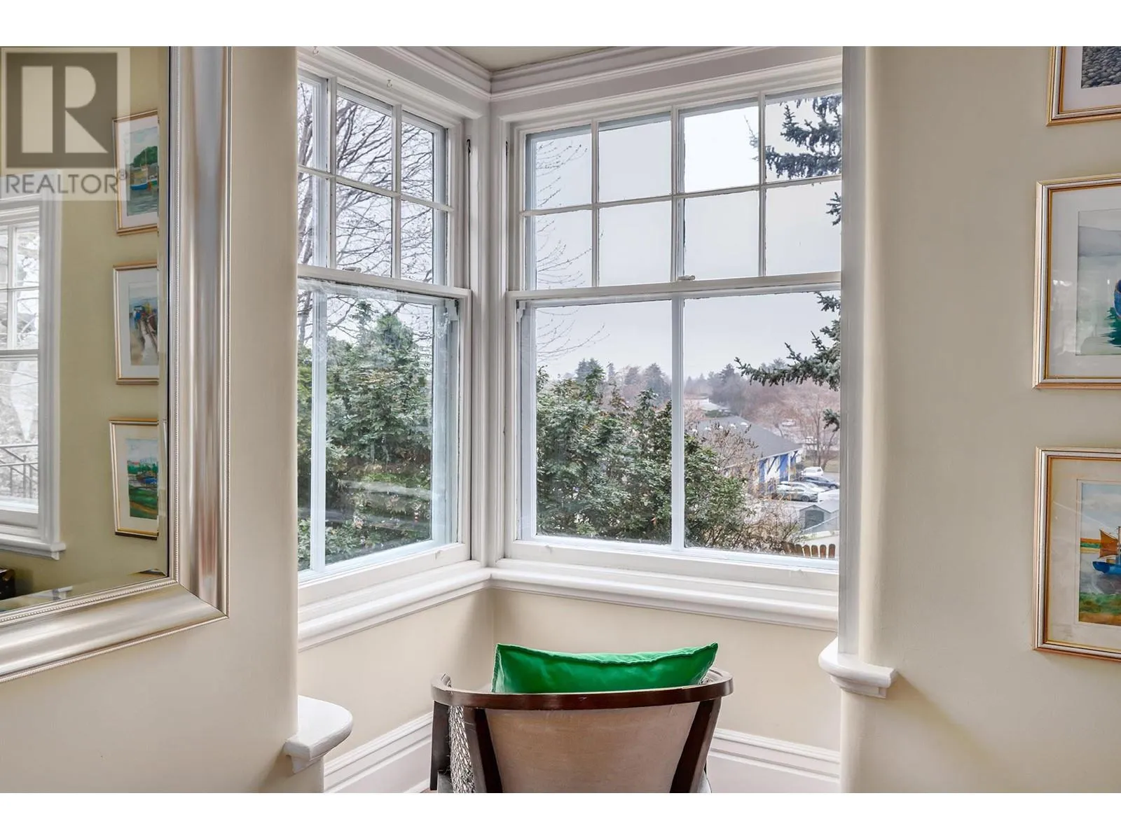 Charming Edwardian style detached 1910 home underpinned by invisible office architecture giving: the busy family or home office workers superb breakout spaces. Entrance hall leads to study/TV/dining room or to open living and dining area. A quiet two person study area framed by a Japanese Maple sits alongside. The kitchen boasts granite counters, farmhouse sink, traditional fittings and Mielle dishwasher. Adjacent laundry room with TROMM Washer and Dryer leads to 3 piece bathroom. A shelved mudroom/pantry serves the kitchen. Upstairs, four double bedrooms, one featuring studio/home office with inspiring long views. A breakout 'cosy nook' office sits on the landing. All bedrooms and studio areas have Lan access. Bathroom includes original cast iron tub. Modern amenities include; central air, gas fireplace, designer garden all above ample storage in large shelved crawl space. With hardwood floors, feature ceilings, and original glass details, this home exudes timeless elegance. A thorough Renovation in 2013 included; electrical, foundations and luxury studio rooms plus large doored carport addition. MF1 zoning allows for Carriage house or block development potential. Downtown beaches a cycle path away. City views. Gym and Parkinson Recreation down the street, Orchard Mall and stores minutes away. It was used recently for a movie set and is undoubtedly a 'one of a kind' blend of historic ambiance, usable homework space, great location and modern convenience. (id:27476)